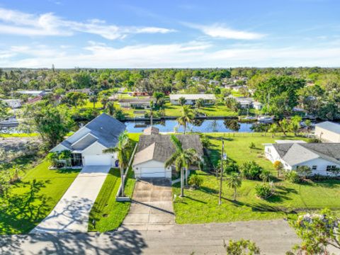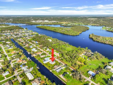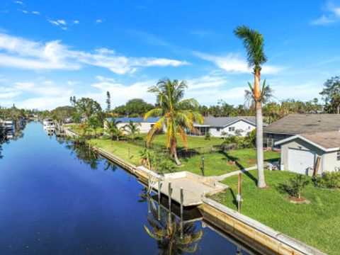 INVESTOR SPECIAL! SOUTHERN EXPOSURE, GULF ACCESS home in Ft Myers Shores! Situated on a WIDE CANAL with no bridges, no locks & no power lines- just MINUTES to the river! Home features 3 bedrooms, 2 bathrooms & an oversized 2 Car Garage w/over 1,600 sqft of living space. Upgrades include: Garage loft, stand up attic, attic fan, 3 zone sprinkler system, large outdoor shed & newer AC unit. The outdoor living is designed for entertaining w/a large screened in lanai & plenty of room to add your dream pool. Large concrete dock with built-in fishing rod holders, a dock light & flood lights for the yard. This home was flooded by hurricane Ian and the drywall has already been removed. Perfect opportunity to remodel this home to your taste! Centrally located close to Davis Boat Ramp leading to the Caloosahatchee River and a short drive to the I-75.