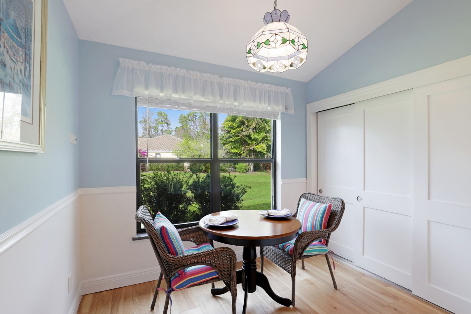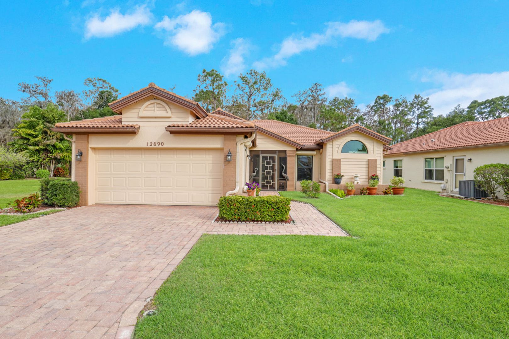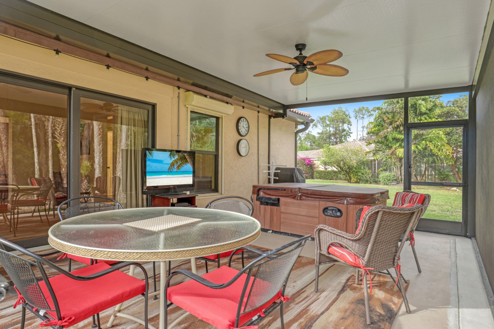 The traditional floor plan includes 3 bedrooms, 2 baths, formal living room and dining room, separate eat-in updated kitchen, family room, screened roofed lanai with hot tub overlooking preserve, in-house laundry, 2 car garage. Move in ready. High quality finishes. Hurricane rated doors, garage door, windows, also covered by hurricane shutters; engineered hickory hardwood and 24 inch porcelain tile floors; solid wood built-in bookcases, new interior paint on walls and trim. Hunters Ridge is very friendly, casual, and offers a large variety of social activities. Hunters Ridge is financially stable with low fees and no CDD's!! Enjoy all a private golf country club has to offer including large community swimming pool with poolside cafe, club patio bar, fitness center, clubhouse, dining room and grill room, tennis courts, pickleball courts, bocce ball, golf simulators and much more!
