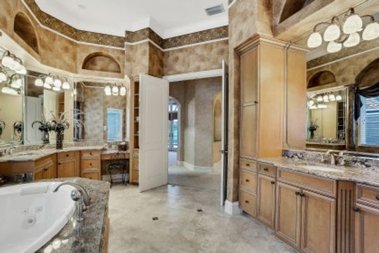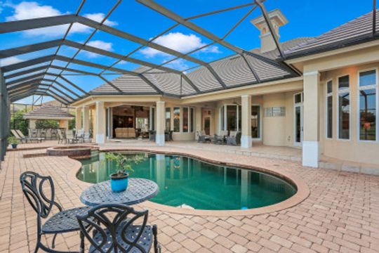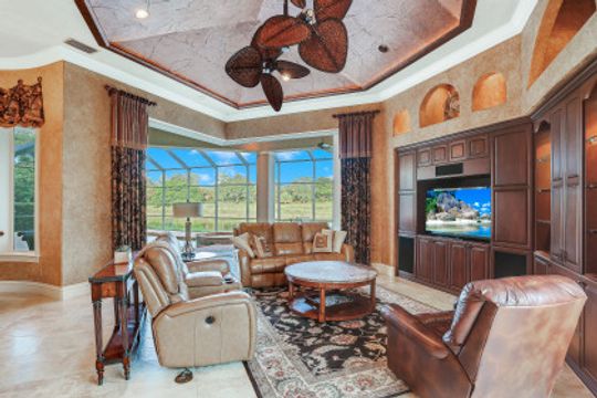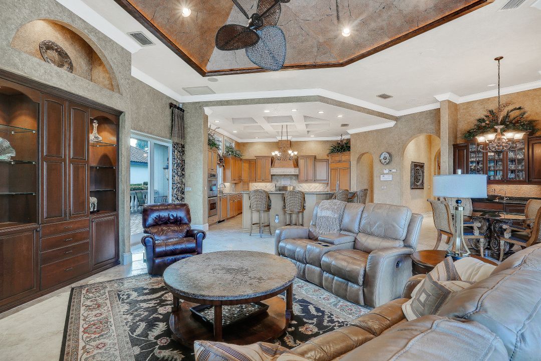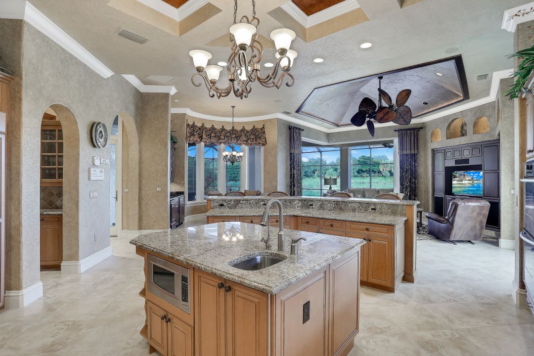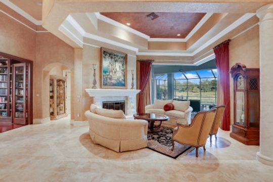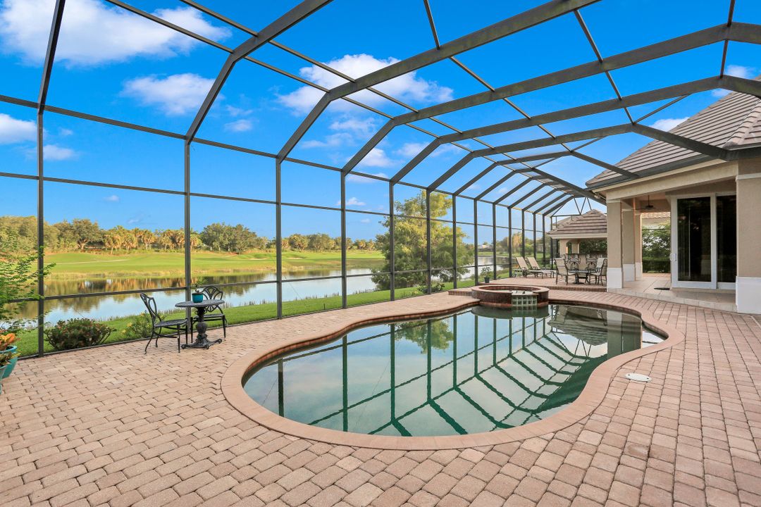 Exceptional Estate Home situated on an oversize lot on Terabella featuring sweeping Lake and Golf Course views. Offering over 4,650 SF living area and 9,667 total area with 3 Bedrooms, 4 Full Bathrooms, multiple lanais and private courtyards overlooking the stunning Arthur Hills Championship Golf Course. Built by Royal Corinthian Homes to be one of the largest single-story homes in the Renaissance. Separate family & living room with custom coffered ceilings, fireplace, bar & amazing views. Chef’s kitchen with granite counters, double-oven, island & butler pantry all open to the living room. Wine room & stunning study with private entrance. Multiple 90-degree pocketing sliders. Owners suite features custom ceiling, golf course views & bath with jetted tub & walk-in shower. Second master suite has a private 441 SF patio. Resort style 2,300 SF screened lanai alongside the heated pool, spa, and panoramic golf & lake views. Additional upgrades include new Flat Tile Roof, new gutters, new exterior paint, marble floors, FULL HOME Generac Generator, Impact Windows & doors, 3 AC’s, propane tank & 3 car garage. Newly remodeled Renaissance is a low-density exclusive golf community.