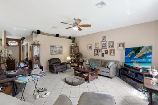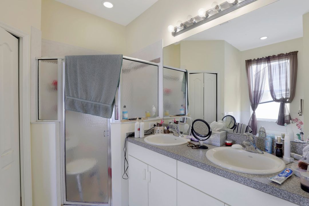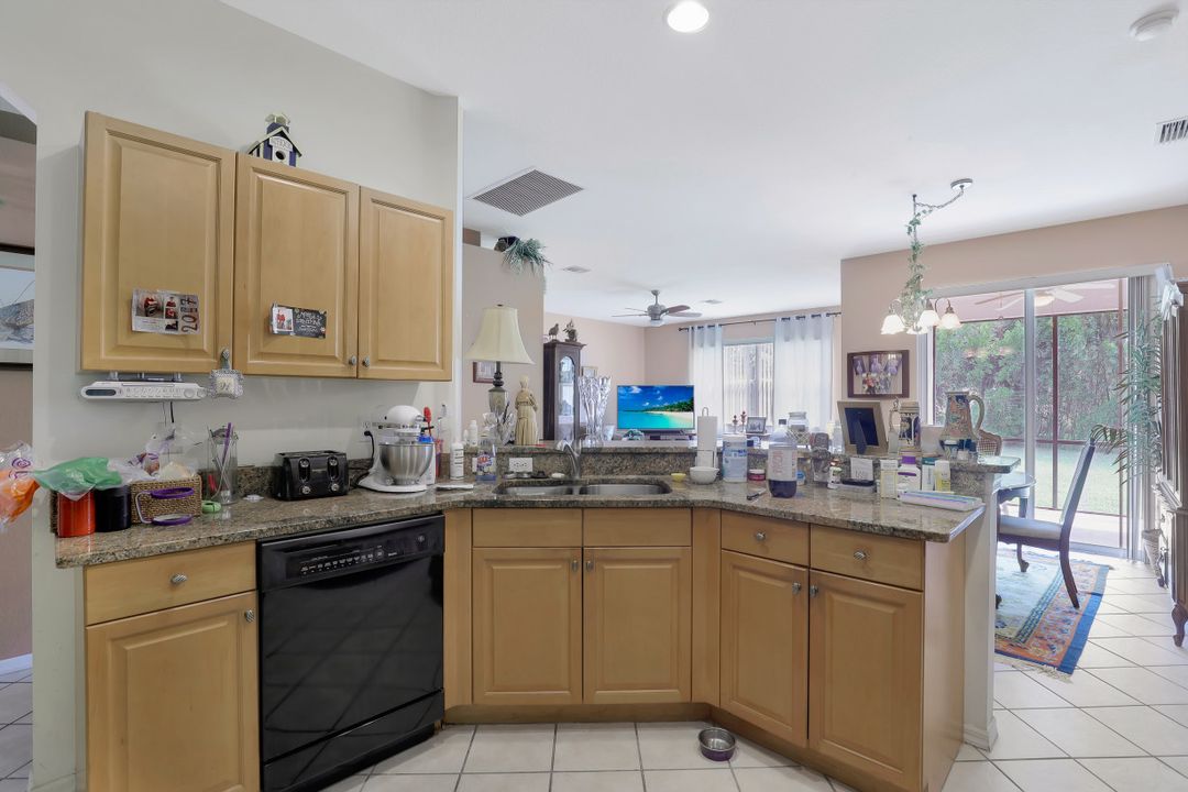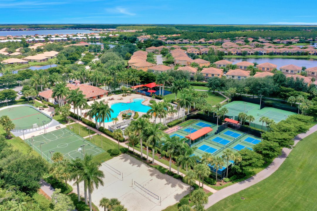 Affordable home in the popular gated neighborhood of Stoneybrook in Gateway. A great value, this Augusta Flex model features 3 Bedrooms 2 Full Bathrooms and a 2 Car Garage all located in a secure gated amenity rich community with low fees. Featuring tile floors, plantation shutters, cathedral ceilings, and a split-family floor plan this makes for the perfect home. Open kitchen with dining nook overlooking the living room, perfect for families and entertaining. Master suite features sliding glass doors leading out to the patio, and the master bathroom offers a dual vanity, walk-in shower, and soaking tub. Well appointed guest bedrooms and shared full bathroom. Relax outside in the private 160 SF screened lanai and big back yard perfect for families and BBQ! Stoneybrook is an outstanding gated community within Gateway featuring a manned security gate, Heated Pool & Spa, Clubhouse, Fitness center, Lighted Tennis & Basketball Courts, Sand Volleyball, Shaded Park, Baseball & Soccer fields, Inline Skating Rink and loads of community events! Low HOAs include all the amenities, security and Xfinity X1 Cable Service for 5 TVs & Fiber Optic Internet!