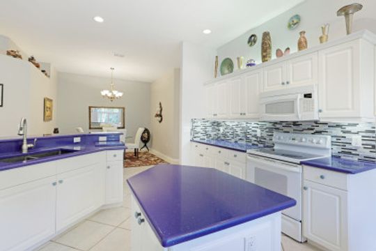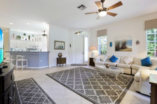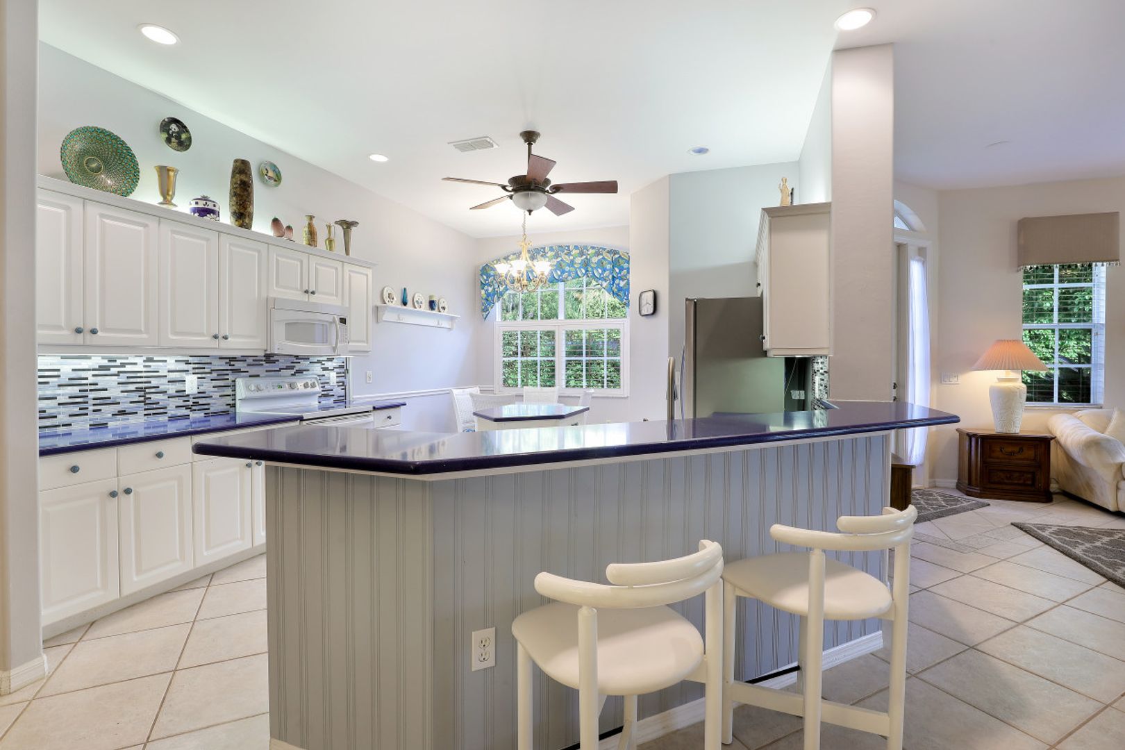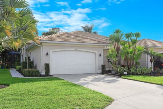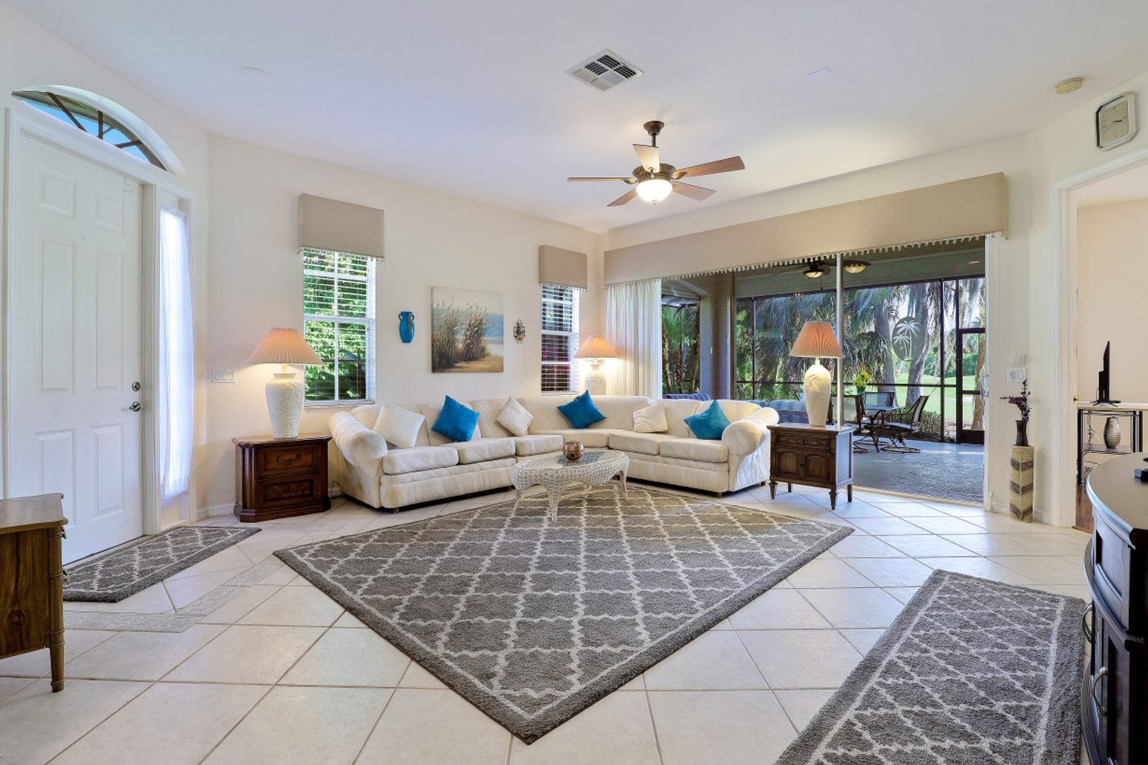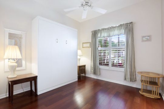 Must See Villa Home! Very Spacious, Bright Open Floorplan and Gorgeous Golf Course and Lush Landscaped View! New Roof 2017! This villa is an end residence which gives it a very private side yard and great views of the 16th hole and fairway! Great room floorplan that opens to the extended lanai, great for entertaining or relaxing and enjoying the tranquility and views. The lanai is equipped with electric hurricane shutters for storm protection and added security. The master suite offers a bay window and large master bath with a beautiful glass enclosed double shower. Both bedrooms and den feature Brazilian cherry floors with the main areas having large tile on the diagonal. The guest bedroom and den have "Murphy" beds allowing extreme flexibility in utilizing the spaces for multi-purpose needs such as office, den, media room etc. This premium lot is beautifully landscaped and beautifully maintained by the association. Hunters Ridge is very friendly, casual, and offers a large variety of social activities. Hunters Ridge is financially stable and no CDD's!! Enjoy all a private golf country club has to offer including large community swimming pool with poolside cafe, club patio bar, fitness center, clubhouse, dining room and grill room, tennis courts, pickleball courts, bocce ball, golf simulators and much more!