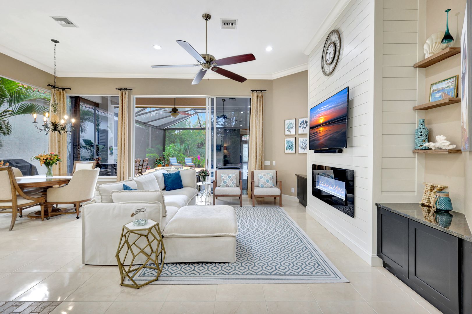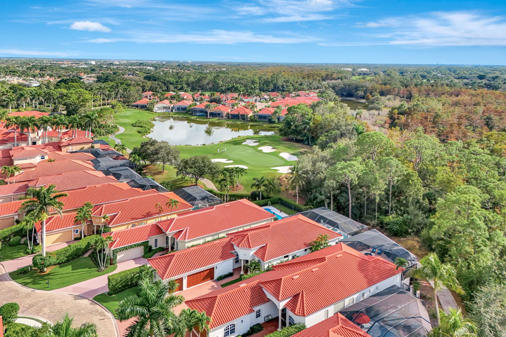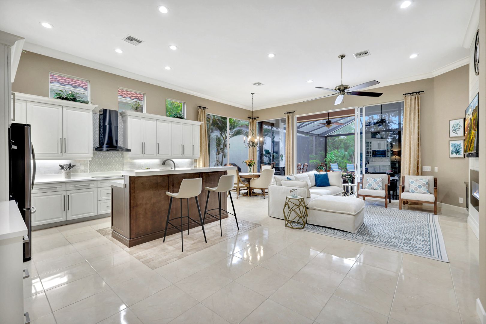 Located in the highly sought-after gated community of Pelican Marsh, this beautifully maintained Portofino residence offers a bright, open layout and exceptional privacy backing onto a serene preserve! Pelican Marsh provides an unparalleled lifestyle with a staffed fitness center, tennis and pickleball facilities, bocce, a vibrant Community Center nearby w/ on-site dining & socializing at the Courtside restaurant and 4 secure manned, gated entrances! All this with a modest fee structure which includes Community Center activities, staffed gym w/ new equipment, massage, 3 Bocce courts, 8 tennis courts w/ professional lessons, & 6 pickleball courts also with professional instruction! Recent home improvements feature refreshed landscaping, updated lighting, renovated kitchen and baths, new flooring in bedrooms and office, and an expanded outdoor living area with a redesigned pool and screened lanai. A rare opportunity to enjoy a move-in-ready home in one of North Naples premier communities. With only 43 homes & a beautifully landscaped entrance w/ lighting, Portofino is the best single family home location in Pelican Marsh. In spring of 2025 the exterior home, trim, garage door & floor was repainted/refinished, front lawn replaced w/ Zoysia grass, rock garden & succulent plants and lighting, new garage sconces plus security lights. Tropical garden & new paver walkway! Welcoming Mosaic floor detail installed inside front foyer & along formal dining room. Kitchen renovation includes quartz countertops & pull-out shelving, island bar, coffee bar and wine rack plus black stainless-steel appliances and hood! Open family great room has custom shiplap TV enclosure & color changing fireplace w/ heat and side custom cabinets w/ art decor shelving. All baths have new cabinets, showers & glass enclosures. Primary bath flaunts dual sinks, new commode & fan. Large dual walk-in closets. New floors in all bedrooms & office. Dual system AC w/ Wi-fi thermostats, beautiful large picture windows, new LED recessed lighting and tasteful custom draperies! 2025 pool deck expansion focuses new pavers & panoramic screen enclosure overlooks a glorious private sanctuary! Saltwater pool and spa feature multi-color lights plus solar shower w/ ;rivate glass block enclosure! Lanai area warms with new cypress wood ceiling & protects from sun & weather with Storm Smart electric screens! Remain active & healthy amongst comfort, beauty and endless activities within Portofino in popular Pelican Marsh!