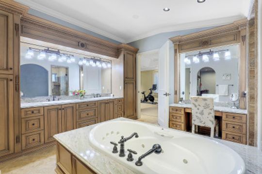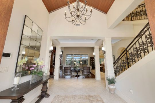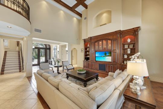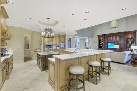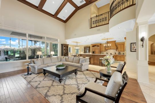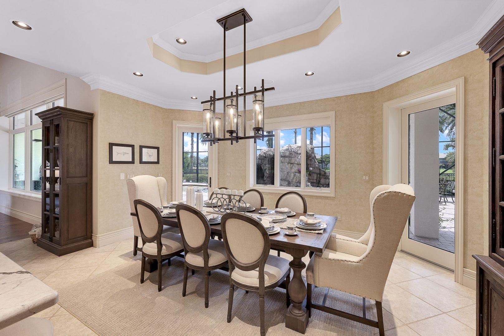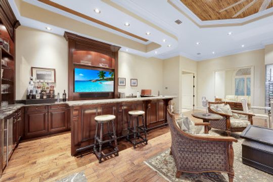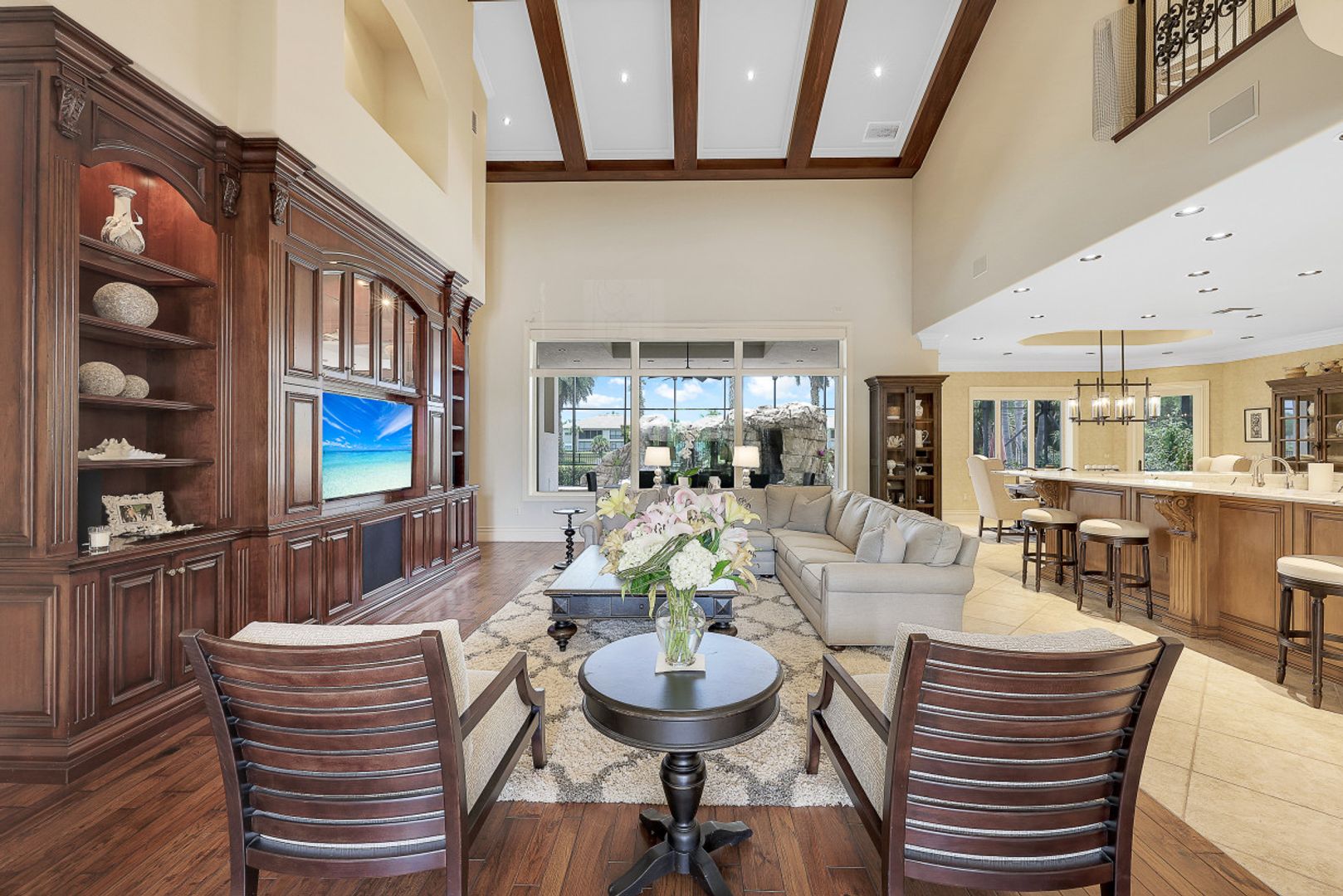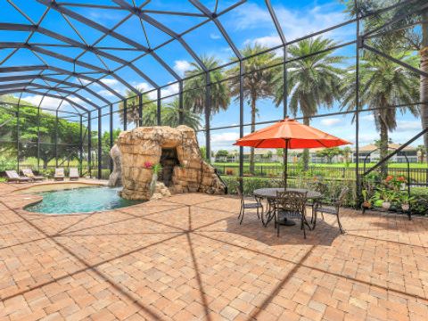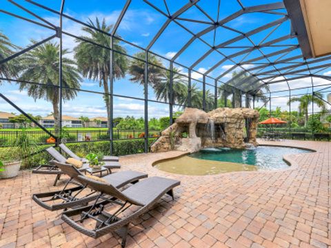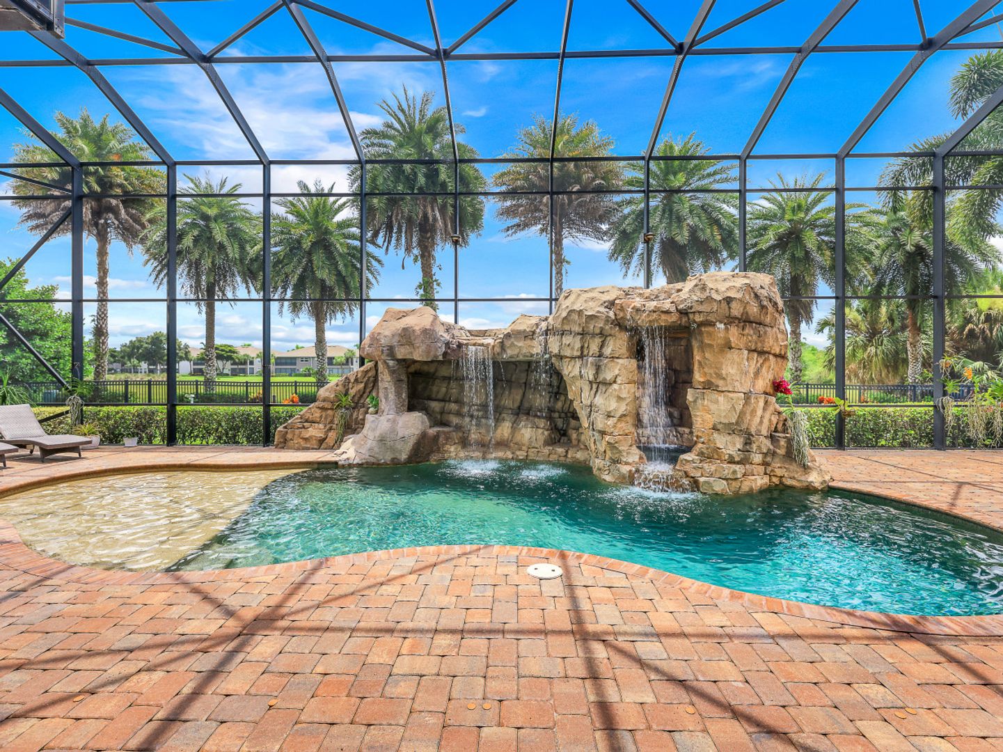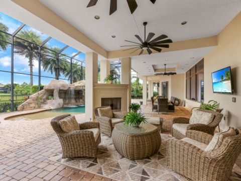 Welcome to this gorgeous custom Grand Estate Home located in the Terabella neighborhood of Renaissance! The construction of this property is like no other, offering steel truss and concrete construction from top to bottom. This home boasts four en-suite bedrooms plus powder bath, an extraordinary bonus room/bedroom with custom built-in bar and wine cellar... an endless amount of space for entertaining! The outdoor living area showcases an abundance of covered & uncovered screened-in patio space, a built-in outdoor kitchen, fireplace, and impressive custom pool & spa with descending waterfall feature. The lush surrounding landscaping creates a wonderful oasis and added privacy. This luxury home is perfectly positioned on a .50 acre private corner lot overlooking the tranquil lake and golf course views. A masterpiece of fine craftsmanship — the interior features inlayed tile and hardwood planked flooring, rich wood cabinetry throughout, coffer ceilings, Viking luxury appliances, and beautiful custom countertops. Enjoy the Master Suite with private balcony, large walk-in closets, dual vanities and an over-sized vault style shower with glass doors. This home is the perfect retreat!