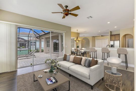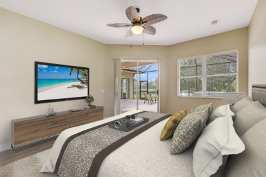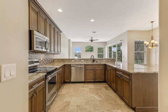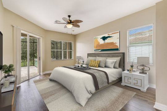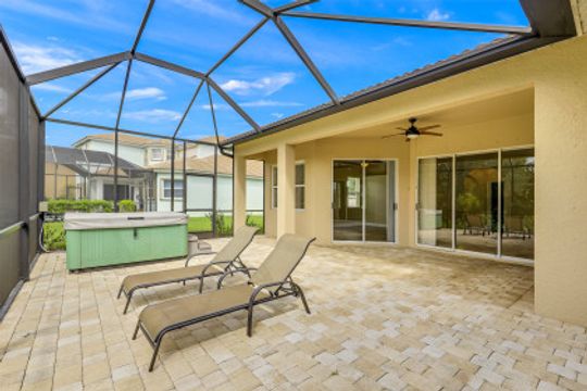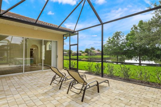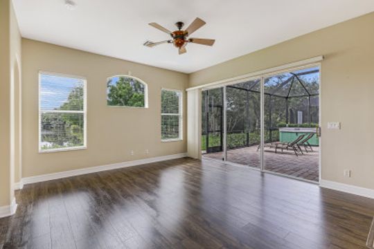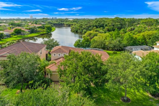 Stunning Lakefront home in Moody River Estates loaded with upgrades. Room for the entire family in this nearly 3,000 SF home featuring 4 Beds + Office and 3 full baths. Long water views looking down the length of the lake, this elegant estate home features travertine flooring, high vaulted ceilings, and several windows & sliders for natural light and water views. Open kitchen with wood cabinets, granite counters, and bar top seating. Formal dining & Living Room. Open family room offers several windows & sliding glass doors overlooking the lake. First Floor Master suite and Master Bath with his & her closets, dual vanity, walk-in shower, and tub. All bedrooms on the 1st floor and ideal for guests & family. Large office for working from home or could be 5th room. Whole main home is on 1st floor - upstairs features a large bonus room with newer flooring. Perfect for a 2nd master, game room, theater room, endless options. Extended patio with heated hot tub. Moody River is a family friendly Gated Community. Walking Distance to community Pool! RESORT STYLE AMENITIES tennis & basketball, resort style pool, fitness center, and BOATERS this home is GULF ACCESS via the community boat ramp.