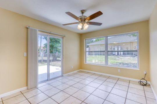 360 DEGREE VIDEO TOUR OF THIS HOME IS AVAILABLE! MOVE IN READY! Great starter home, second home or investment property. You will not want to miss this 2BR, 2BA W/ 1 car garage. This home has over 1100 sqft of living with fresh paint on the interior of the house & new carpet flooring throughout. Upgrades include: all new windows and doors, both of the bathrooms have been remodeled, the electric has been upgraded W/ all new ceiling fans, newer A/C unit & Hot water heater! The outdoor living area is furry family member friendly with a large backyard-completely fenced in W/ plenty of room to add your dream pool! Convenient central location close to the Pine Island corridor, shopping & dining. Take a short drive to enjoy EVERYTHING SWFL has to offer, including, white sandy beaches, world class fishing, boating, kayaking, paddle boarding, tubing & jet skiing!