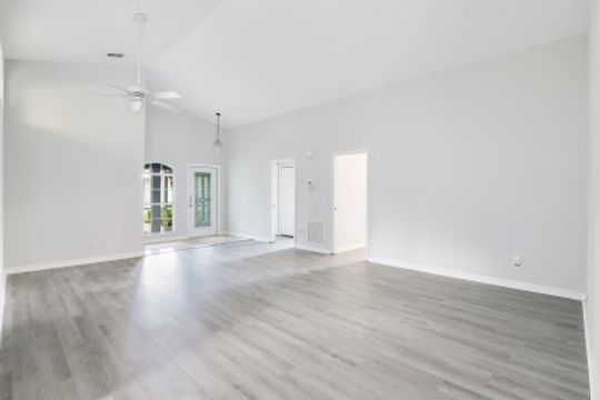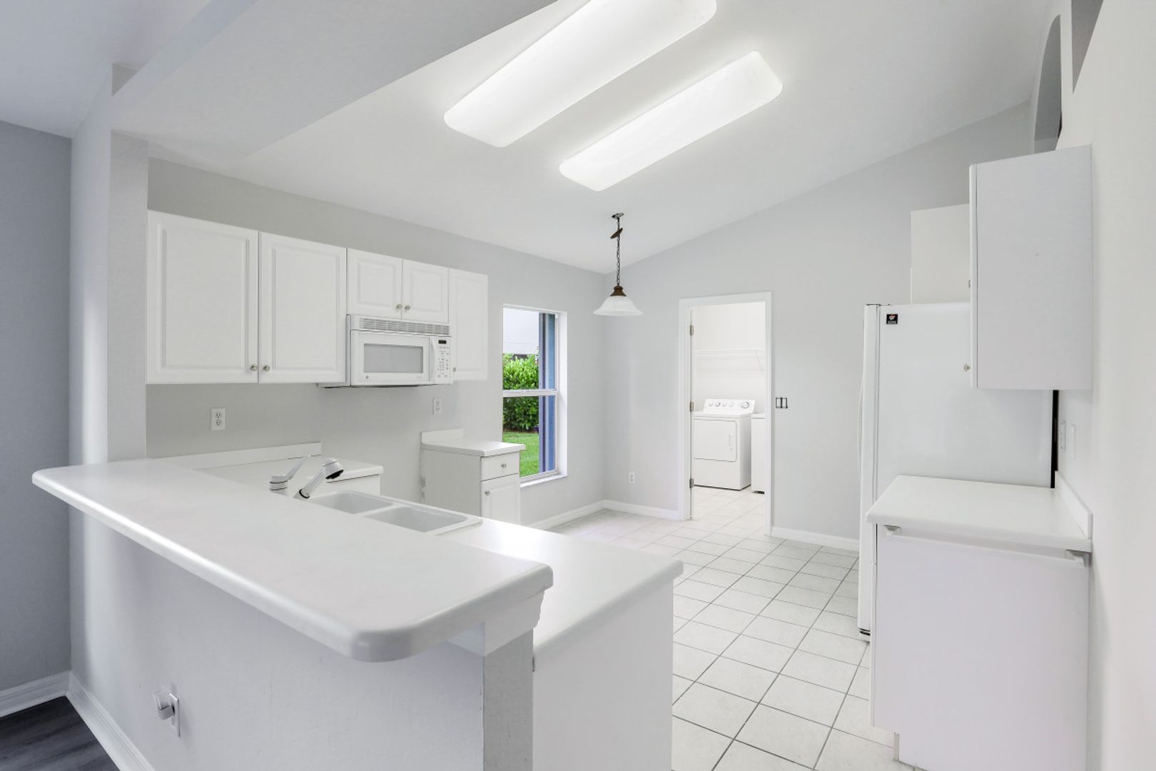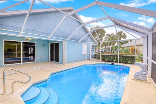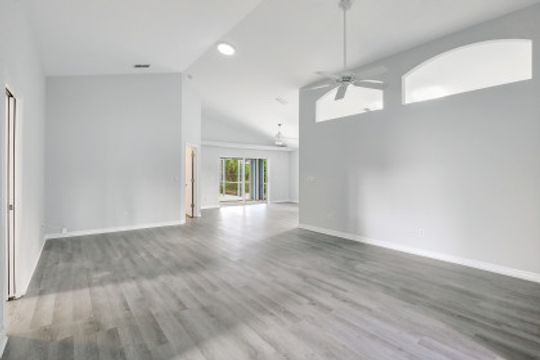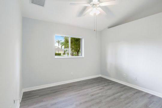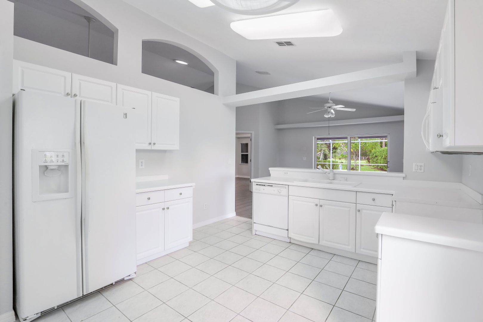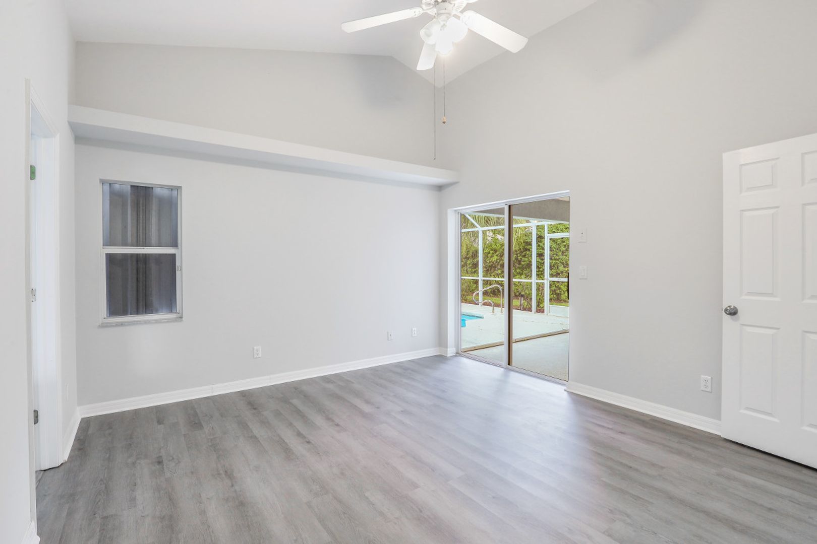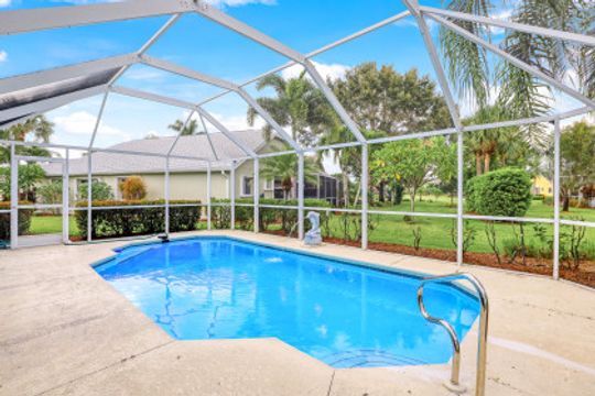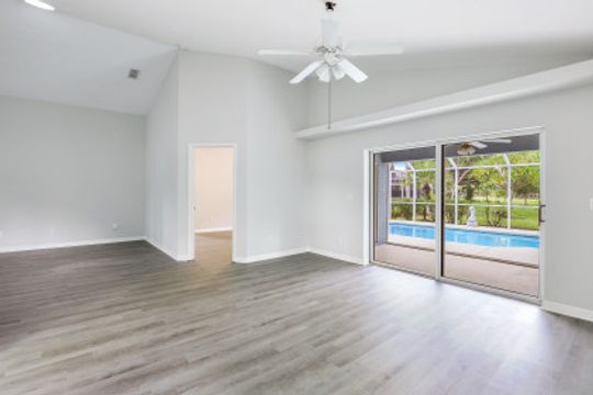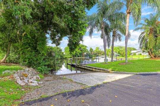 LIGHT AND BRIGHT POOL HOME IN AN AMENITY RICH BOATING COMMUNITY WITH LOW HOA FEES! This 2 bedroom + den, 2 bathroom, 2 car garage, pool home boasts just under 1700 sq ft. Pulling up to your new home you will fall in love with the mature landscaping, professionally maintained by the HOA! As you enter, you will be greeted by soaring vaulted ceilings, recently installed vinyl flooring and freshly painted interior. Solid surface flooring throughout (vinyl in main living area, bedrooms and den, tile in the kitchen and bathrooms). The spacious den is large to be used as a third bedroom or home office. Enjoy leisure time by soaking in the beautiful Florida sun poolside in your screened in lanai. Don't forget your boat! Palm Island offers its residents a free GULF ACCESS boat ramp with quick access to the river! Other amenities include: community pool/spa, exercise room and tennis court. This property is not in a flood zone. Convenient central location, just a short drive to both downtown Fort Myers and downtown Cape Coral, plus beautiful beaches. Enjoy everything the SW FL lifestyle has to offer!