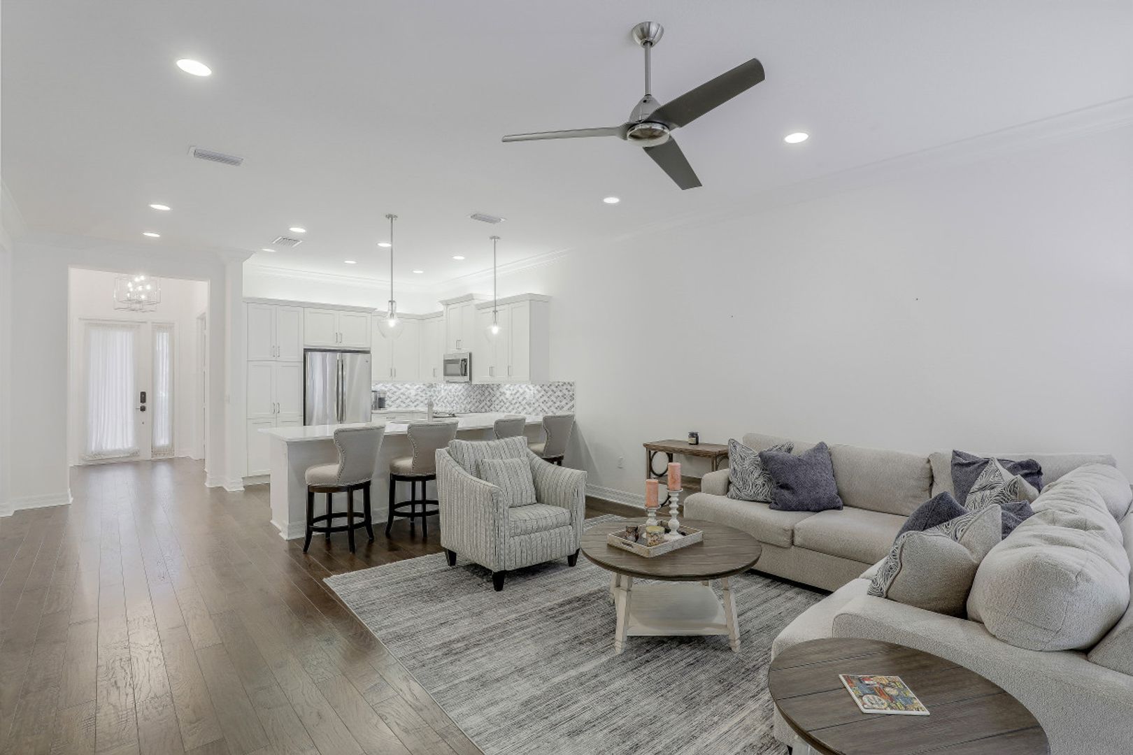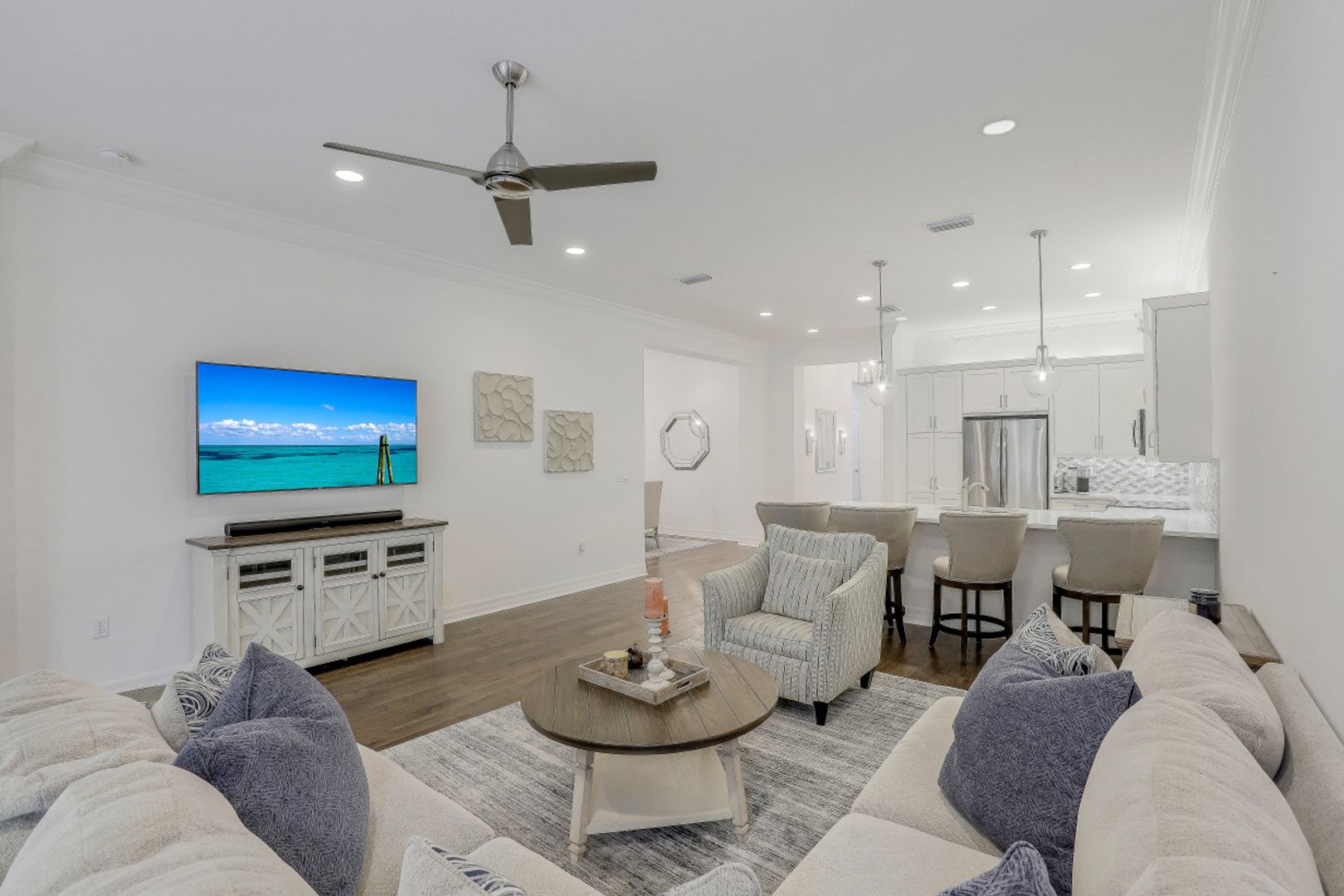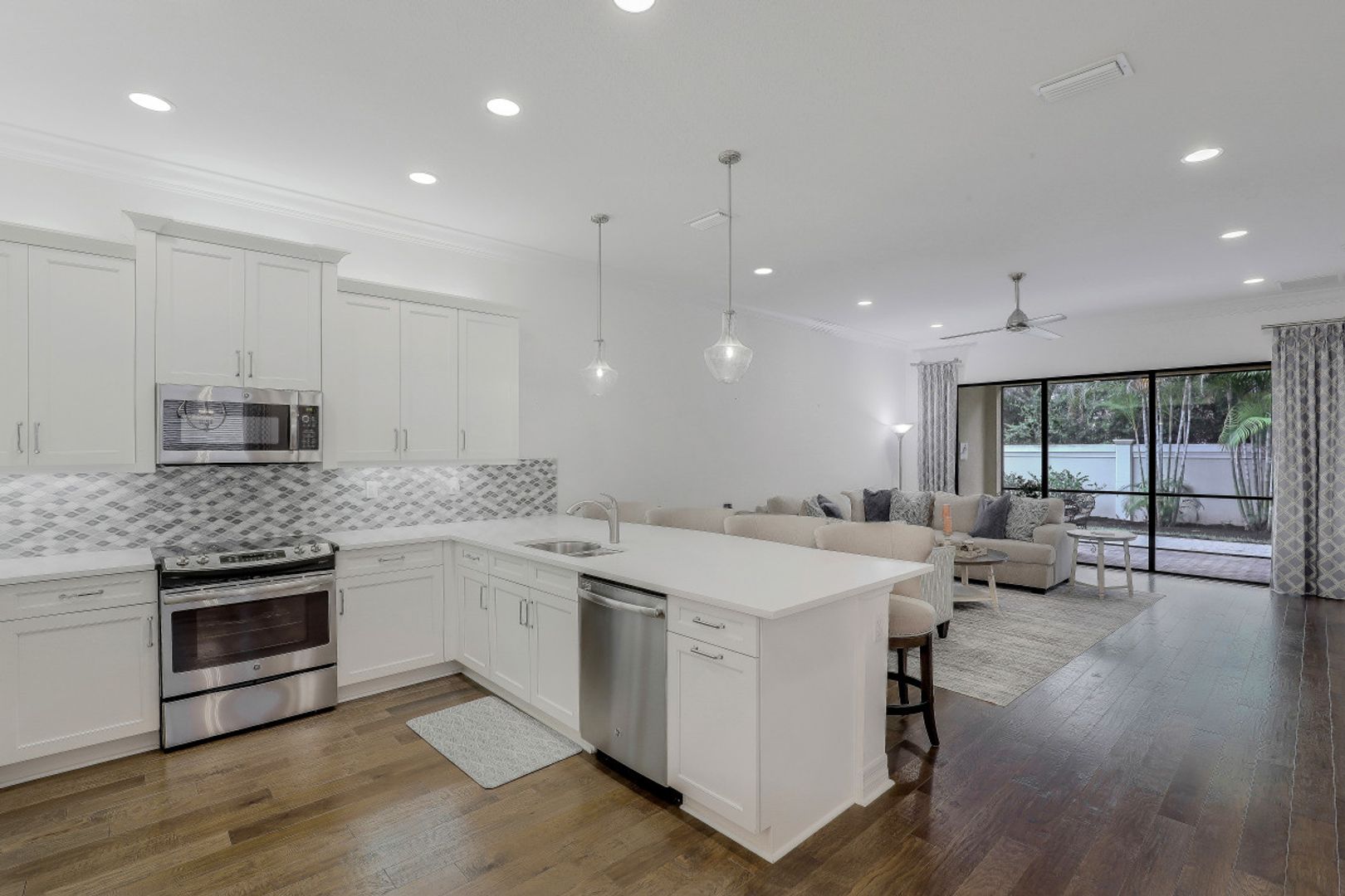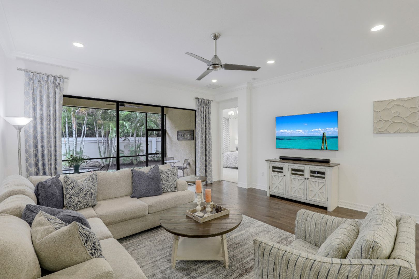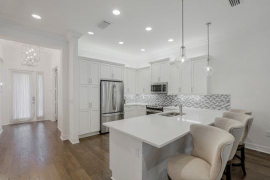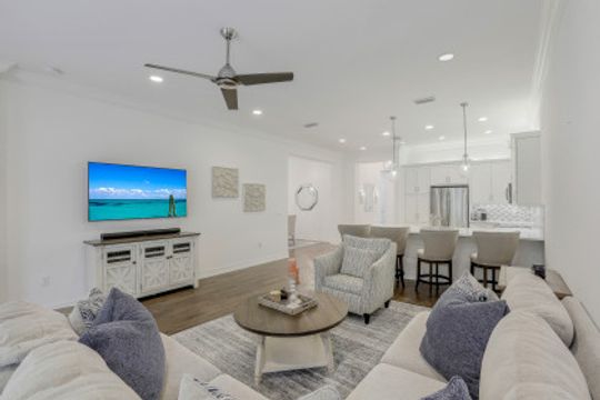 This well maintained 2 bedrooms plus den, 2 bath attached villa in Marbella Isles is move-in ready. Features include neutral quartz countertops and white cabinetry throughout, scraped engineeered wood floors in main areas and den, designer lighting custom mirrors and frames and new carpeting in the 2 bedrooms. The open conceot kitchen with large breakfast bar, looks out to the living arwea and is adjacent to the dining room. The pavered lanai leads out to a quiet and private extended paver patio. Marbella Isles is centrally located in North naples with 2 entrances. Resort amenities include large clubhouse with well equipped gym, fitness room, tennis courts, pickleball courts, resort pool, kids play ara and splash pool and basketball court. Come and enjoy this fabulous lifestyle in a supreme location to schools, dinign and shopping.