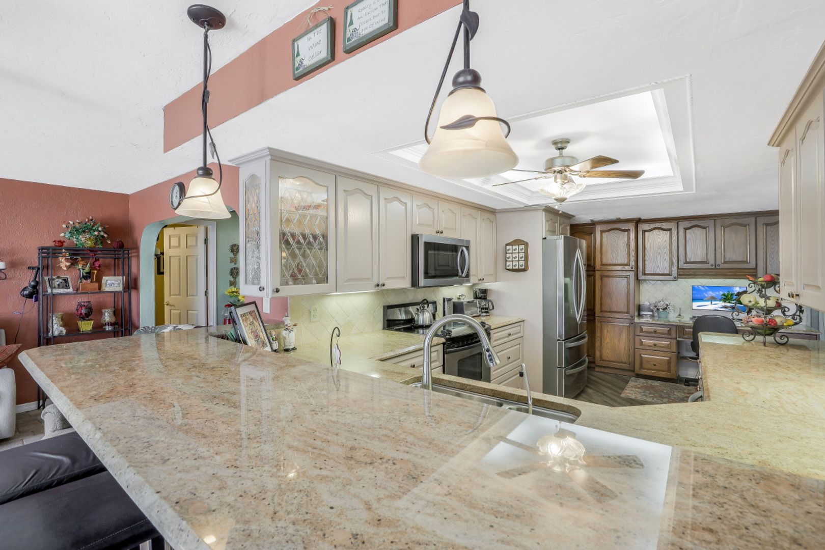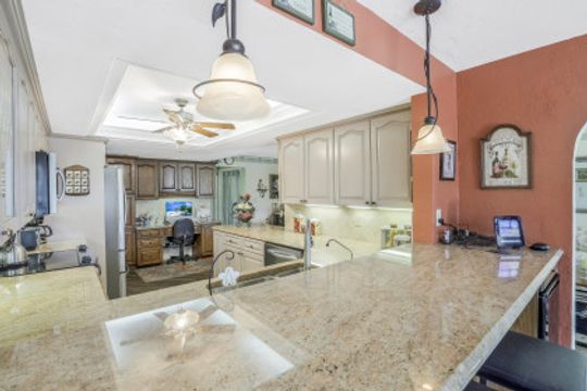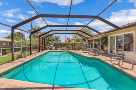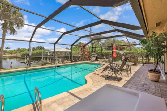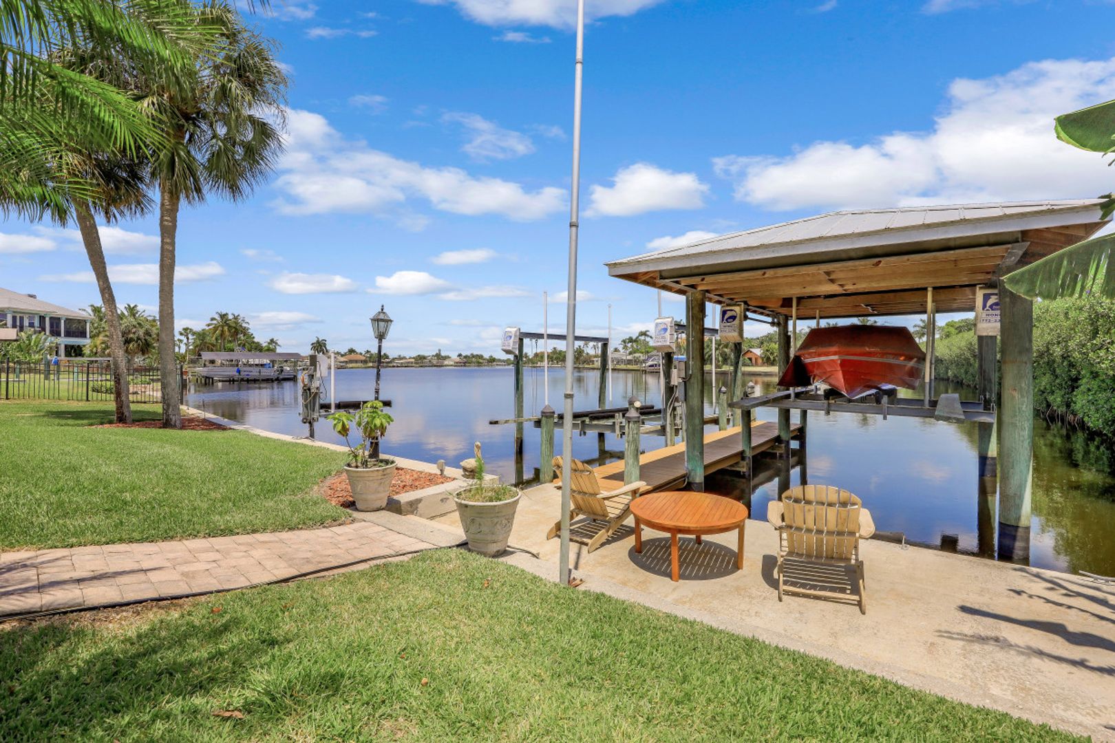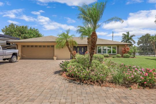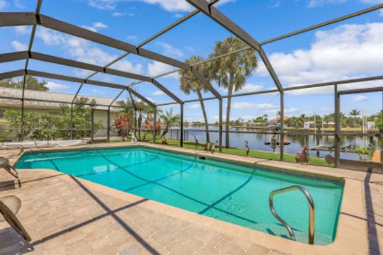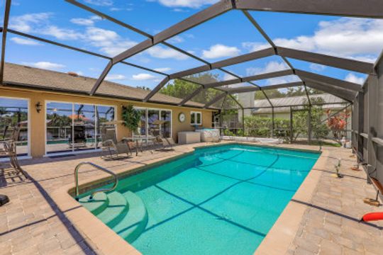 Come make this deep water access, salt water pool home, yours today! Boaters paradise! Two boat lifts ((one 16k and the boat house lift is 4k which can easily be changed to 8k)), jet ski lift, dock with water and electric. Seawall is in great shape. You can even bring your RV! Parking and 50 amp hookup and clean out on property for complete convenience. NO HOA! Gate and fenced in yard allows for total privacy - beautiful pavered driveway and pool deck for the luxury look you deserve. Impact windows throughout, granite kitchen countertops, SS appliances, luxury plank flooring and tile, recessed lighting, dual sinks in both master and guest bathrooms. Insulated garage door, AC garage for those car enthusiasts, gutters, pebbletec pool finish, large laundry room with extra cabinets. More upgrades than can list- inquire today!