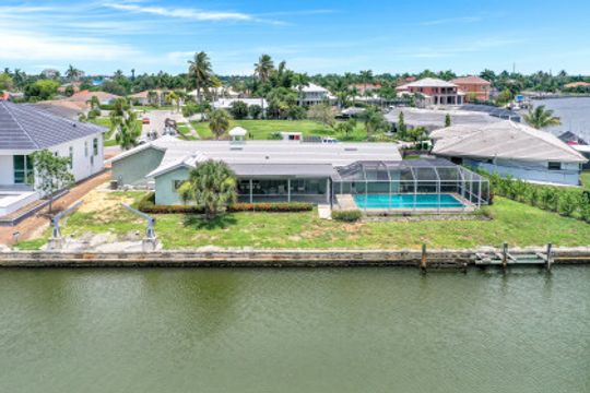 This southern exposure four bedroom 2 ½ bath water direct home has 154 feet of waterfront. Minutes to the Marco River and less than 1.5 miles to the Gulf of Mexico. New roof in 2020, and a newer pool cage in 2007. Prime home for complete renovation or knock down to build your dream home. Quick off the island location and close to shopping and restaurants.