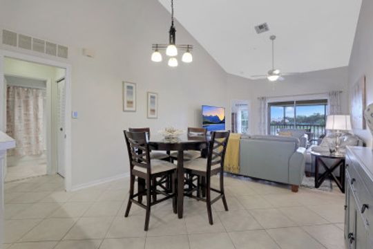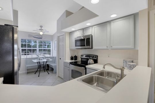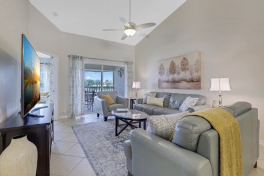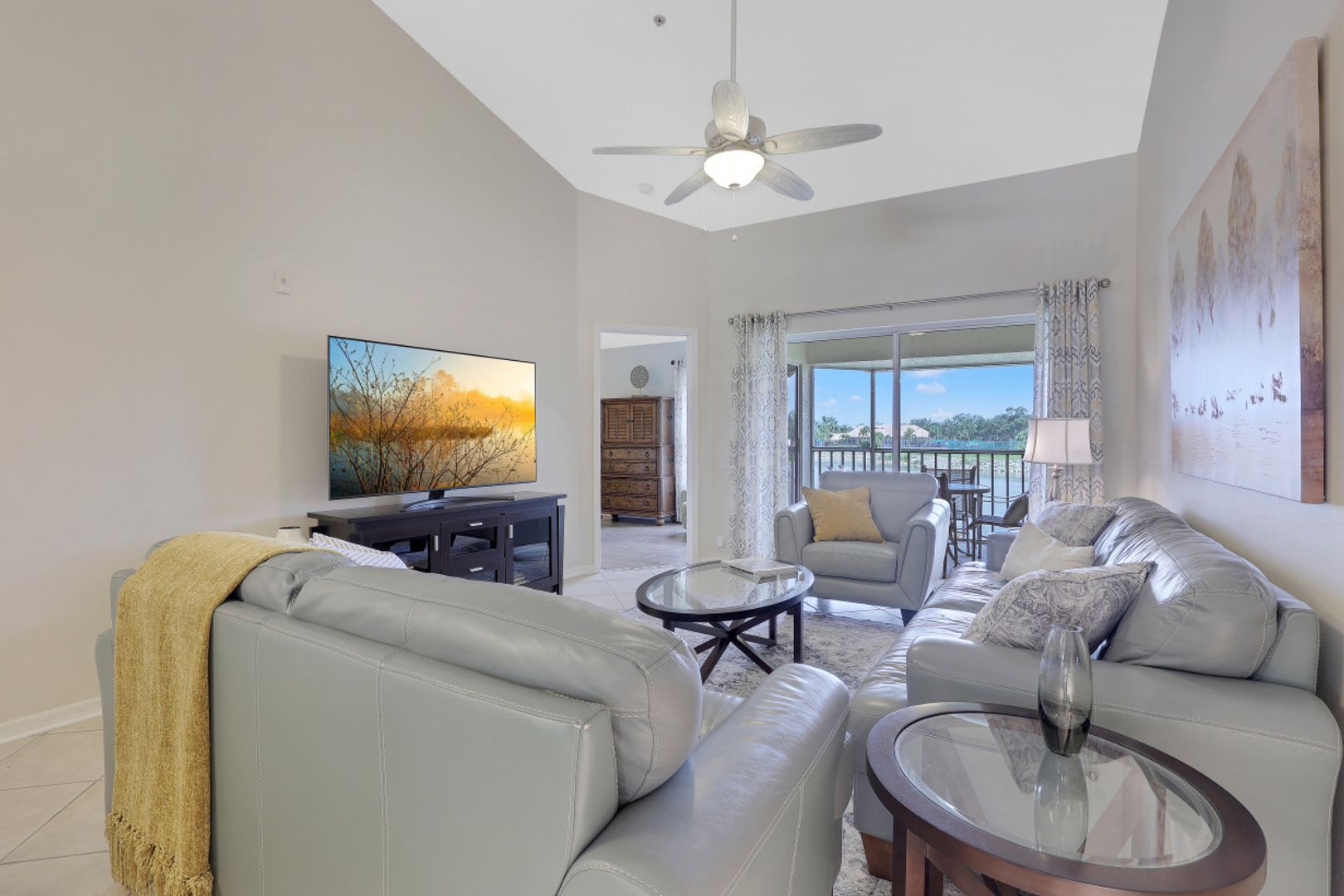 This is the carefree, move-in ready, turnkey furnished condo you've been looking for in the community you've been dreaming of. Fill your days with friends at the Worthington Country Club where you can play on a newly renovated, championship 18-hole golf course, 5 Har Tru tennis courts or 3 bocce courts. Workout in the state-of-the-art fitness center, then relax & unwind in the resort style pool & spa where you can pick up a refreshing cocktail at the cabana bar. Cap off your day with an elegant meal at the clubhouse. There are plenty of other opportunities to make friends with various activities & social events. Back at home, enjoy sunny lake views from the south-facing lanai. This fantastic 2nd floor Dover floor plan offers over 1,200 sq. ft. that feels even larger with vaulted ceilings & open floor plan. Durable, easy to care for, tile living area with decorative inlays & "wood" tile bedrooms...no carpet! Plenty of storage with large walk-in closets, entry closet, pantry & exterior storage closet. Kitchen features freshly painted cabinets for a coastal feel & stainless appliance. Master shower beautifully updated. Just pack your suitcase to experience the best of SW Florida!