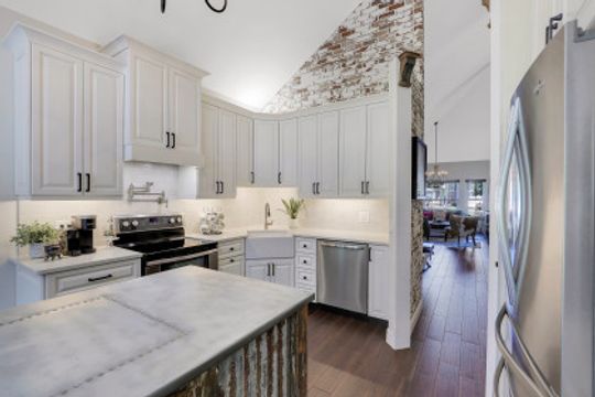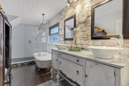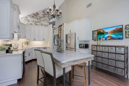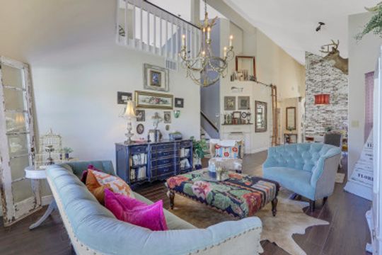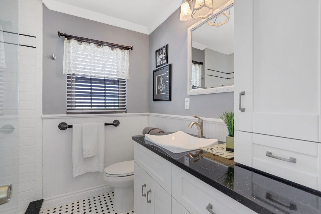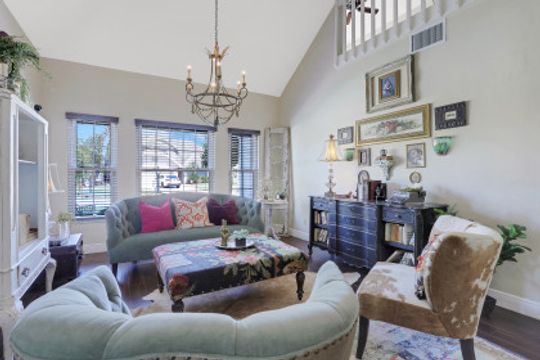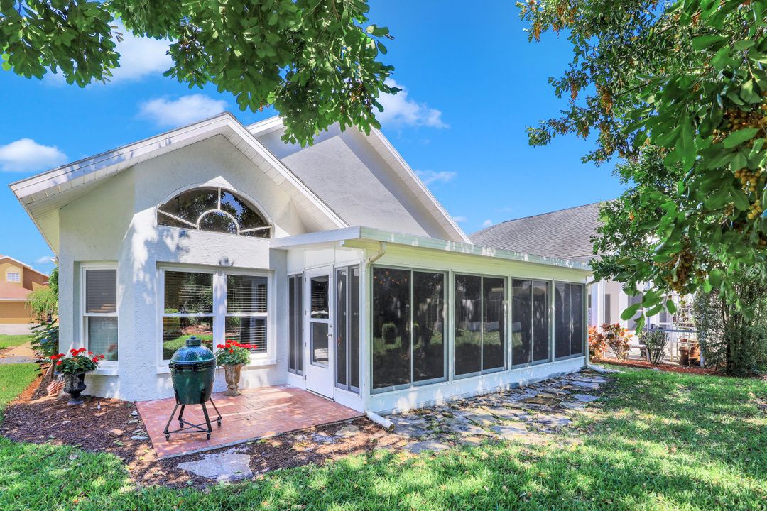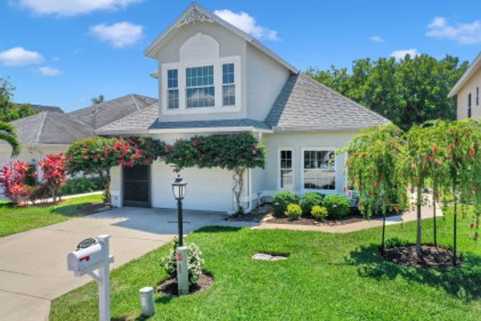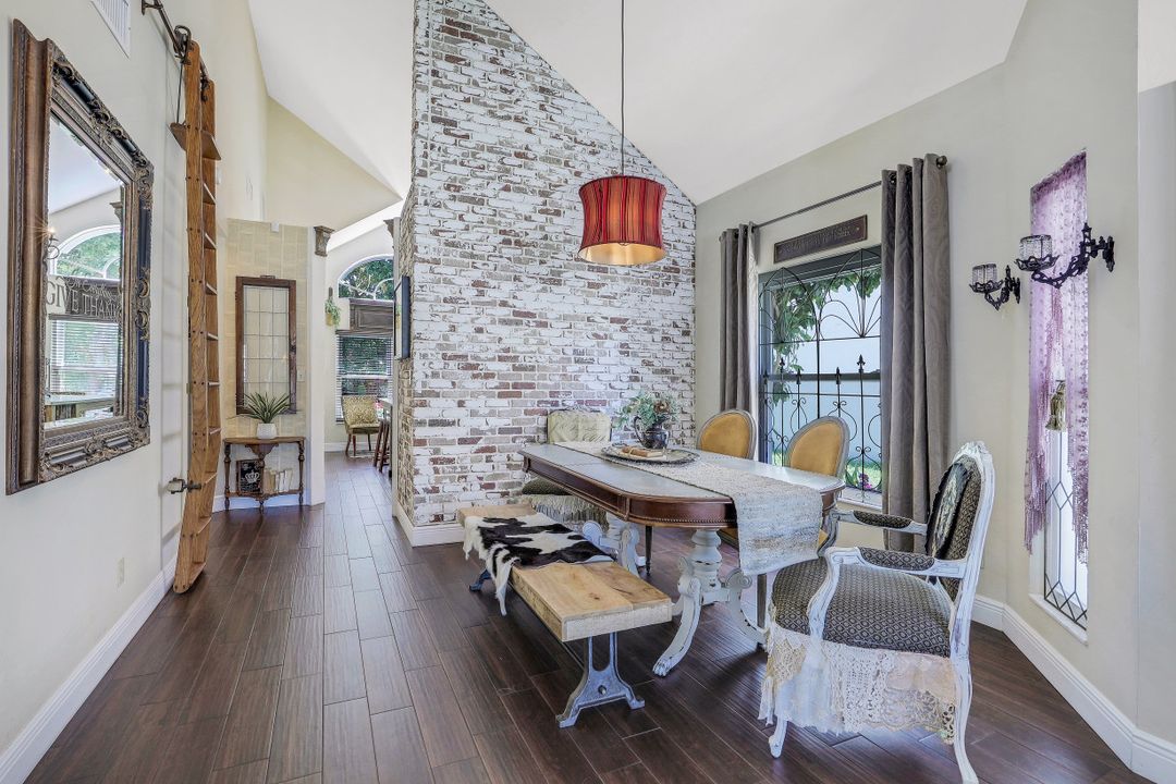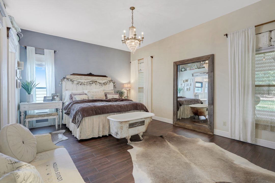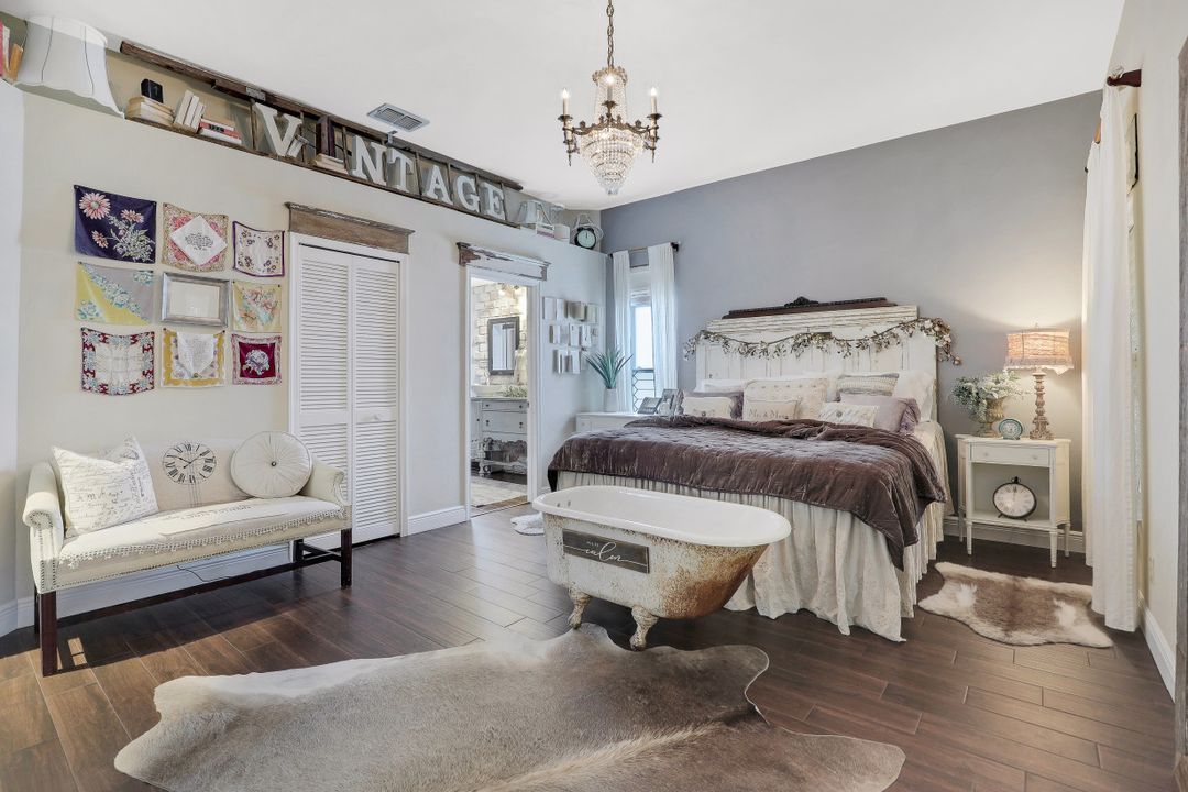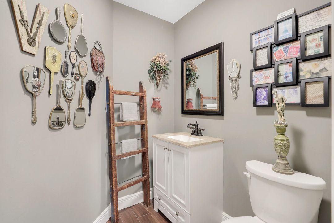 Elegantly updated with vintage detail throughout. This move in ready 2 bedroom 2.5 bathroom home is centrally located in Williamsburg at The Colony close to everything in Ft Myers, restaurants, shopping, Whole Foods, RSW, and Spring Training. Enter into a 2 story living room w/ porcelain plank floors, cathedral ceilings, formal dining, stunning décor, & custom brick accent wall. Recently updated kitchen white hardwood cabinets, Quartz counters, Kingston brass pot filler, and large custom vintage island & seating area. Beautiful First Floor owners suite w/ lots of natural light, walk-in closet, & recently remodeled bath w/ vintage cabinet vessel sinks, clawfoot tub, shiplap, and large walk-in shower. The loft is ideal for relaxing by the TV or work/study on the computer. Loft can be enclosed for 3rd bed. Upstairs features a large spare bedroom w/ full bathroom and easy attic access for storage. Laundry room with newer Whirlpool W/D and reclaimed wood ceiling. Relax in the enclosed FL room with 260 SF living space & windows throughout overlooking the peaceful Oak Trees, Staghorn, and grounds. Impact Glass, beautiful landscaping & night-lighting - Features list attached