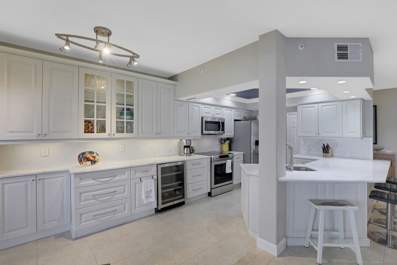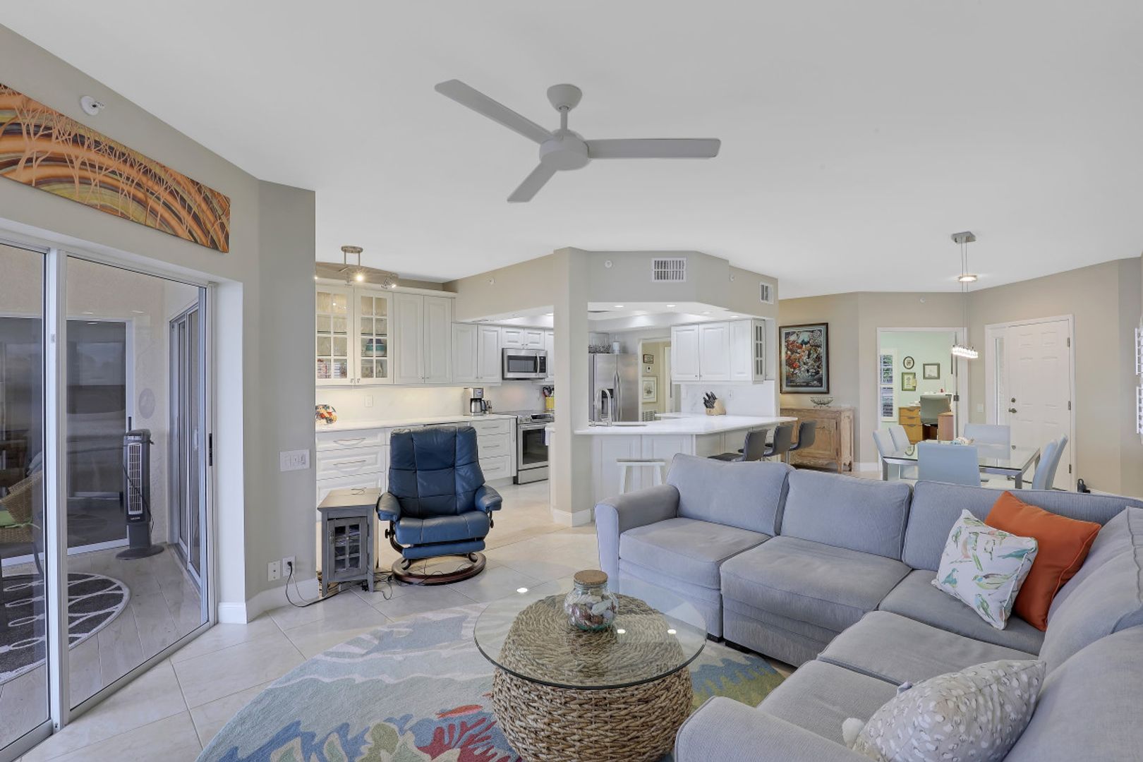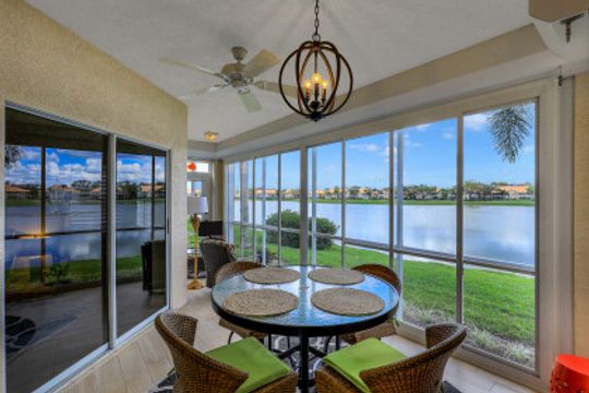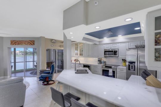 Absolutely the nicest 1st floor unit in Worthington. Seller has remodeled the unit including: Kitchen w/ Quartz counters & backsplash, stainless steel appliances, wine cooler, 42 inch & other cabinets. Plantation Shutters throughout, upgraded laundry room with new cabinets & counters, completely upgraded bathrooms, new floors in entry & screened porch with also acts as under air space when needed with both slider windows & screens including electric hurricane shutters. New carpet in master bedroom, 18 inch ceramic tiles in living room, kitchen front bedroom & bathrooms & vinyl wood flooring in 3rd guest bedroom. Newer lighting & fans throughout. Front guest bedroom has a desk set up with plenty of room for a bed or sleeper sofa. The furnishings & golf cart are negotiable. Enjoy Lake views from the screened in porch while having your morning coffee or wine after a long day of enjoying world class golf, tennis, swimming or working out. Worthington Country Club community has only 800 residents making this a great place to enjoy golf all year long without fighting for tee times. Only 20 minutes to beaches, shopping, restaurants, RSW airport & many other great Florida locations.