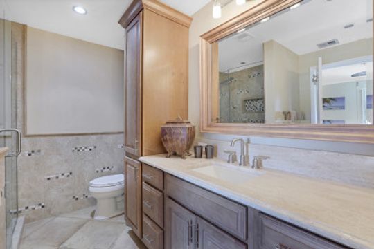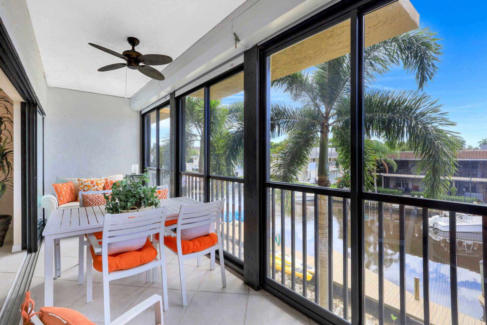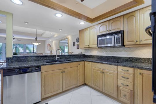 Beautifully Upgraded with 2 Master Suites each with their own outdoor balcony and full bath. Additional half bath near main living area. Well-appointed Turnkey Furnished, Deeded 28ft boat slip with storage locker that will hold up to a 24 ft boat. Open Floor plan with additional 100 sq ft of living area on the porch-balcony overlooking the water with views of the deep-water canal and Naples Bay. Large Laundry room with plenty of room for storage and extra pantry space. Electric Shutters on main balcony and balcony of master suite that overlooks the water. 2 AC systems for Bedrooms and Main area. Additional storage in attic upstairs. Granite Counters throughout. Custom cabinets throughout.