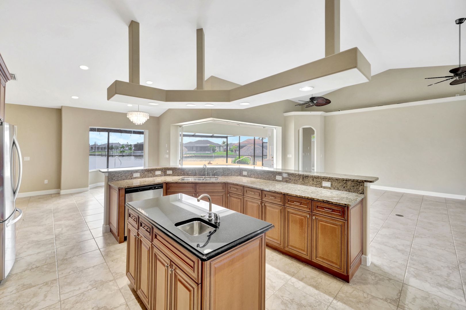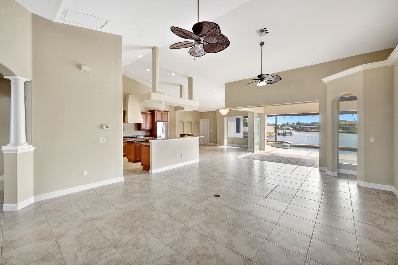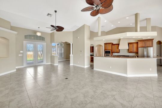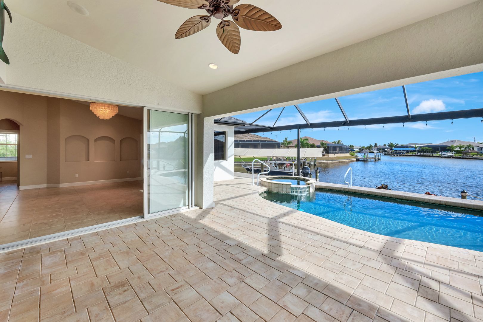 repare to be captivated by this stunning, 4-bedroom with 3-bathroom, 2900+ sq ft luxury residence; a testament to craftsmanship by local custom builder Aubuchon Homes. Situated on a highly desirable, *OVERSIZED SOUTH-EASTERN REAR EXPOSURE GULF-ACCESS LOT* with *146 FT OF WATER FRONTAGE*, this property offers the quintessential Southwest Florida lifestyle and a *BREATHTAKING VIEW THAT COMMANDS YOUR ATTENTION!*. Features include a great-room style floorplan with vaulted and volume ceilings, 90° sliding glass door, wood cabinetry in kitchen with stainless steel appliances and granite countertops, gas stove with hood, bar, large primary bedroom with sitting area, ample closet space, and tile flooring in the main living areas with plenty of natural light flowing through the home. Exterior features include metal roof (2022), paver walkways and gutters around entire perimeter, 30 AMP generator transfer switch, whole-house reverse osmosis system, and mature palm trees. Peace of mind comes standard with a remarkable 10-foot elevation! Step outside to an *ENTERTAINER'S PARADISE* featuring an *INCREDIBLE OUTDOOR LIVING SPACE* with a heated saltwater pool and spa, all enclosed by a pool cage (2022) boasting picture-frame screens to maximize your panoramic waterfront views. For the avid boater, the amenities are second to none, including a boat dock and lift (13k lbs installed in 2020) with a canopy and composite decking, and your own private tiki hut (2022)! The *EXPANSIVE HARDSCAPE AREA WRAPS THE ENTIRE REAR OF THE PROPERTY*, providing the *PERFECT* space for gatherings. This property is more than a home; it’s a statement of luxury, convenience, and unparalleled waterfront living!