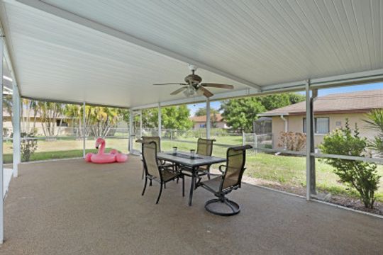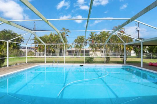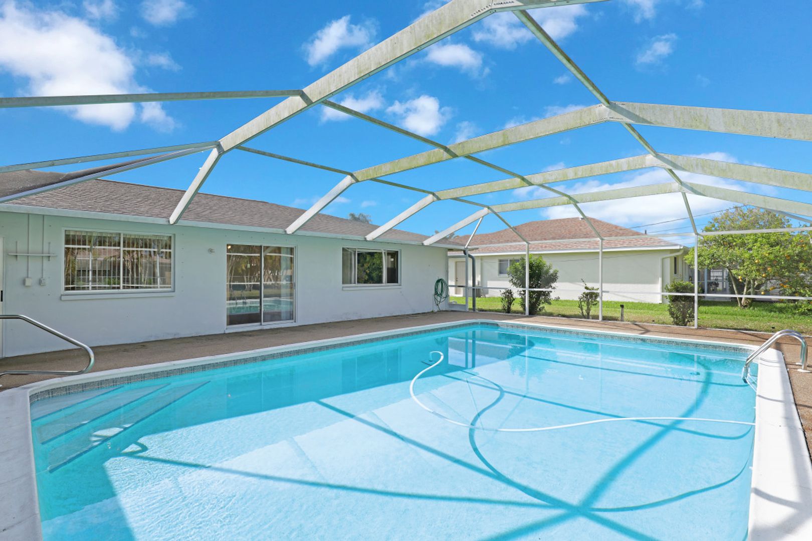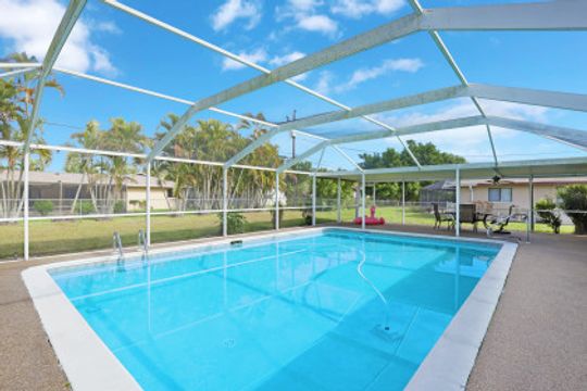 POOL HOME in a PRIME CENTRAL CAPE CORAL LOCATION! Great starter home, second home or investment property. 2BR, 2BA w/2 car garage with over 1,100 sq ft of living space. This home has tile/laminate flooring throughout, BRAND NEW AC in 2021 & a new pool screen in 2018. The kitchen features granite countertops, wood cabinets & new dishwasher in 2018! The outdoor living area features a LARGE pool & a huge covered lanai. Sit outside, relax and enjoy your favorite cocktails. This home is close to dining, shopping, entertainment plus its only a short drive to enjoy EVERYTHING SWFL has to offer, including, white sandy beaches, world class fishing, boating, kayaking, paddle boarding, tubing & jet skiing! NOT IN A FLOOD ZONE & Assessments are in and PAID! Schedule your private tour today!