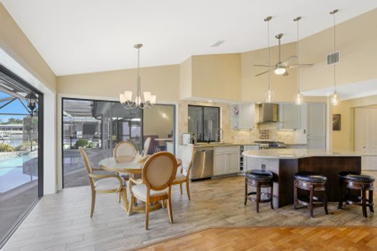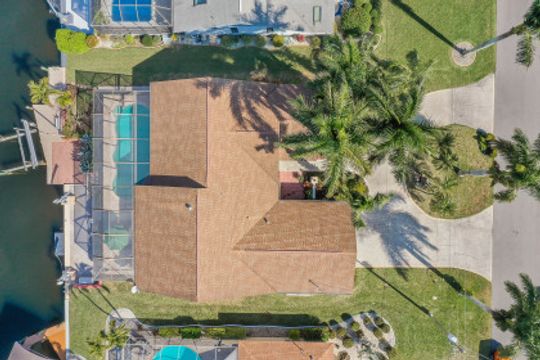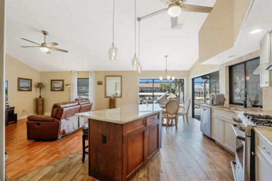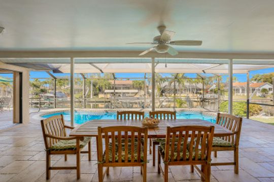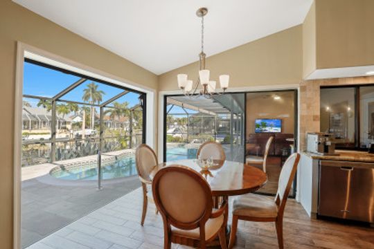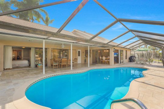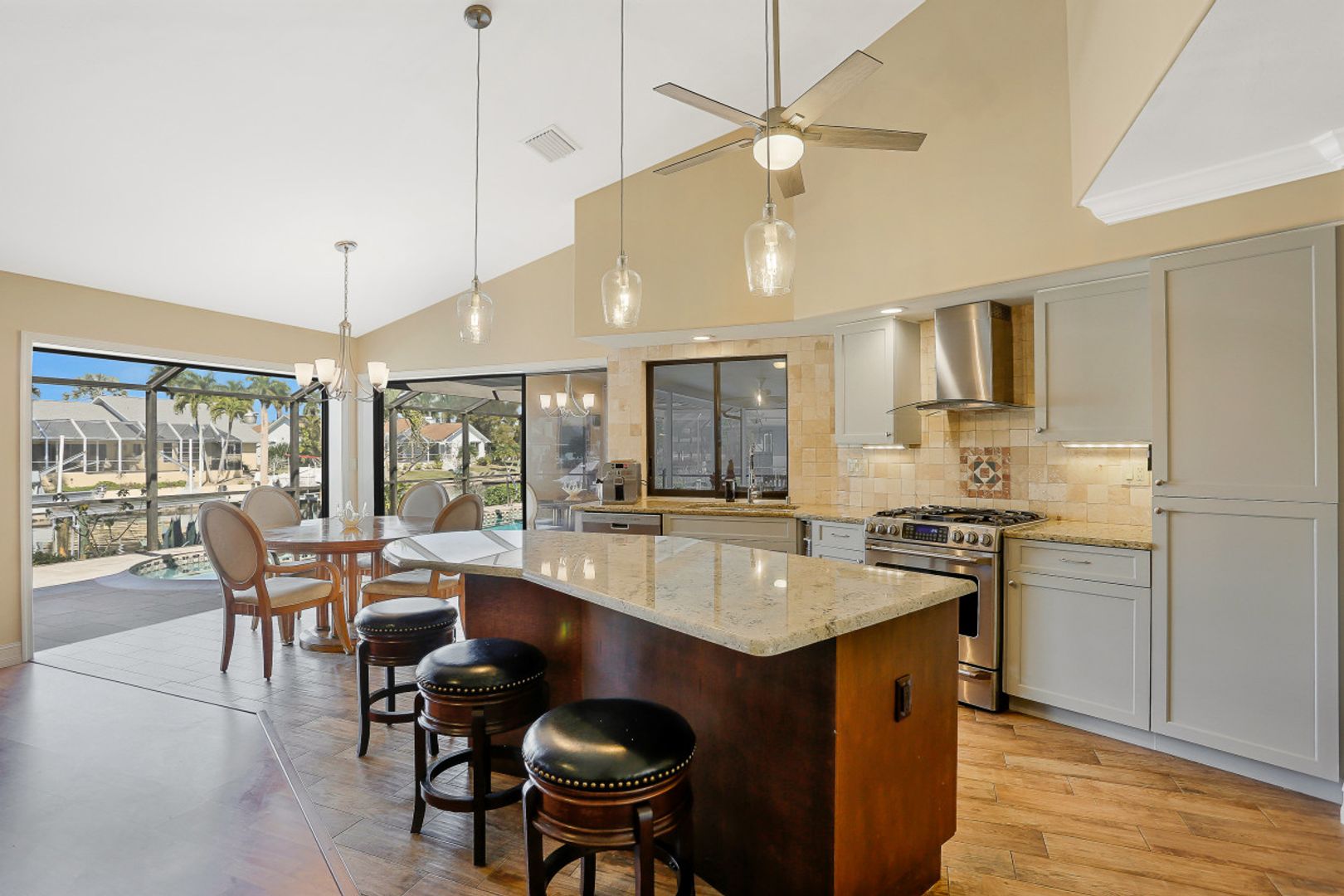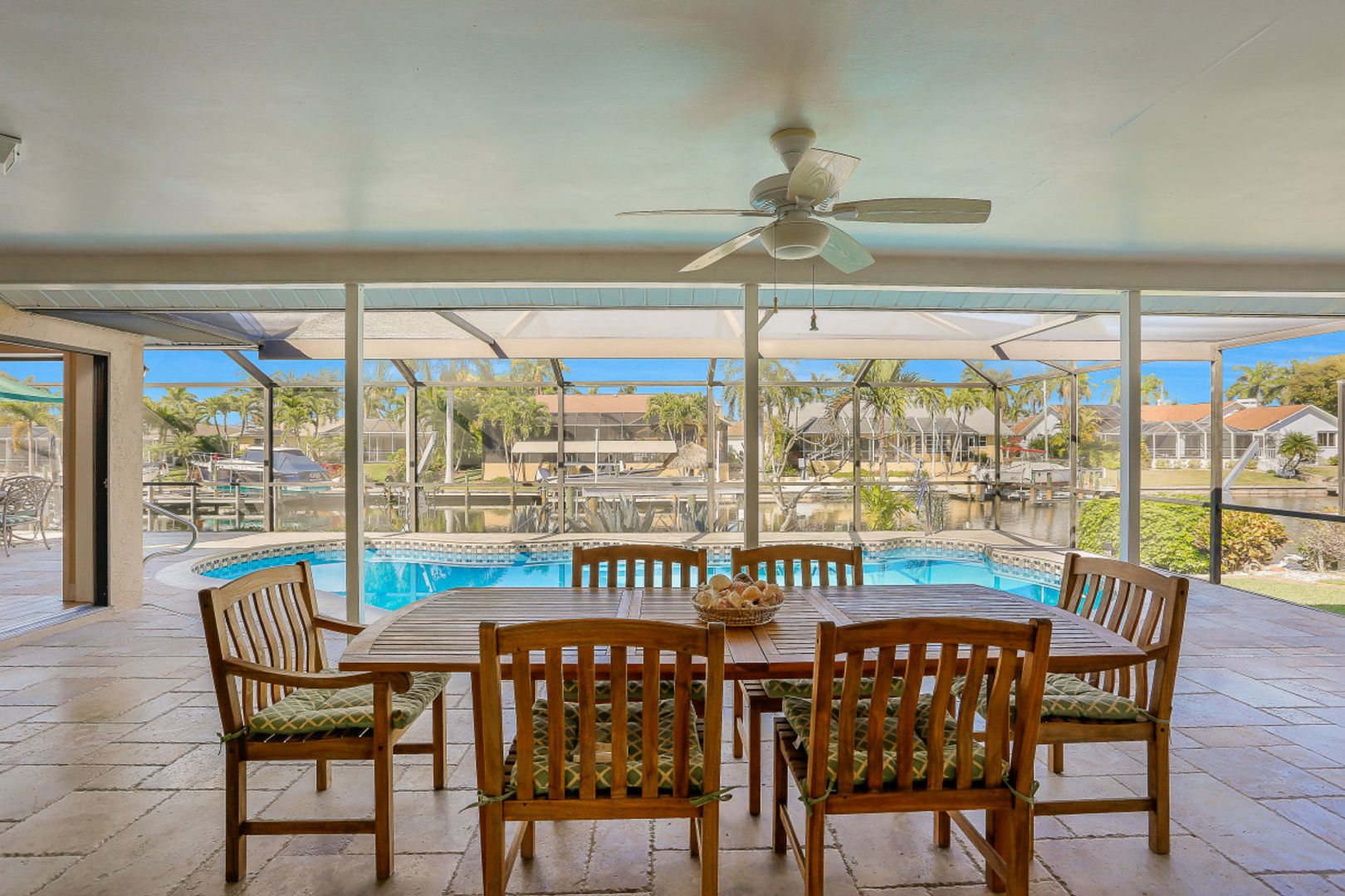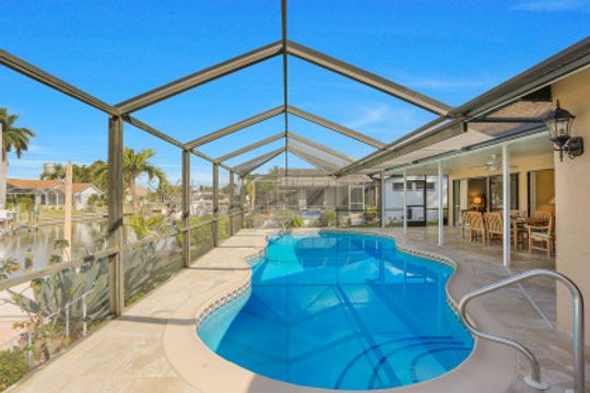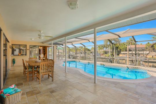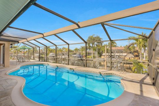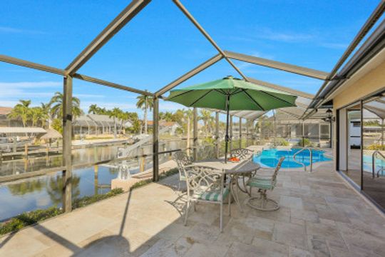 SAILBOAT ACCESS POOL HOME-no bridges, no locks, no power lines-MINUTES to open water & walking distance to Cape Harbour! Your dream home greets you w/beautiful lush landscaping, captivating the true essence of the FL lifestyle. French door entry opens to split floorplan w/formal living/dining rooms & private owners suite. Lovingly maintained home features 3BR/2BA/2 Car Garage w/over 2100 sq ft of living space. Kitchen & baths were remodeled in 2019 & offers granite counter tops w/large island, propane cooktop, stainless steel appliances, updated fixtures w/large sliding glass doors overlooking the outdoor living area. The owners suite features sliders to lanai, dual sinks, glass shower enclosure w/multiple shower heads, spacious walk in closet PLUS bonus den/craft room. The outdoor living area was designed to entertain w/travertine stone, large pool, sun deck & screened lanai! BRING YOUR BOAT-15k lb aluminum boat lift & floating doc for added convenience! Enjoy everything that SW FL has to offer-boat, sail, kayak, SUP, jet ski, fish or simply take a dip in your private oasis! White sandy beaches & world class fishing can be at your fingertips-schedule your private tour!