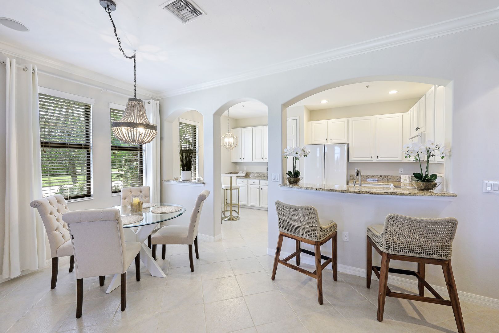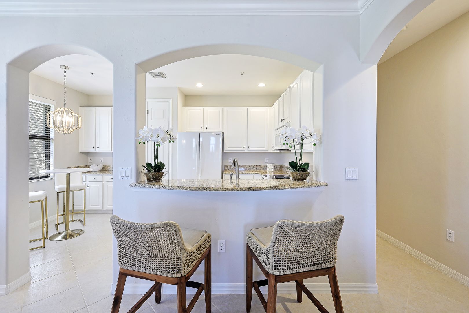 AVAILABLE FOR 2024-2025 SEASON JUNE 2024 THROUGH SEPTEMBER 2024 $3,000.00 PER MONTH, NOVEMBER 2024 $4,500.00 PER MONTH, DECEMBER 2024 $5,200 PER MONTH. SEASONAL RATE JANUARY THROUGH MARCH 2025 IS $6,500.00 PER MONTH. Pristine 2 bedroom, 2 bath plus den and powder room, 2 story end-unit condo with a 2 car garage and beautiful lake views in Artesia, a premier gated community in Naples. This unit was built to the highest quality standards and features an upscale design, a comfortable living space with lots of windows and natural light, eat-in kitchen with breakfast bar, upgraded cabinetry, granite counter tops, beautiful flooring and high impact hurricane rated doors and windows. The 2nd floor offers a spacious master bedroom with en suite bath, a massive loft/den and an ample guest bedroom. Property Management and Activities Director are on-site at the modern community clubhouse offering all-inclusive amenities, a tropical heated walk-in and lap pool, movie theater, billiard room, well-equipped exercise room, yoga studio, arts and crafts studio, library, pickle ball courts and dog park. Very conveniently located in the fastest growing area of Naples near four supermarkets, shopping, banks, restaurant row, and just minutes to 5th Avenue and Naples and Marco Island beaches!