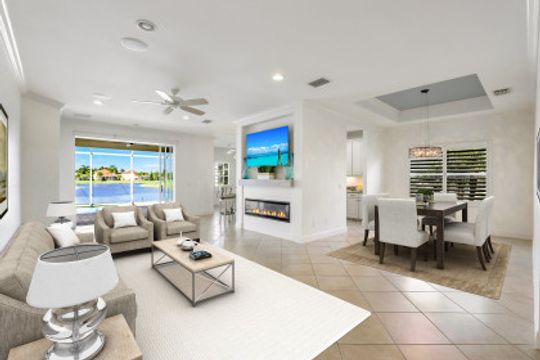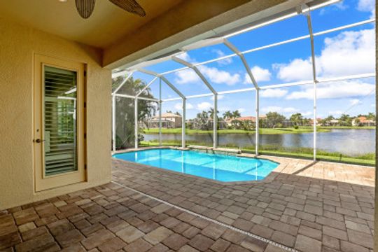 This supremely located, lakefront home stands proudly on a rare, South-facing premium lot with Privacy and Unobstructed Lake views. All while being located a quick drive to the pristine Naples Beaches, and Downtown Naples' top-notch shops and restaurants! Boasting 3 oversized Bedrooms +Den/Office (which could easily be converted into a 4th Bedroom) and 2 Full bathrooms, this house was remodeled in 2021 into a Coastal Chic home, with modern finishes and amenities. Enter through the brand new Front Entry door that allows the natural lighting to flow throughout the home, especially with its Open floor plan with volume and coffered ceilings. A brand new Fireplace adorns the comfortable and voluminous Great room, opening to the exceptional Kitchen designed with plenty of space with Custom Cabinets, Light Fixtures, Granite countertops, Backsplash & top-of-the-line Stainless Steel appliances. The large Dining Room sits naturally off the kitchen, making it an Entertainer's Dream. The Primary suite comes replete with two huge closets, including a Custom walk-in closet with built-ins, a spa-like bathroom with dual sinks and oversized walk-in shower. A separate office/den, laundry room, two additional oversized Bedrooms, Full bathroom, and central vacuum system complete this serene retreat. The pocket Sliders open to the private Patio for seamless indoor-to-outdoor flow, while the home’s built-in Sonas sound system sets the desired vibe. Outside, on the expansive brick paver patio, the private oasis includes a Custom Saltwater pool with updated, new equipment, including a new pool pump and salt generator & newly installed No-See-Ums screening that keeps even the smallest insects out of any enclosure!