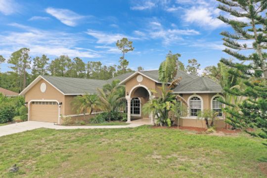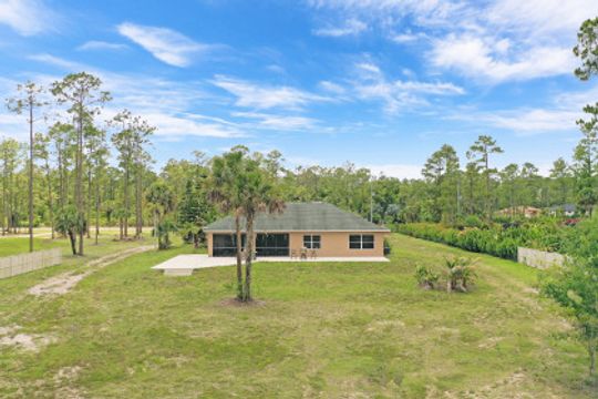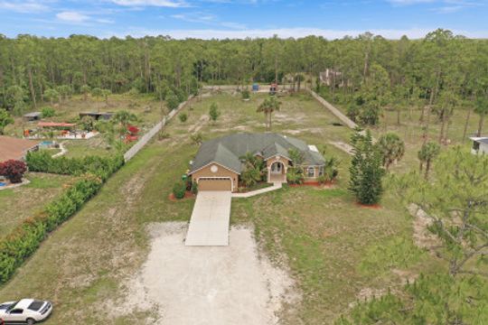Welcome to this one of a kind masterfully designed, constructed and well maintained 3 bedroom, 2 bath residence sits on 2.588 acres. You will notice from the moment you drive up the love and attention this family put into maintaining this home. This gem of a home sits back from the road and features a long driveway, spacious screened lanai. Plenty of room for a pool. The interior features an expansive family room and a formal living and dining room. The kitchen features granite countertops, wood cabinets, and stainless steel refrigerator. This home is centrally located off Immokalee Road in Golden Gate Estates. Bring your horses, home is ready to move in!