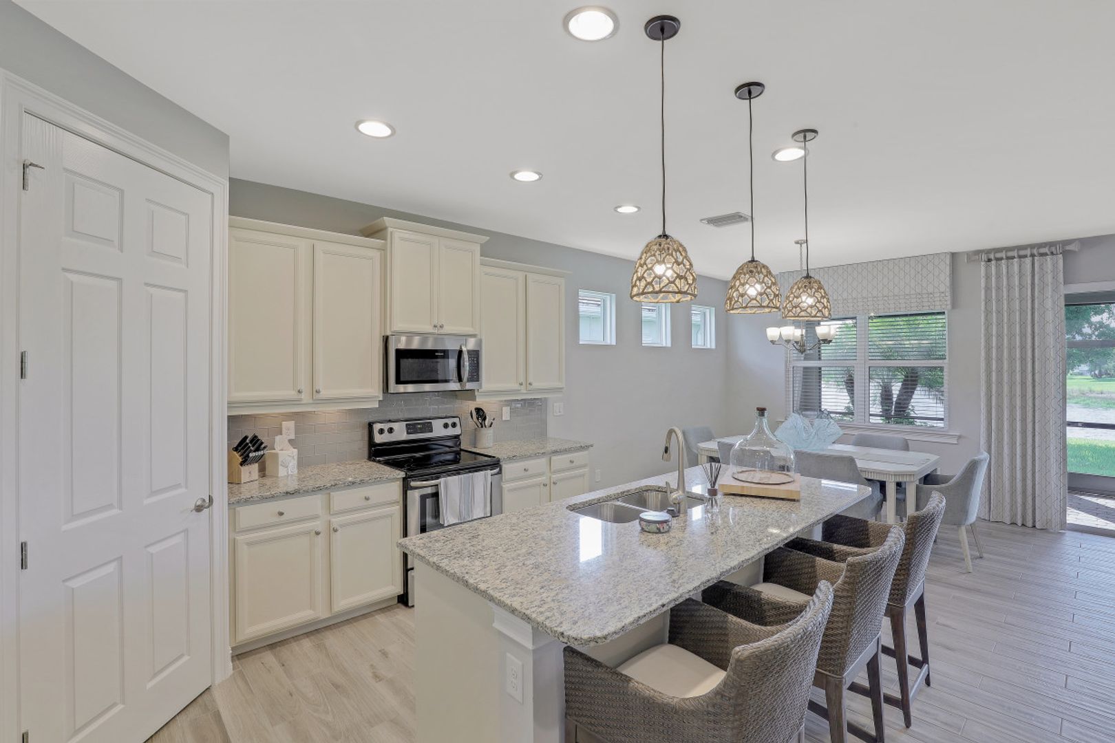 This is the one you’ve been waiting for. Immaculate, upgraded and move-in ready Delray model with long lake views! Open and spacious floor plan boasts 4 bedrooms, 2 full bathrooms, 2 car attached garage, tons of storage and a beautiful large outdoor lanai with pavers. The kitchen includes stainless appliances, quality crafted cabinetry with under cabinet lighting, walk-in pantry and solid surface countertops. Enjoy the Owners suite with Southeast facing lake views and upgrades throughout. Large pie shaped lot increases the yard and open space between the neighboring homes. Plenty of room to add your custom in-ground swimming pool or take the short stroll to incredible community amenities including the coveted Island Club, resort-style pool with waterfall, Tiki bar and Latitudes café on the picturesque 125-acre private lake. 24 hr guard gate, activities director, 22 lakes, nature preserves, rowing lane, boat ramp, fitness center, bocce ball, tennis and pickle ball courts, beach volleyball, electric boats, Kontiki Island, stand-up paddle boards, kayaks and canoes, 2 dog parks, miles of walking/biking paths and children’s play area! Great location and property that will not last long.