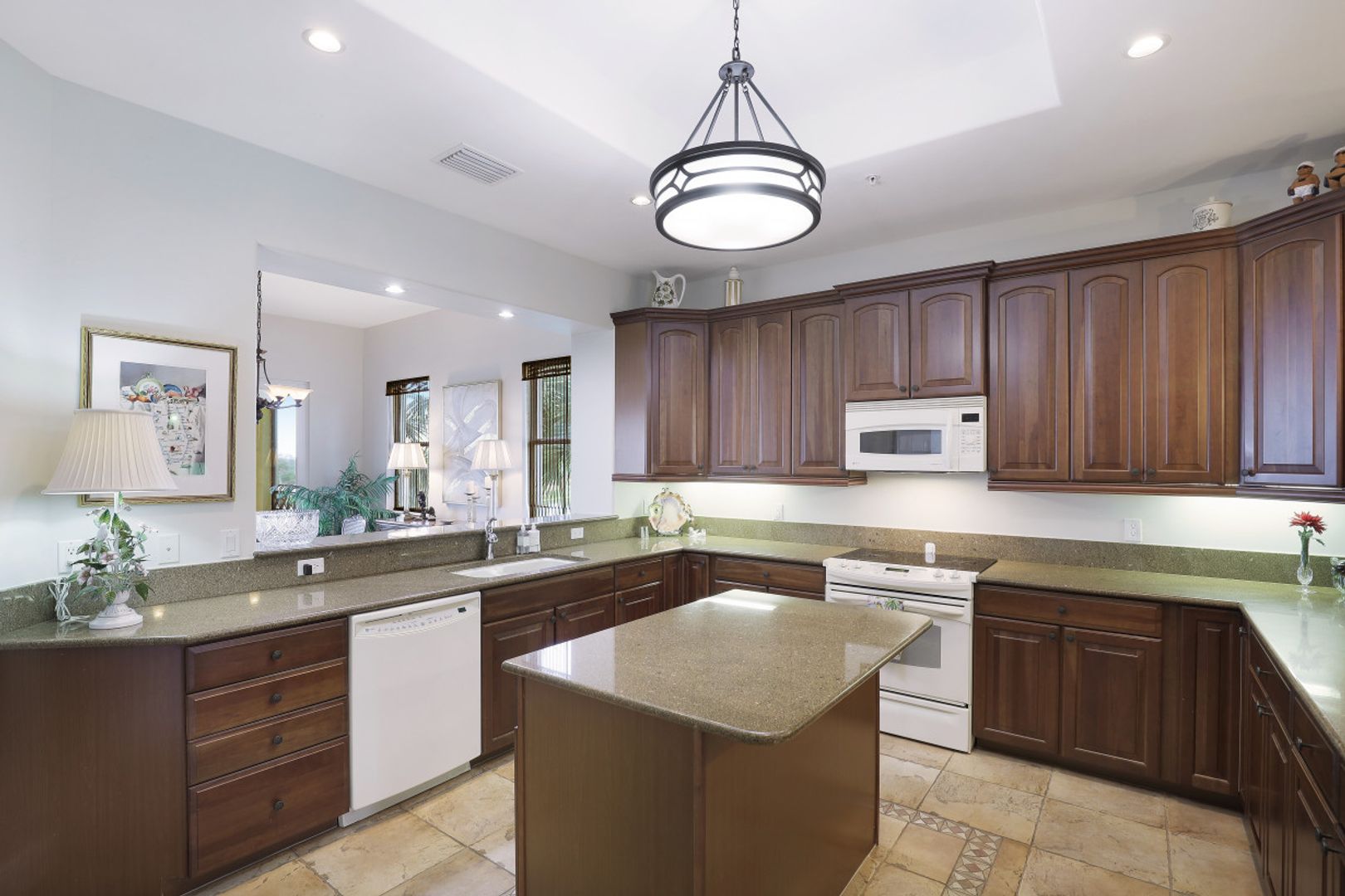 POST CARD VIEWS OF THE GOLF COURSE, WATER AND SUNSETS COME WITH THIS FABULOUS MAINTENANCE FREE 2463 SQ. FT. AC, 3/2.1 RESIDENCE WITH 2 CAR ATTACHED GARAGE. HUGE SCREENED AND TILED REAR LANAI FOR ENTERTAINING WITH GENEROUS SIZE OPEN TILED SUNDECK PLUS TILED AND SCREENED STREET SIDE LANAI WITH FRENCH DOORS. 10’ CEILINGS, 8’ DOORS, IMPACT GLASS AND SLIDERS THRU-OUT, GRANITE, JACUZZI, FULL WALL OF BOOKSHELVES WITH TV AND MORE. 2 FOYERS, SOUGHT AFTER OPEN FLOOR PLAN WITH LIVING ROOM, DINING ROOM AND FAMILY ROOM. HUGE KITCHEN WITH 2 EATING BARS AND AN ABUNDANCE OF CABINETRY AND LARGE ISLAND. 2 GUEST BEDROOMS ENJOY CARPET – THE REMAINDER ALL TILE!!! TRULY LIVES LIKE A HOME.