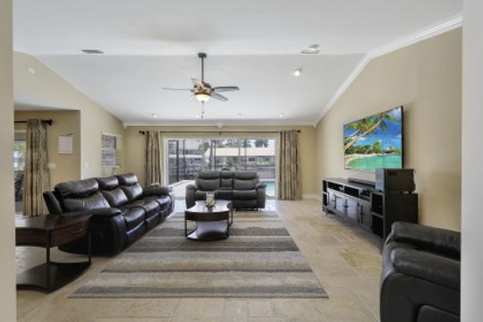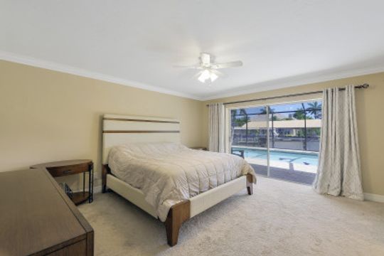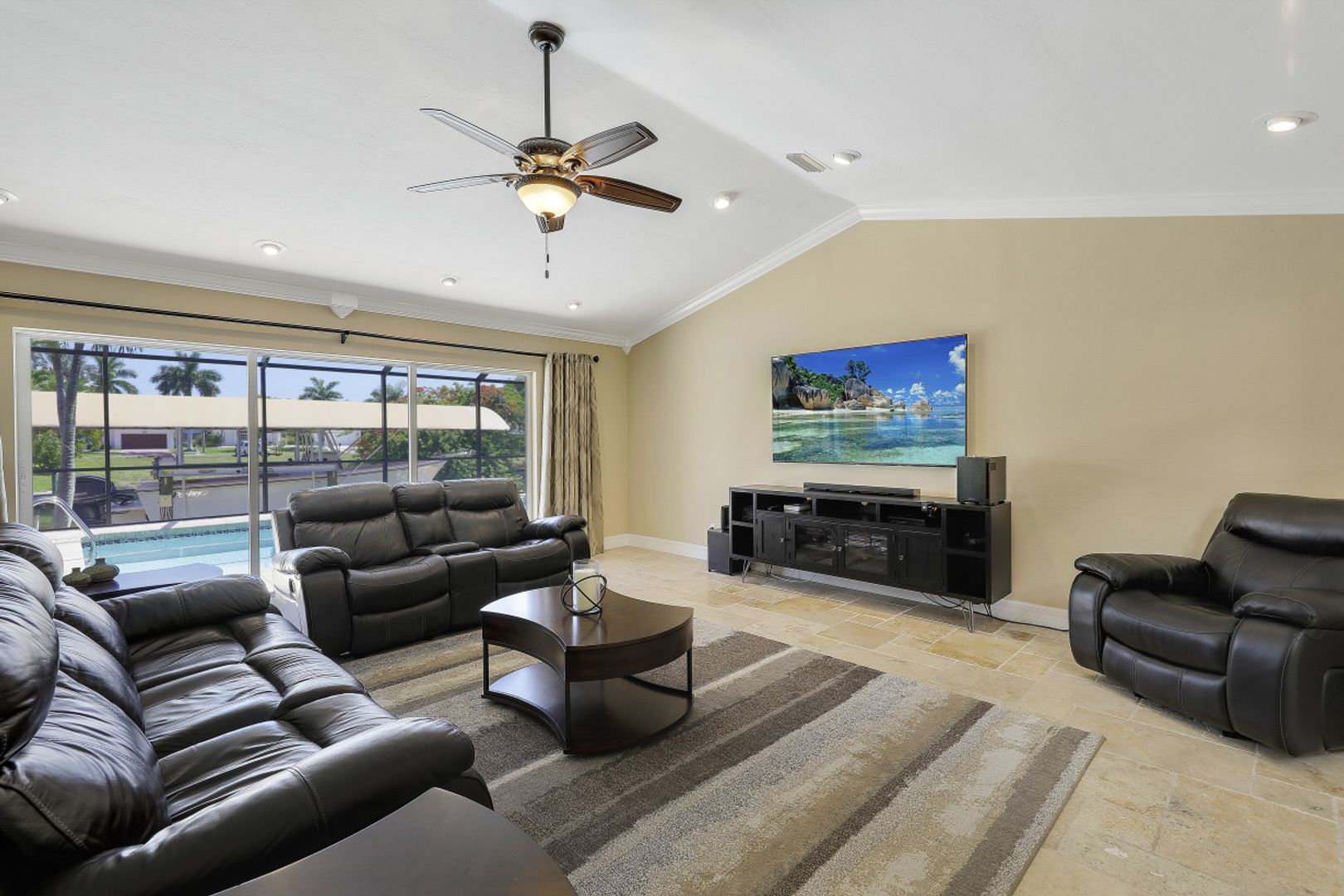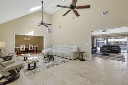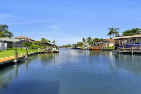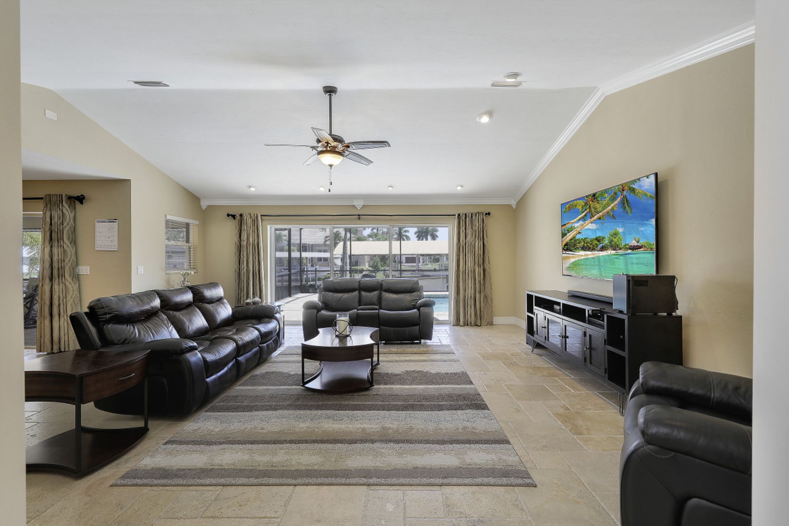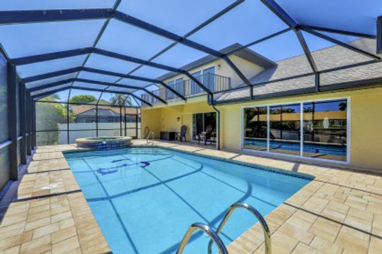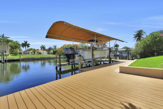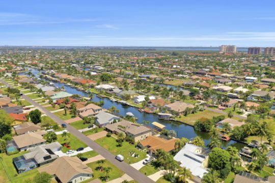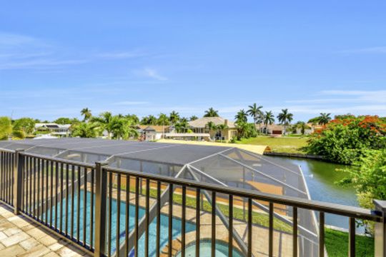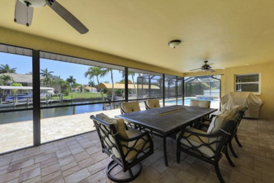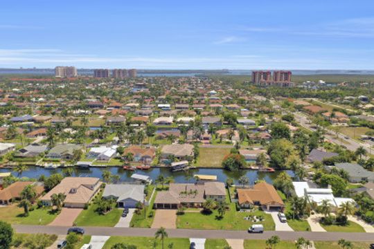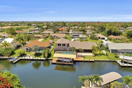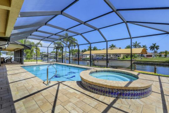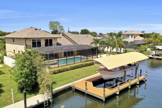 SOUTHERN EXPOSURE, SAILBOAT ACCESS, TRIPLE LOT w/120 ft of DEEP WATER FRONTAGE - no bridges, no lock, no power lines - just MINUTES to open water! Better than new & BIG w/over 3800 sq ft of living space under air w/5 BR, 3.5 BA & 6 car garage (33x36ft) tastefully remodeled over the past 5 years. BRAND NEW PLUMBING & FIXTURES just this year! 1st floor master BR features dual sinks, jetted tub, seamless shower door & closet big enough for ALL! Upstairs bonus room w/wet bar & observation balcony is perfect for entertaining! Other features include wood cabinets & granite in kitchen & baths; travertine & Brazilian cherry flooring dining/bonus areas; travertine floor & tile in baths; 2 newer A/C units; PLUS NEWER roof, soffit & fascia, wind rated garage doors, paver sun deck AND composite dock w/captians walk & 16k lb boat lift! Outdoor living at its best w/large heated pool & spa, HUGE covered/screened lanai as well as paver sun deck w/so many possibilities! Perfect for large family, vacationers, 2nd home, part time or full time! Enjoy everything that SW FL has to offer - boat, sail, kayak, SUP, jet ski, fish or simply take a dip in your private oasis!