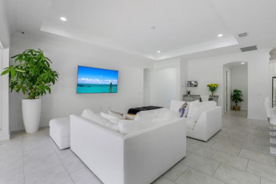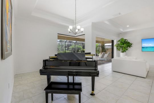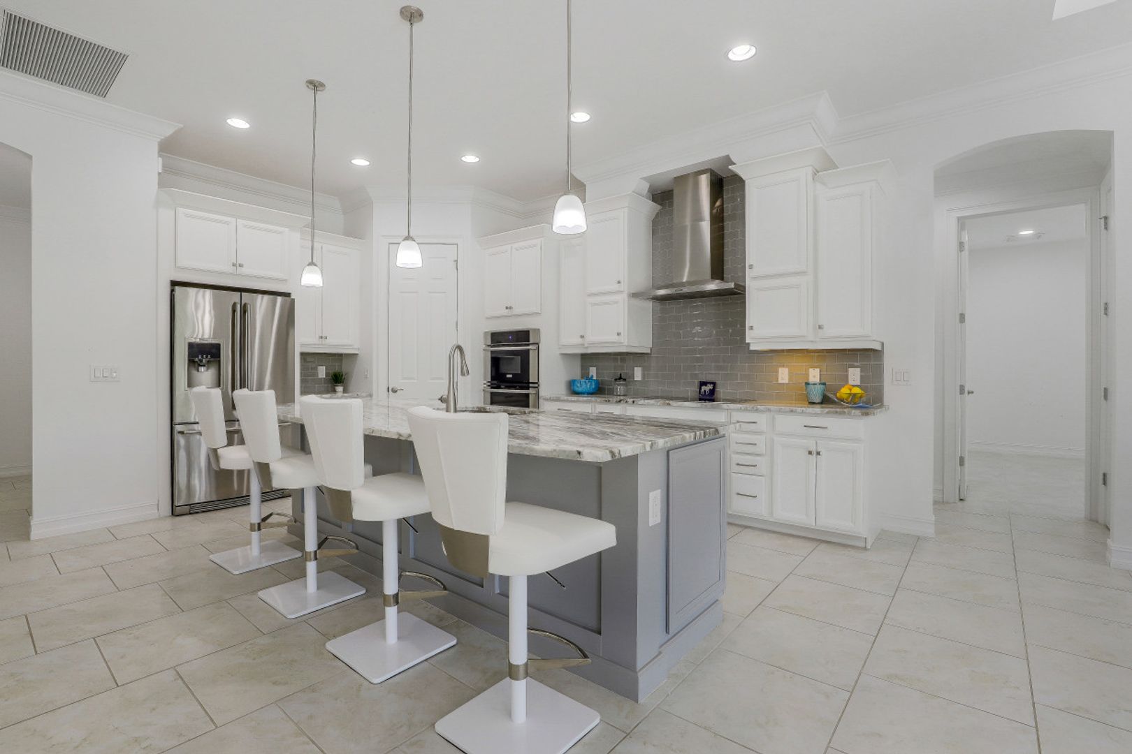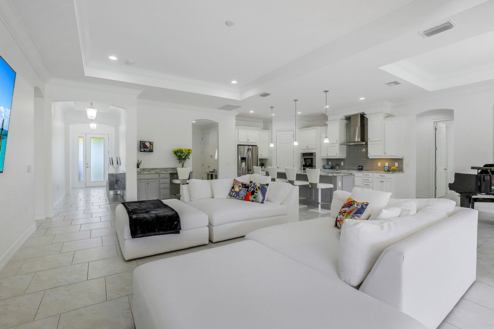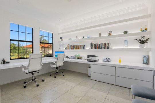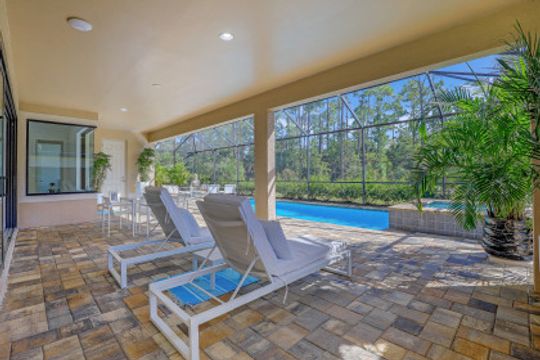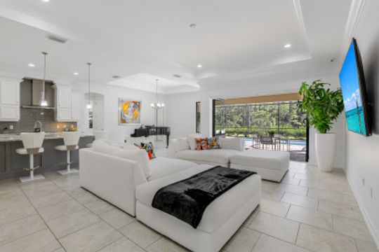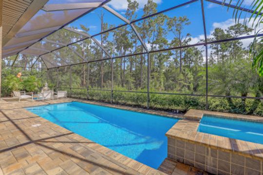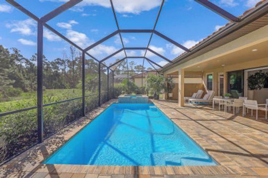 A livable work of art, this modern home is spectacular & luxurious while also intimate & inviting. Surrounded by a quiet preserve & two golf courses, the home savors a sublime sense of privacy with a tranquil connection to nature. A professionally sealed paver driveway leads to a 3-car garage, with lush landscaping inviting you home. The clean-lined interiors usher you into a world of soothing sight lines & seamless indoor/outdoor living. Built with luminous open spaces, the floor plan reveals a great room with a magnificent gourmet kitchen & walls of glass that unite with the screened pool/spa with the huge backyard & preserve at its back. This four-bedroom plus den home offers luxuriously spacious rooms & baths, along with a master retreat that flows out to the lanai & offers a spa-like ensuite. A fabulous home office completes this immaculate layout with expansive built-ins. This is a fully updated internet home complete w/1GB Speed & 4 WiFi access points to ensure 1GB speed is achieved throughout the entire house!