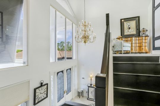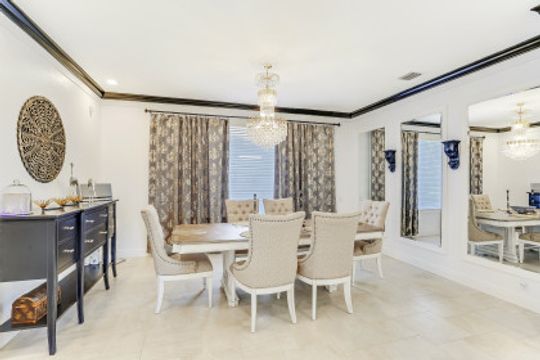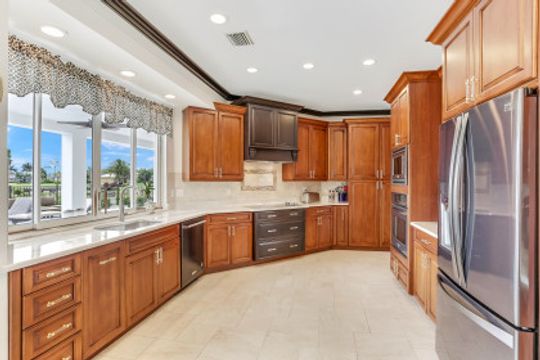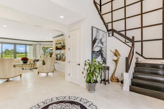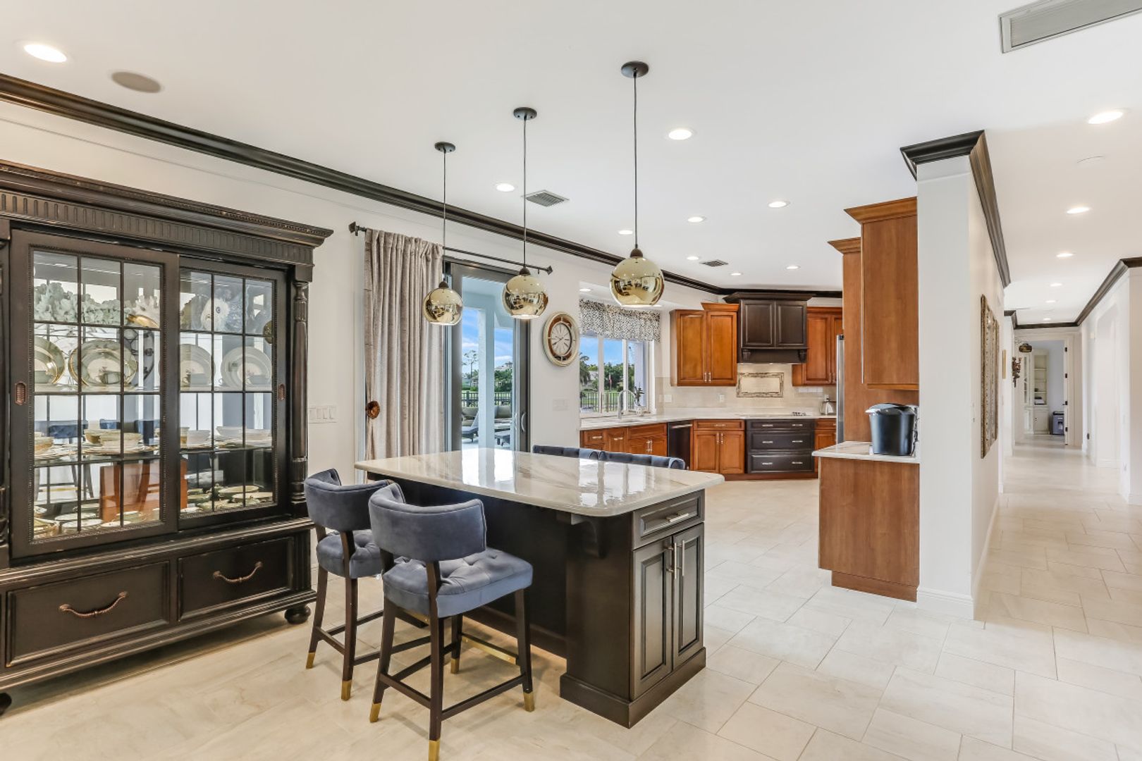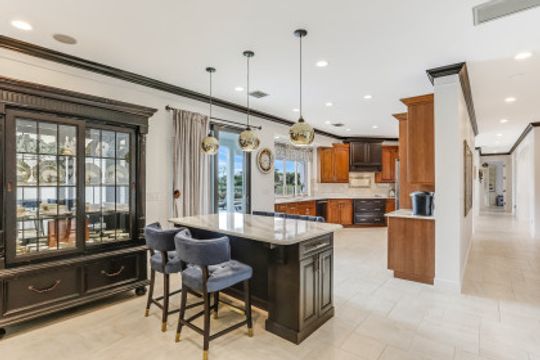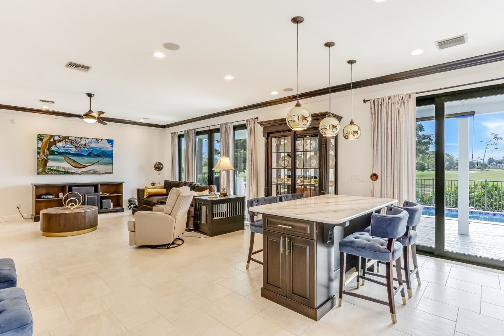Stunning architectural details pair with the finest upgrades in this luxurious recently renovated home with the best water and golf course views in Fiddlesticks. Your family will love the custom house with more than 4,600 sq. ft. of a functional floor plan with 5-bedrooms, 4-bathrooms, and a 4-car porcelain tiled garage. You can enjoy everyday casual private living along with the pleasure of entertaining your friends and guests. The first floor features a grand foyer with a staircase, formal living and dining areas, kitchen with an island open to the family room, and two bedrooms, one of which is an office. A private elevator will take you from the family room to the second-floor spacious master suite with a sitting area, and a separate guest quarter with two bedrooms, a living room, and a kitchenette. The home features porcelain tiles throughout, custom kitchen cabinets and countertops, solid wood interior doors, Trex decking balcony, and a large saltwater pool with rare 8 feet depth. Fiddlesticks Country Club offers everything you need to live in Paradise at your fingertips – 36 holes of a private championship golf course, tennis courts, and abundant social life.