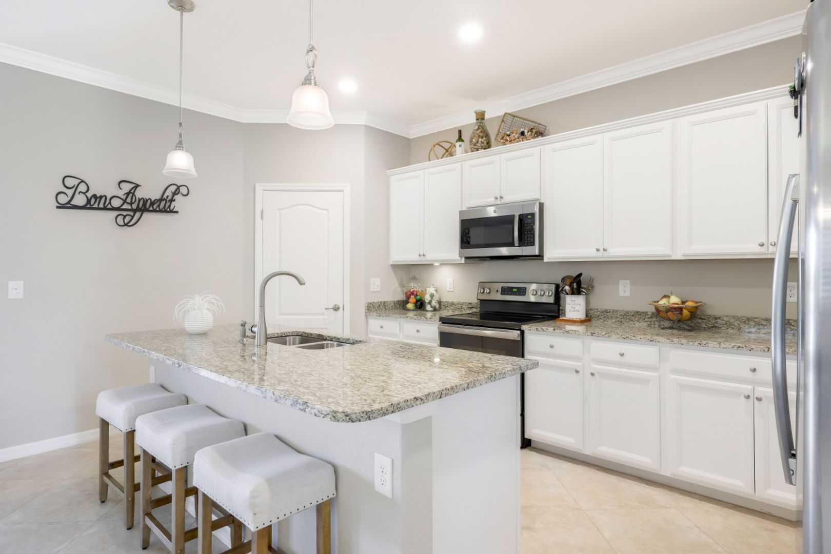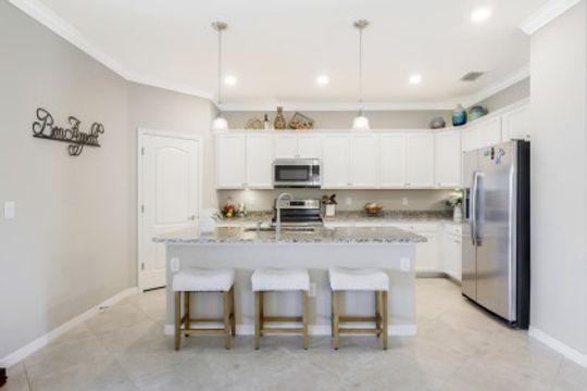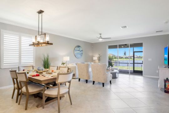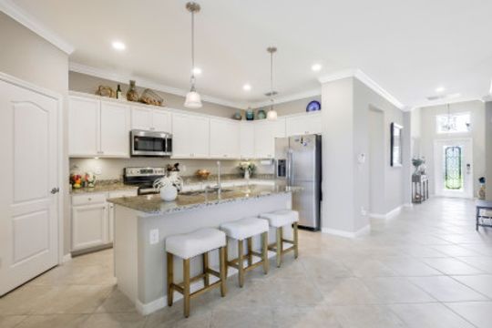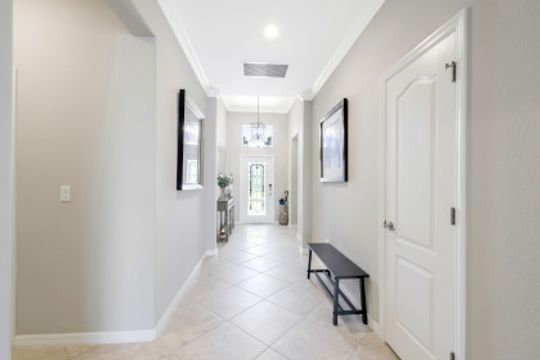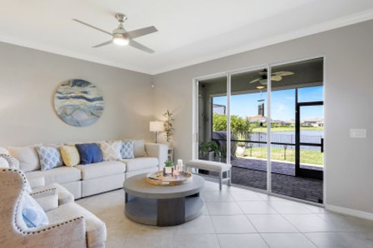 Welcome home to this beautifully appointed and meticulously kept home located in the quiet, gated community of Mirada! Mirada is located minutes away from our beautiful beaches, entertainment, hospitals, and more! This property has one of the most desired floor plans boasting 4 spacious bedrooms, 3 bathrooms and wide open living area for the family to enjoy! This home has more than enough space to accommodate you, your family or overnight guests. This home features an open concept kitchen with granite countertops, stainless steel appliances and quaint breakfast bar with views of the sparkling lake. Off of the spacious family room, your Master Suite offers you private views of the lake, spacious closets and master bathroom with dual counter space, soaking tub and tiled walk-in shower. Additional upgrades include crown molding throughout the home, high ceilings, diagonally laid light neutral toned tile flooring in the main living areas, Upgraded lighting and fixtures, and covered lanai space with a large fenced-in yard, with plenty of room to add a pool. It’s the perfect setting to enjoy your amazing view. This home is move-in ready and waiting to be enjoyed!