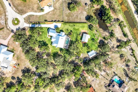Absolutely Stunning!!! Exquisite highly sought-after Briarcliff custom-built beauty & guest house with stunning upgrades & sophisticated modern farmhouse design, featuring your own private sanctuary! Tucked away on a fully fenced 2.23 acres with a remote & keypad access private gate, you will be captivated by the unparalleled design & location! The main house offers 4 bedrooms, 2.5 bathrooms and an oversized 2-car garage with an abundance of space and lustrous lighting that illuminates every room. Luxury finishes that will catch your eye the minute you enter! Expansive open living concept lined with wide planked ¾” French oak engineered hardwoods throughout! Stunning gourmet chef’s kitchen with striking stacked cabinetry, soaring ceilings, shiplap walls, leathered solid granite, SS appliances, large island & custom walk-in pantry! Motion-controlled sliders create an easy flow between the stylish indoors & great outdoors! Captivating saltwater pool, spa & lanai overlooking manicured landscaping! Large primary suite with lavish spa-like ensuite bath! Spacious walk-in closets! Custom details continue in the 1 bed/1 bath plus separate laundry room guest house with views of the pond! Large custom shed! City water! No HOA! No FLOOD ZONE! Horses OK! Just to name a few of the custom upgrades: Top of the line Cummins back-up whole house generator with a 1000 gallon propane tank installed in 2022! Two separate AC units and de-humidifier for the main house! Top of the line tankless instant hot water heater with learn mode! Whole house filter in garage! Metal roof with 5/8" plywood roof sheeting! Impact resistant windows & doors throughout! New concrete driveway 01/2023! 230' deep irrigation well 11/2019 & inground sprinkler system! A TRUE GEM!!!