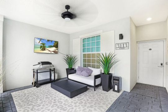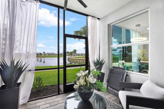 Beautiful art inspired Florida sunset views from this like new Veranda overlooking the golf course. Enjoy comfortable mornings from the East facing front, screened veranda as well! This beautiful home features 2 bedrooms and a den and offers the great room floor plan, The Diangelo II. With a large center island, perfect for entertaining, formal dining and a large living room all sharing the spectacular West views. The gracious master bedroom offers 2 walk-in closets and a spacious master bath with dual sinks and large walk-in shower. The guest bedroom and bath are perfectly private, and the Den offers a wonderful flex space. With the veranda, you own your private garage for your vehicle and Florida toys, Amenity rich, Babcock National is a fantastic community, Bundled Golf on the Gordon Lewis designed 18 hole course complete with aqua range and putting green, tennis at 6 lighted har tru courts and a pro shop where you will find all you need for both sports!, tropical pool with waterfall, lap lanes and spa. Relax in the sauna, get fit in the fitness center and meet neighbors and friends at the outdoor bar/grill!
