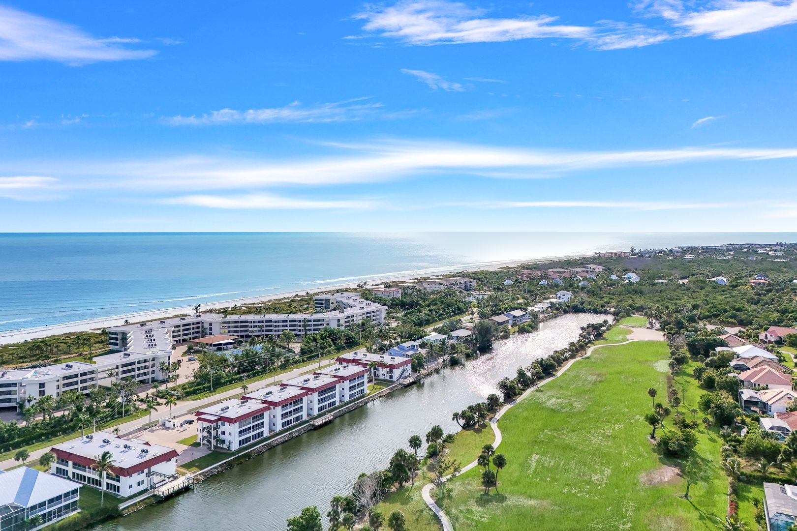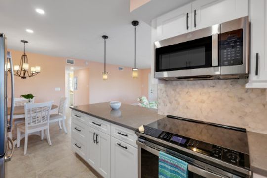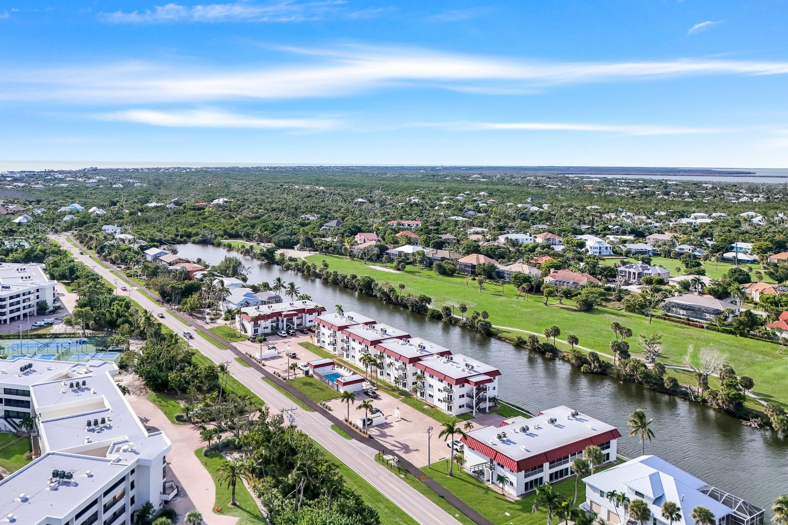 Enjoy stunning sunsets and wildlife viewing on the Sanibel River from this prime 2 bedroom, 2 bath corner unit. Conveniently located on Middle Gulf Drive, it is just a short walk down a deeded path to the incomparable, world-famous beaches of Sanibel Island. This unit is completely remodeled with new tile and charming plantation shutters throughout. All windows and sliders are updated with the latest impact glass. Kitchen is furnished with high end appliances, induction stove, large farmhouse sink, pass through window to lanai and plenty of storage. Laundry room is equipped with new Speed Queen washer and dryer. Both baths have walk-in showers with sliding glass doors. This is partially furnished for your immediate move-in convenience. The master bedroom is furnished with a lovely king bedroom suite, while the second bedroom is ready to be furnished to suit your individual needs. Seller is offering 6 months of condo fees to be credited to buyer at closing. Interior photos taken prior to installation of Plantation Shutters.