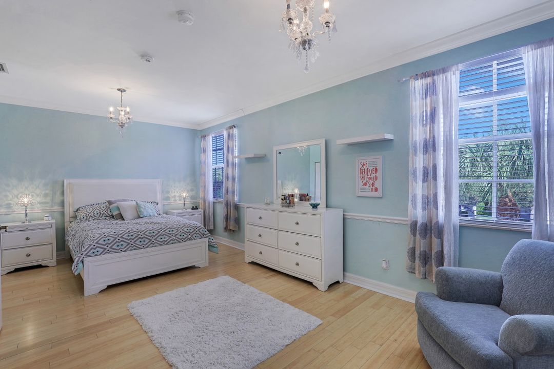 This immaculate "Monaco" is the perfect family home with 3 Bedrooms (2 being master suites), 2.5 baths, extra wide two car garage, and 2452 sq ft under air. When you step inside, you will find a light and bright floorplan with Formal Living & Dining Rooms and Family Room open to the updated Kitchen including newer SS Appliances, 42" Solid Wood Cabinets, Extended Cabinet Pantry, and Quartz countertops. Upstairs, you will find rich wood floors that run throughout all 3 bedrooms. Outside, the extended covered area is ideal for Al Fresco dining and ample room for a pool. The large second master suite could be split to make an additional bedroom making the home a total of 4 bedrooms. NEW ROOF IN PROCESS! Just walking distance to "Club at Saturnia Grande" which offers resort pool, hot tub, lap pool, kiddie pool, saunas, fitness center, billiards room, ball room, 4 tennis courts, basketball court, and more! HOA fees include Landscaping, Irrigation, Clubhouse Amenities, Alarm Monitoring, Cable TV, Internet, and Phone! A RATED SCHOOLS!