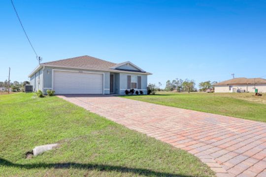 Don't miss out on this AMAZING 3BR, 2BA, 2 car garage home with just under 1400 sqft of living space was built in 2020 and feels BRAND NEW! DON'T WAIT TO BUILD - this home is ready now! Clean as a whistle and cute as a button home features great room floor plan, split bedrooms for privacy, tile in main areas and carpet in the bedrooms. The owners suite boasts a large walk-in closet with built-in shelving. The large bathroom shower is constructed with classic and elegant marble and seamless shower door. Spare bedrooms are spacious and bright. Kitchen features stainless steel appliances and plenty of cabinet space overlooking the dining room. Landscaping is well maintained with a stylish cobblestone driveway adding to the curb appeal. Backyard fun includes a large covered and screened in lanai, fire pit and plenty of room for a pool. Nestled in rapidly developing area close To Gator Circle & Del Prado, with quick Access To Us 41 And I-75. Cape Coral is just a short drive to white sandy beaches, world class fishing, boating, tubing & jet skiing! Schedule your private tour!