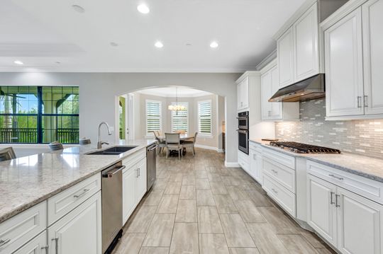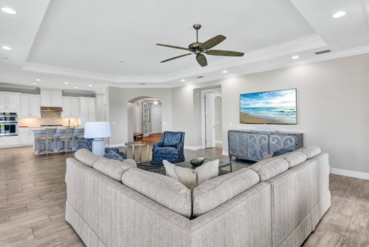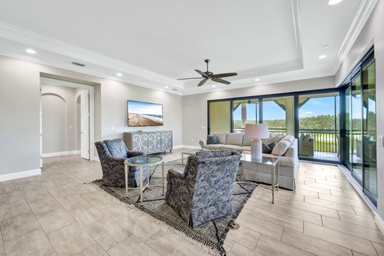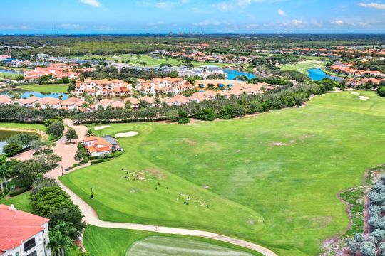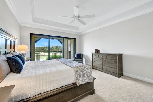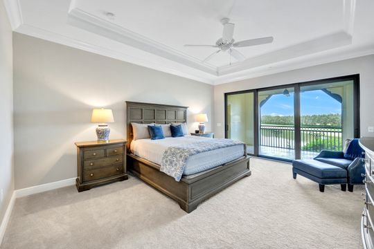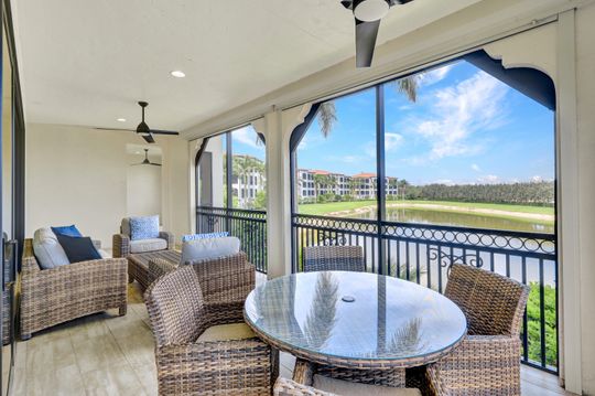 This beautiful WCI built condo provides long lake views from the expansive 700 SF screened loggia, privacy from other buildings and easy access to the Carrara pool, in ground spa, gas grills (for Carrara residents and their guests) and the golf practice range! The tasteful, neutral decor is the perfect backdrop for any type of furnishings. Peace of mind can be found with the electric hurricane/privacy screens on all screened areas. Wide wood plantation shutters on the windows, custom closets, wood plank flooring in the den, a built in wine and beverage cooler, a recirculating hot water heater, two deeded parking places in the garage, a private storage unit and a natural gas cooktop are further advantages to this lock and leave lifestyle! The award winning clubhouse, the newly renovated golf course (scheduled to re-open late October) originally designed by Greg Norman and Pete Dye, four new pickle ball courts, a new expansive bar area, a very short wait list for golf, Mercedes Beach Runner, tennis, fitness center facilities and two dog parks make this vibrant community a must see!