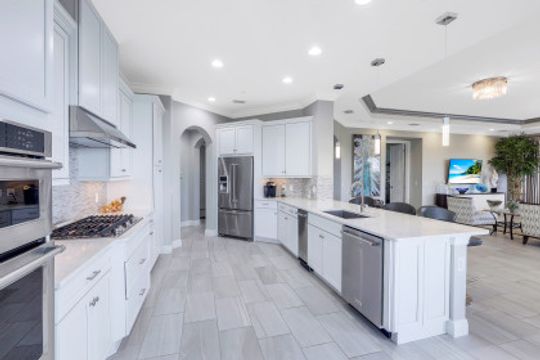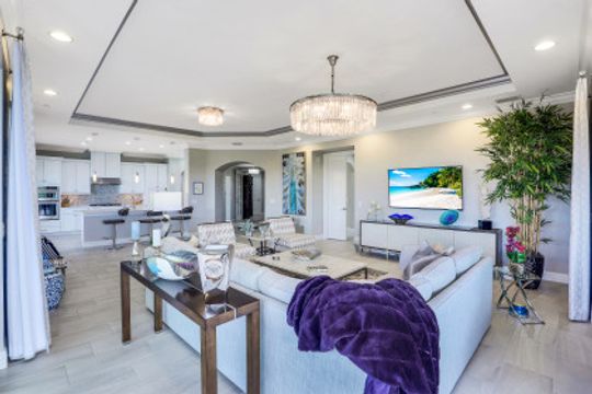 UNOBSTRUCTED VIEWS from this corner residence! WALK downstairs to the resort style pool spa and grill. This is truly a unique property inside on beautiful Talis Park