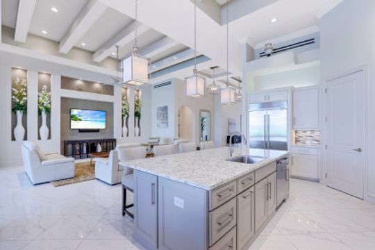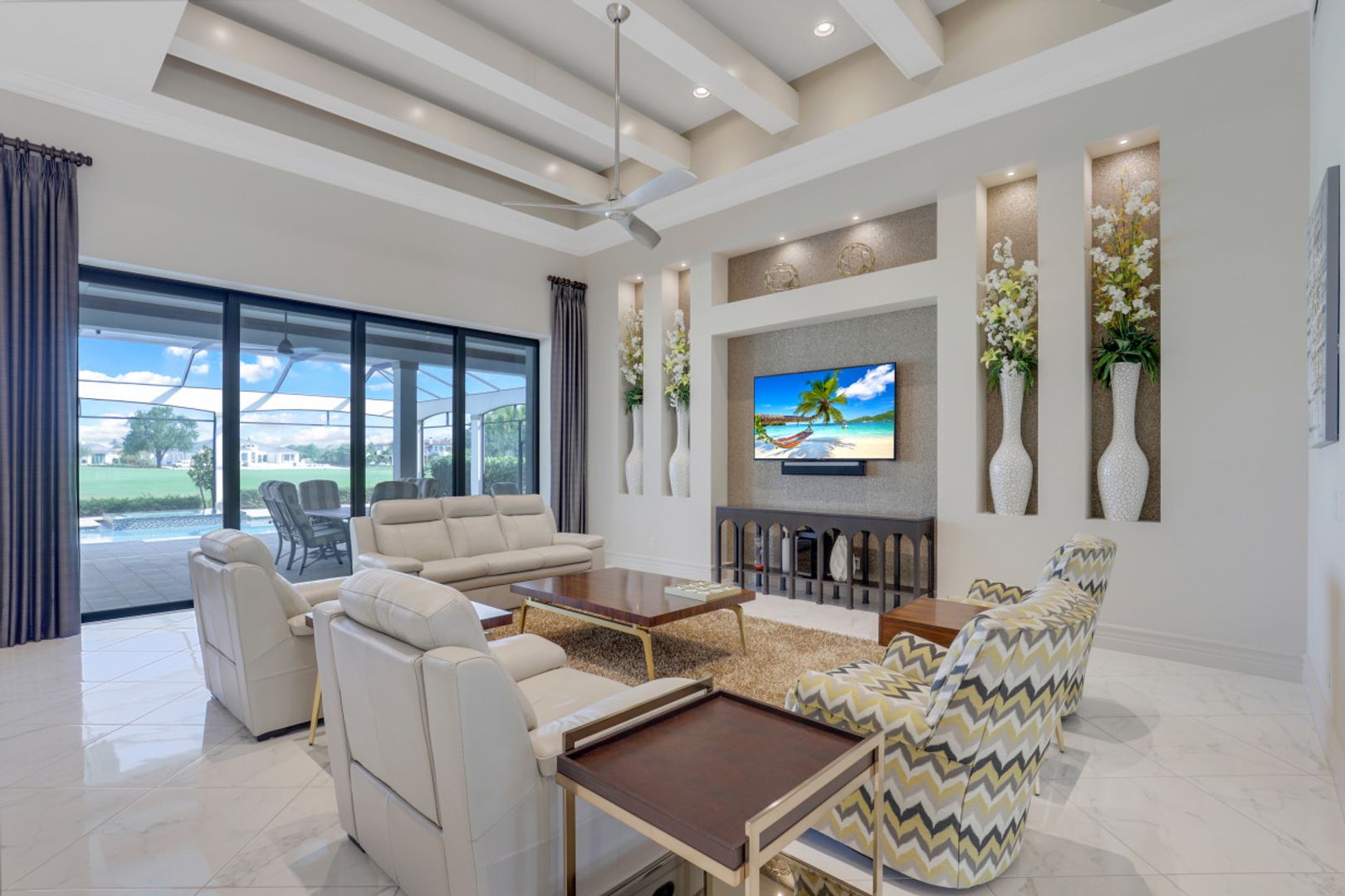 REDUCED $300,000 TURNKEY FURNISHED! This stunning Casa Arianna by Harbourside Custom Homes is available for immediate possession. Greeted by 16ft soaring ceilings as you enter the homes gallery entry hallway, this luxury residence offers 4BR's, 5BA's, 2 Home Offices and 3998sqft of unparalleled finishes throughout. Complete with formal dining room, wet bar, a gourmet kitchen with large island and breakfast nook with beautiful views of the pool deck. Expansive outdoor living provides entertainment space with summer kitchen, fireplace and sweeping views of the 9th fairway designed by Greg Norman and Pete Dye. The course at Talis Park is regarded as one of the nation’s premier golf experiences while encompassing some of the finest amenities Naples has to offer.