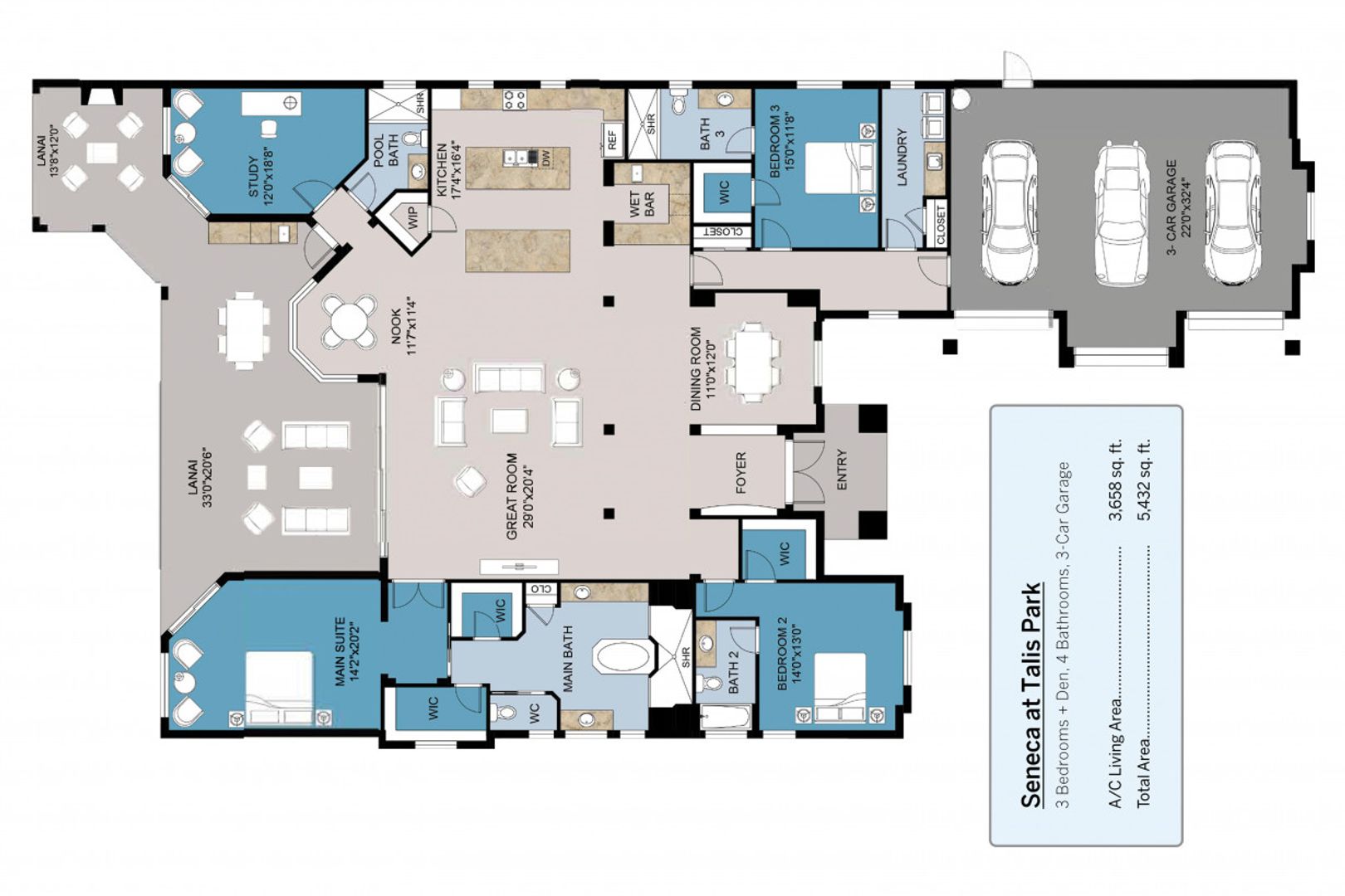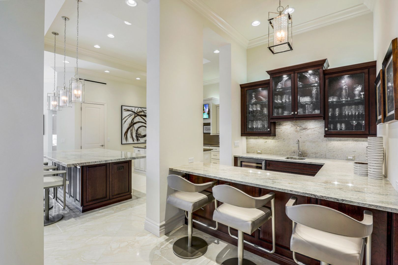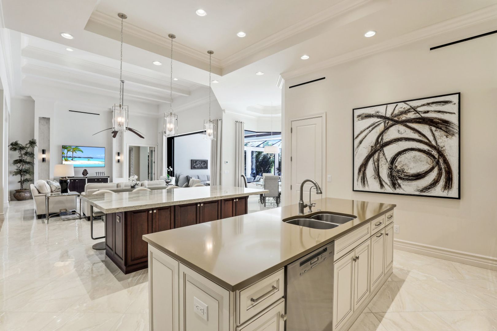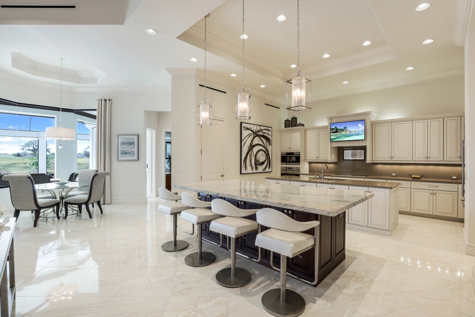Live the serenity and understated elegance of Talis Park: A West of I-75 Naples 5-star, Luxury-designed Norman/Dye Golf and Tennis Resort Community. This custom 2016 build contemporary pool/spa home offers 5432 square feet under roof, plus 1800 square feet of luxury pool/spa/deck, a 3-car garage, and sunny south facing golf and lake views. The elegant foyer reveals a stunning living room with 14-foot ceilings, two dining areas, a chefs’ kitchen with Wolf and Sub-Zero appliances, two Islands and a wet bar, all offering generous storage and seating. The floor plan flows spaciously from room to room, featuring impact windows and pocketed sliders opening to the pool/spa deck with ample seating, outdoor kitchen, fireplace and electric hurricane shades. Experience the superb Talis Park dining/entertainment venues, resort/lap pools, tennis, pickleball, bocce, state-of-the-art fitness/wellness/spa, beach shuttle, dog park, beautiful oak lined streets & more. Ranked by Golf Digest as one of Florida’s top 20 courses, Talis Park is one of the nation’s premier golf experiences, symbolizing the rare beauty and quality of the entire community.