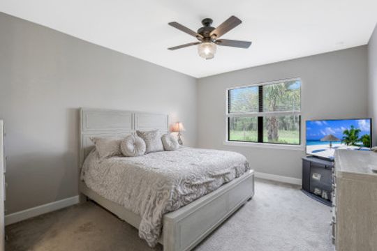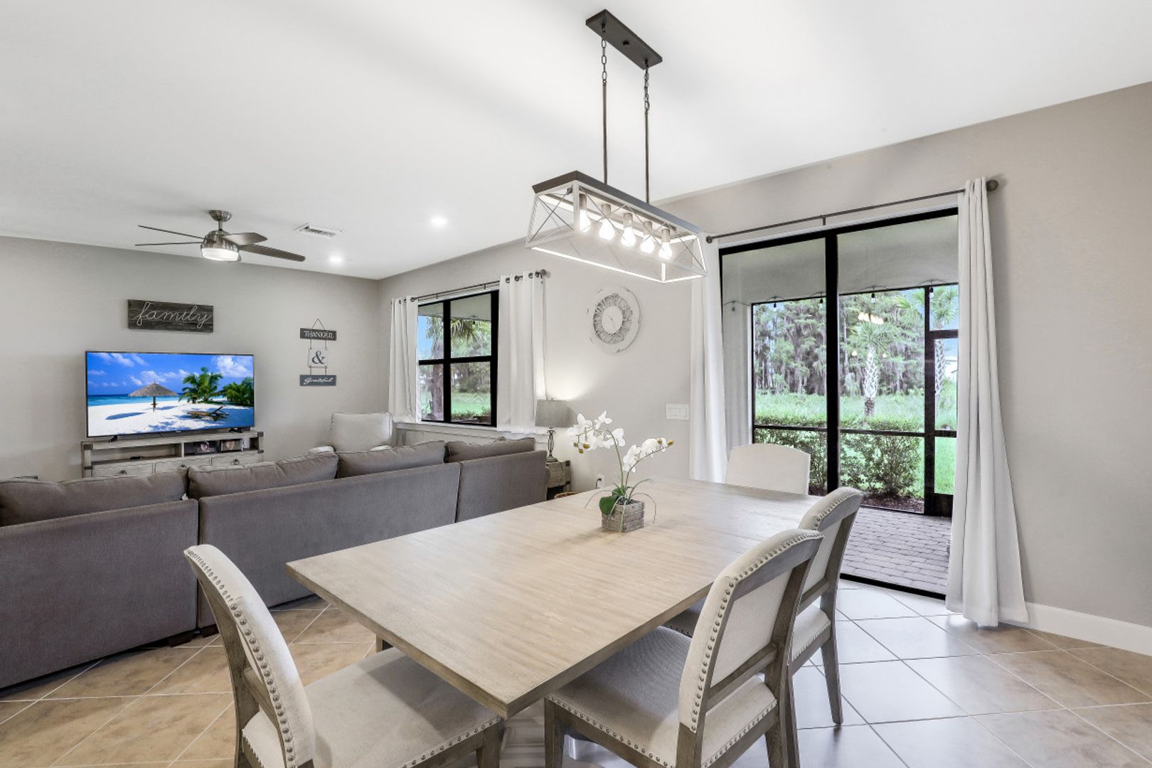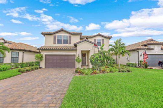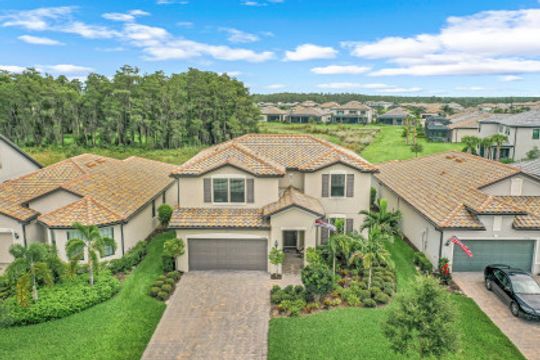 WONDERFUL FAMILY HOME IN THE PLACE AT CORKSCREW WITH SCENIC WOODED VIEWS... This "Citrus Grove" floorplan by Pulte offers 4 Bedrooms + Den + Loft, 2 Full Baths, Powder Bath, 2 Car Garage with 4' Extension, and 2860sf living area. Extra long driveway easily holds 4 large vehicles or 6 smaller cars. Huge backyard provides ample space for a Custom Pool/Spa, a perimeter fence, or BOTH! Once through the front door, there is a nice sized Den with tile flooring and Glass French Doors off of the Foyer. Further down the Foyer Hall is the Powder Bath and Laundry with extra cabinets and folding area. The Open Concept, White Cabinet Kitchen has Granite Tops and Stainless Appliances. Master Bedroom/Bath is on the 1st Floor. The extended Covered Lanai is shaded all day thanks to the comfortable Northern rear exposure. Upstairs you'll find an expansive Loft, along with 3 Guest Bedrooms and a Full Bath. Amenities at The Place include: Resort Pool w/100' Waterslide and Spa, Indoor Restaurant, Bourbon Bar, Cafe, Outdoor Bar, Fitness Center, Movement Studio, Tennis, Pickleball, Bocce, Basketball, Playground, Dog Park, Child watch, Spa Services, (2) Manned Guard Gates. NEW PUBLIX COMING SOON!
