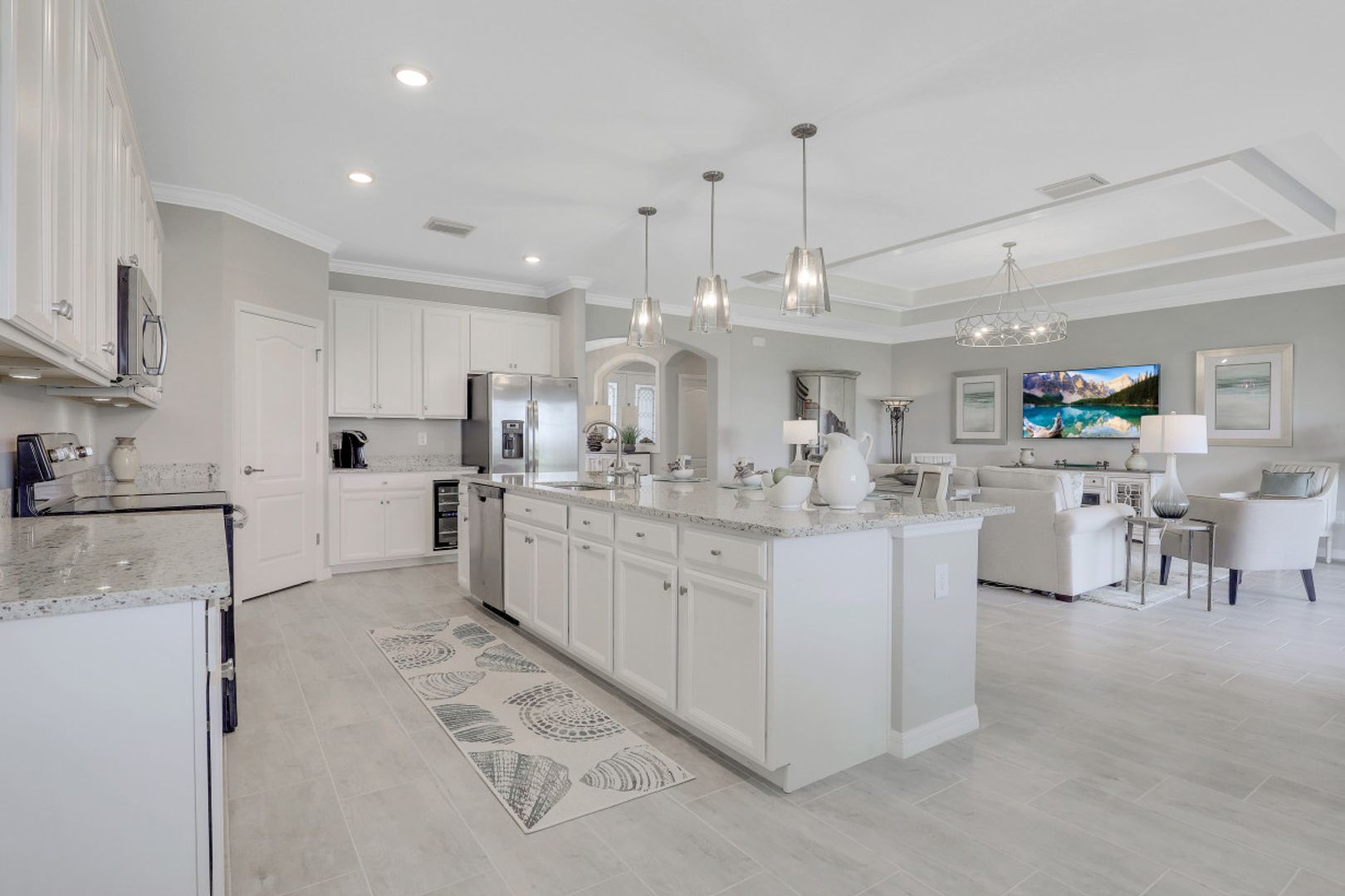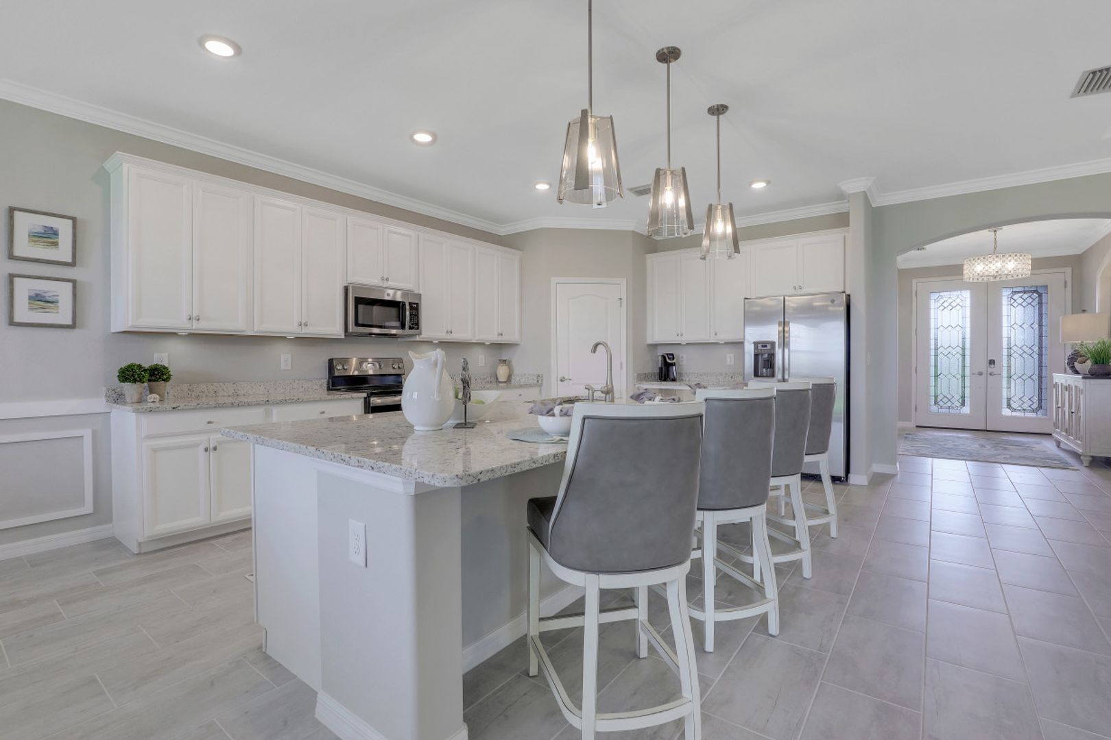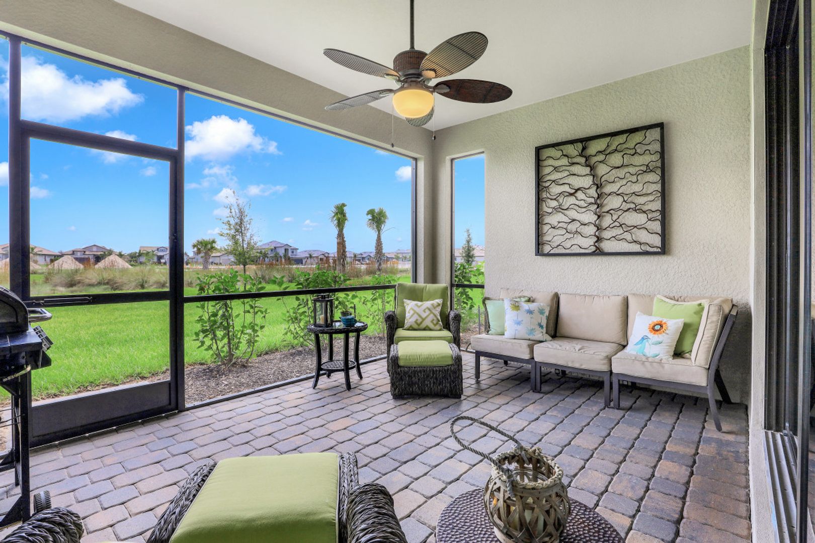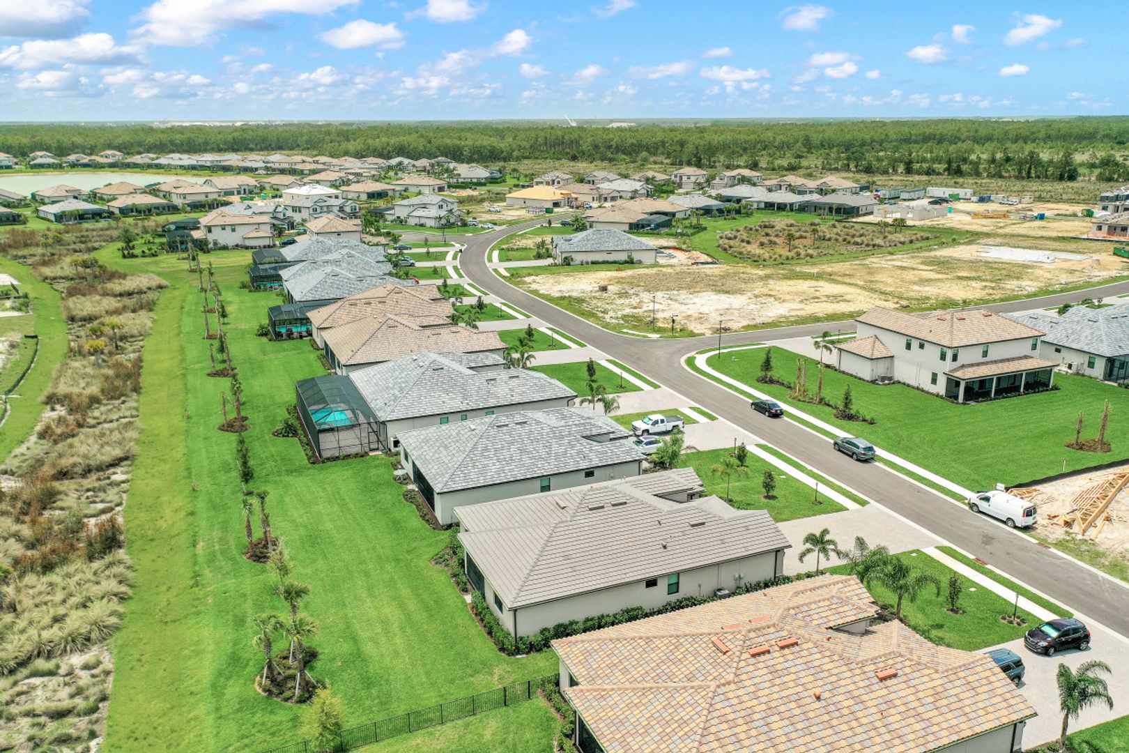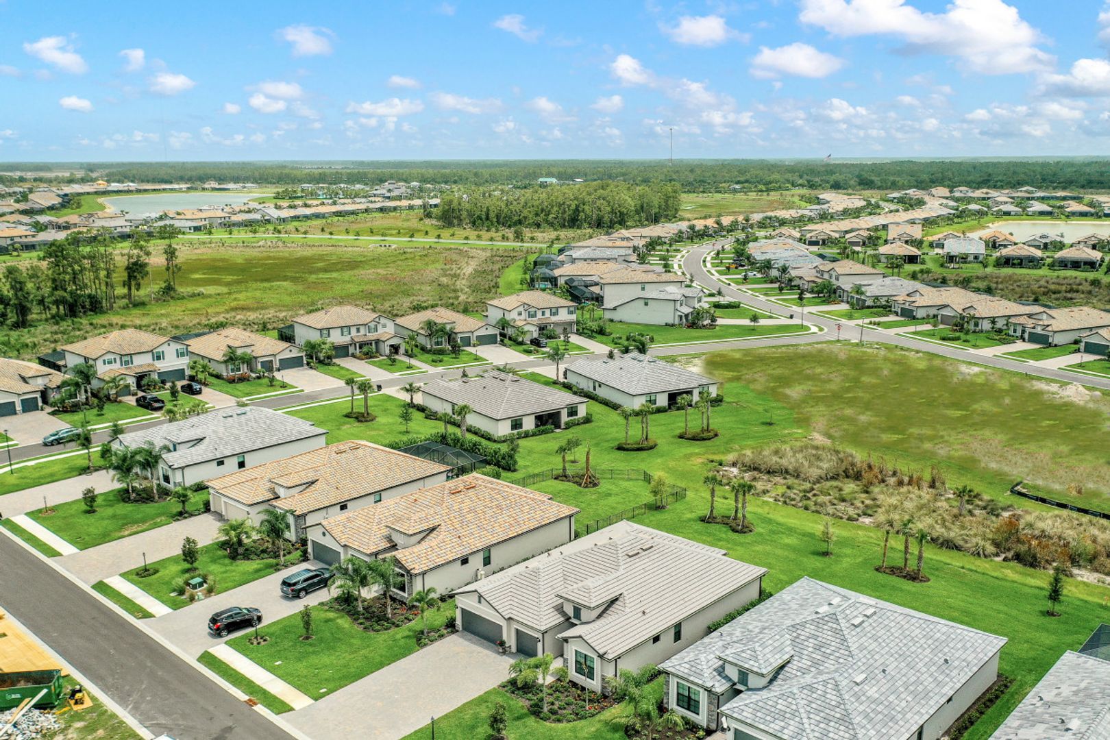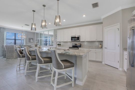 BEAUTIFULLY FINISHED SUMMERVILLE IN THE PLACE AT CORKSCREW WITH SOUTHERN REAR EXPOSURE... This recently built residence offers 3 Bedrooms + Den, 3 Full Baths, 3 Car Garage, with just under 2500sf living area. The Extra Deep Homesite (approx 185' from curb to back of the property line) with SSW Rear Exposure offers marsh/landscaped views with a huge backyard... perfect for a Custom pool/spa (Sun on the pool deck all day), a perimeter fence, or BOTH! Builder Options include: Plank Tile throughout the home (except for 2 guest bedrooms); White Cabinetry, Crown Molding, Granite Tops. Features installed after closing: Custom Woodwork Trim Detail in Greatroom/Master Bedroom Tray Ceilings; Mirrored Wall in Dining Area, High-end Light Fixtures in Foyer, Greatroom, Dining Room, and Pendants; Plank Tile in Master Bedroom and Den, Custom Window Treatments and Motorized Shades on Sliders, Landscape lighting. Amenities at The Place include: Resort Pool w/100' Waterslide and Spa, Indoor Restaurant, Bourbon Bar, Cafe, Outdoor Bar, Fitness Center, Movement Studio, Tennis, Pickleball, Bocce, Basketball, Playground, Dog Park, Child watch, Spa Services, (2) Manned Guard Gates. NEW PUBLIX COMING SOON!