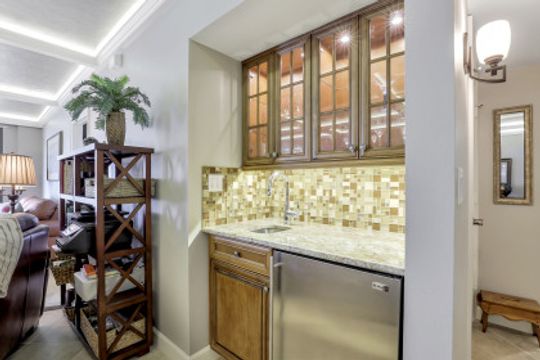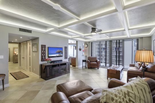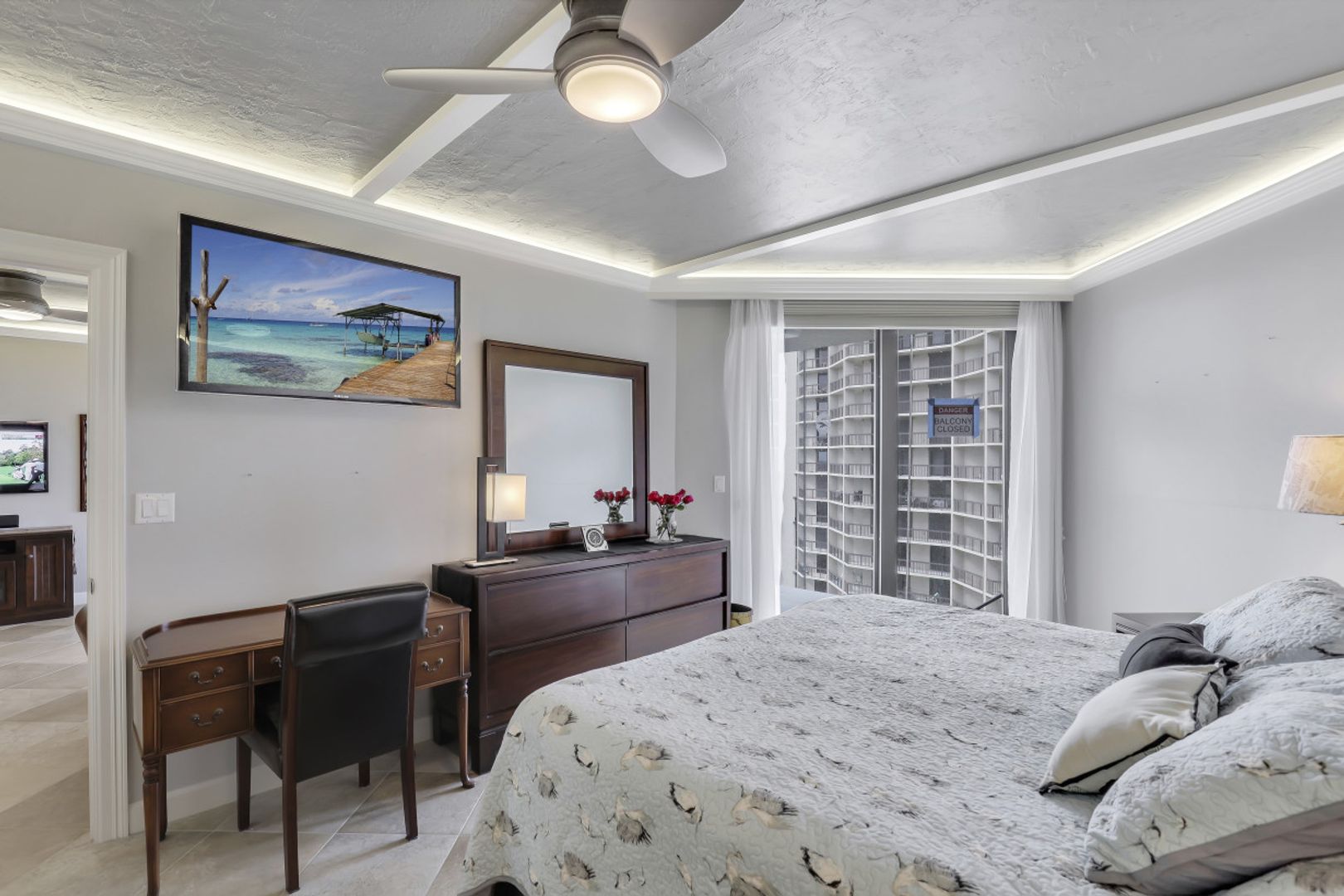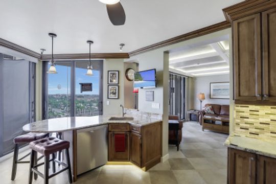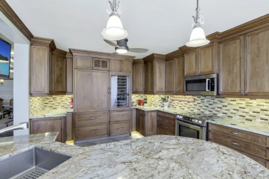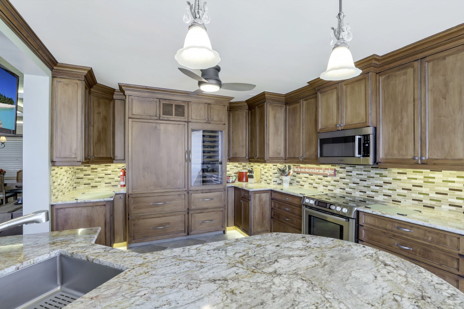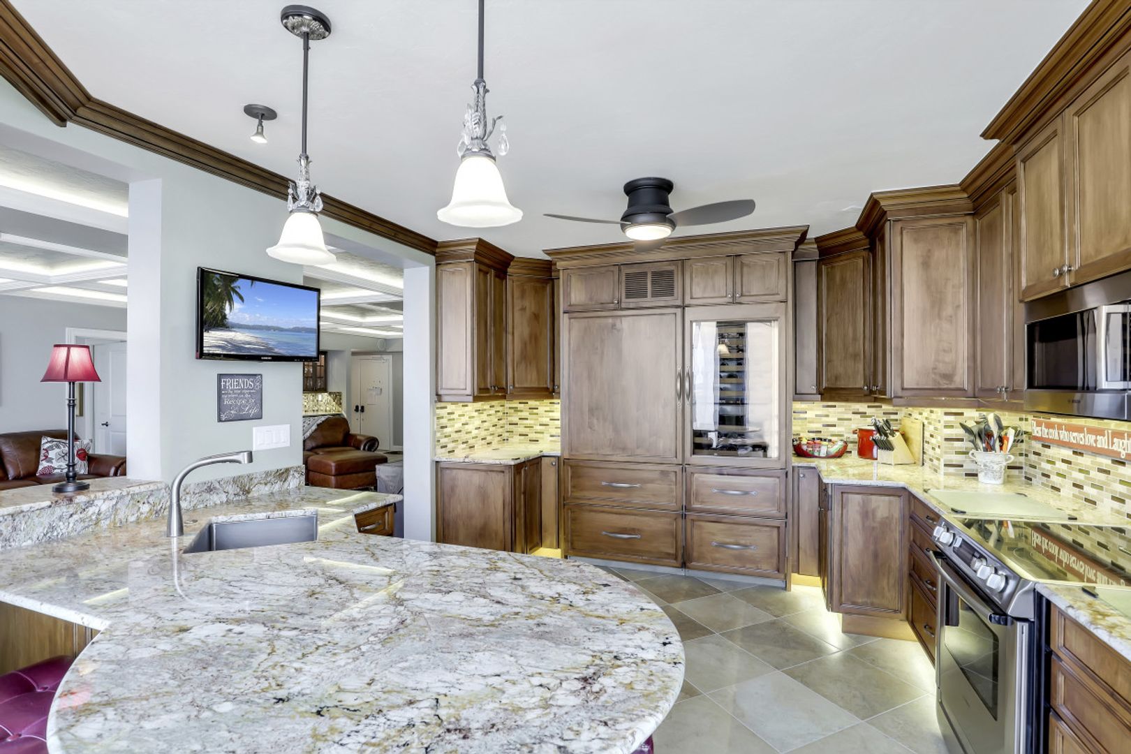 No expense spared for this exquisitely & extensively remodeled, move-in ready, 3 bedroom unit in Prince on the 8th floor showcasing stunning sunsets and beach views. Upon entry you are captivated by the elegant decorating from the stunning wood beam ceiling with distinctive accent lighting to the marble flooring. The redesigned, gourmet kitchen features high-end stainless appliances, maple cabinets, granite counter tops, built-in wine cooler, freezer/refrigerator drawers, glass tile back splash, and wall & entry open to living room.