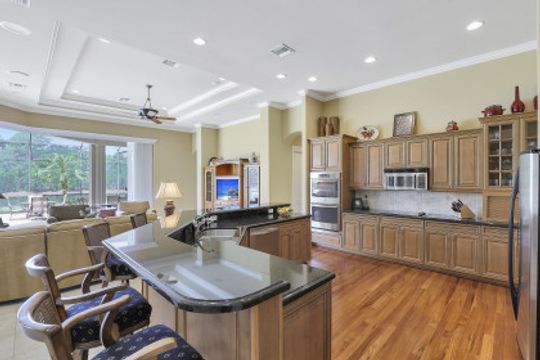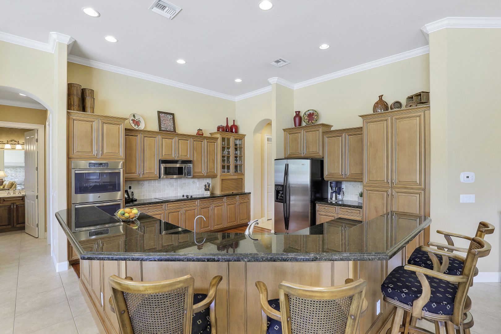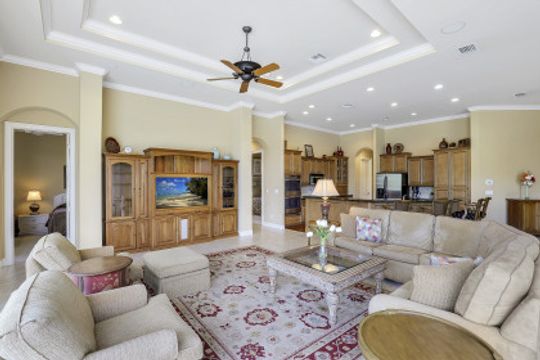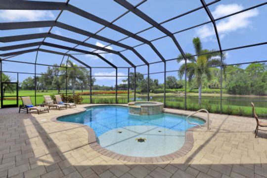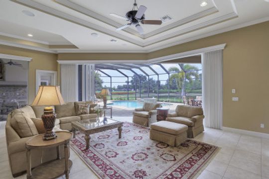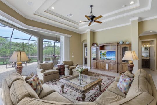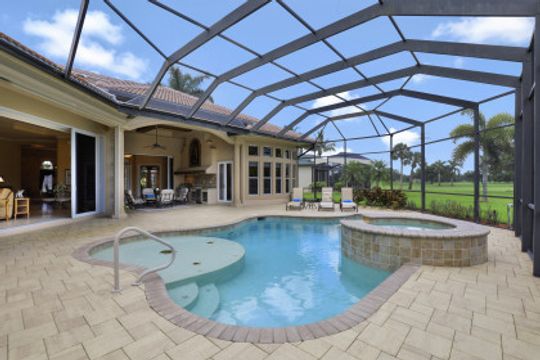 An over-sized lakefront lot with southwest golf course views awaits at this prime location within Castlewood, an enclave of 33 single-family residences at Imperial Golf Estates. Custom-built with an open-plan great room design, the ranch-style home spans 3100 sq. ft. under air. Disappearing sliding glass doors open to an expansive lanai incl. poolside kitchen. The large 30 ft. pool with sun-shelf and spa are solar and electric heated. Whether for a family BBQ, cocktails with friends, or simply some fun in the sun ~ this is Florida indoor-outdoor living at its best. Light-filled interiors showcase spacious rooms with high ceilings, exquisite tray detail and crown molding. Open spaces flow seamlessly, enhanced by neutral palette tile floors set on the diagonal. The granite-topped kitchen features stainless appliances incl. double ovens and an XL walk-in pantry. Upgrades range from impact-grade hurricane shutters, to new A/C systems, to a private well for landscape irrigation. The brand new roof is the icing on the cake. Social and golf memberships at Imperial Golf Club are optional. Vanderbilt Beach and Barefoot Beach are merely minutes away. Enjoy the vibrancy of North Naples with all its shopping, dining and entertaining venues just outside the gates.