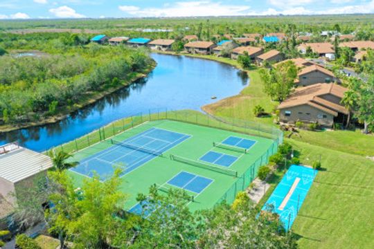 Well built elevated home in great location priced to sell quickly. Would make a good investment property, seasonal home or young family just starting out. 2 Bedroom plus a lofted office-den area with plenty of room to spread out. Many upgrades & improvement including Custom wood flooring 4 camera security system, $8k master bedroom/bath remodel, Newer HVAC system, mini split AC for lofted space, Motion activated exterior lighting, 5 new ceiling fans, New hurricane garage door, new appliances, new garbage disposal, new touch Delta kitchen faucet, new toilets, new $15k storage cabinet with custom stainless steel ladder, new in-wall Bowers & Wilkens surround sound system, kitchen pot rack with tear-drop lighting, $5k Master bedroom closet upgrade, new gutters, newer washer & dryer. Village Park amenities include: Pool, tennis, pickleball, fitness, spa, shuffle board, billiards & more all overlooking a beautiful lake and preserve. Located near shopping, restaurants, beaches, golf courses & only a 20 minute drive from RSW airport. Storm damage to this home was minimal & will be a great place to call home is Southwest Florida. Check out the Virtual tour link to see how awesome this home & amenities are. THIS LISTING WILL NOT LAST LONG. GET YOUR OFFERS IN TODAY.