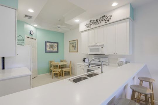 Penthouse 3 Bedroom Gulf Access condo in the gated community of Island Cove. Turnkey Furnished this open layout unit features tray ceilings throughout, an eat in kitchen nook, spacious screened lanai overlooking the direct access canal and mangroves. Owners suite shares direct access to the screened balcony with serene views and private bath with dual sinks and step in shower. Two additional guest rooms and full bath available. Pets are welcome with approval, no size limit. Boating access is 10 min with no bridges. Boat Slips are available for purchase. Island Cove is a gated resort community with lush landscaping, clubhouse, heated pool & spa, pickle ball & tennis courts. Located just minutes from the water and shopping, dining, parks, nightlife and more gives you the best of both worlds...convenience and fun in the sun living!