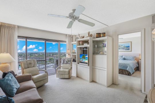 Fully furnished beachfront condo. Enjoy beautiful Gulf, Island, and South Beach views from your large private balcony. Granite Counter-tops, Pantry, and spacious walk-in closet. Assigned covered carport space with additional storage. Amenities include a Social Room with Kitchen, Pool, Grilling area, Vehicle wash, and Tiki Huts. Tradewinds is an updated building and close to restaurants and shops. Owner has paid to have impact windows and doors installed. All assessments have been paid. Start living the laid-back island life-style you’ve been waiting for.