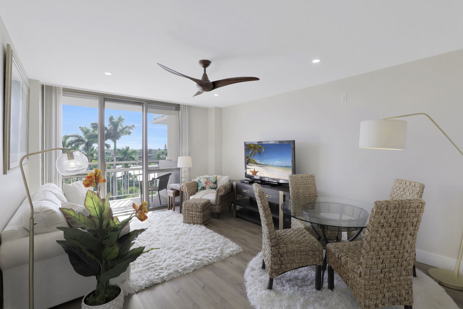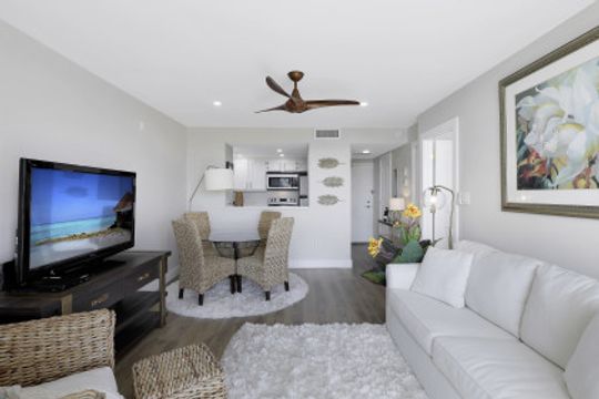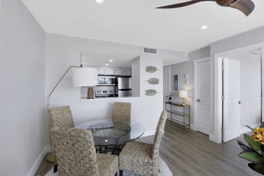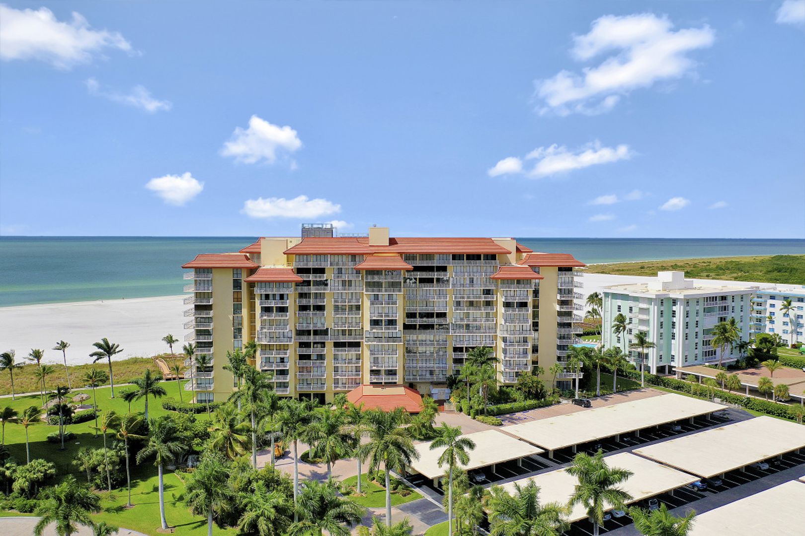 Beautifully updated light and bright nicely furnished beachfront condo offering Island and partial Gulf views from your private balcony. Kitchen comes with stainless appliances, plenty of cabinets and pantry. Gorgeous stone composite wood-like flooring throughout for easy maintenance. Electric updated in 2019. Spacious walk-in closet in master bedroom. Additional storage locker, trash chute, and common laundry facilities on every floor. Assigned covered carport space with extra storage. Amenities include a Social Room with Kitchen, Large heated Pool with grill area, Vehicle wash, Tiki Huts, and private beach access. Tradewinds is a low density updated building with secured lobby and on-site manager. Surrounded by lush tropical landscaping. Impact glass windows and doors installed November 2020 and assessment paid in full by owner. Close to restaurants and shops. Great investment property. This unit is a must see. Start living the island life-style you’ve been waiting for.