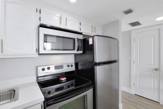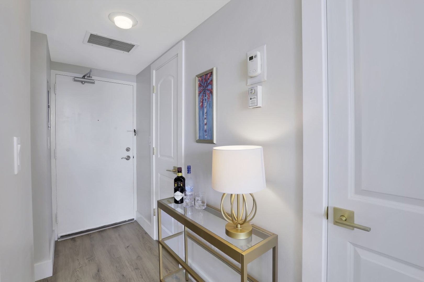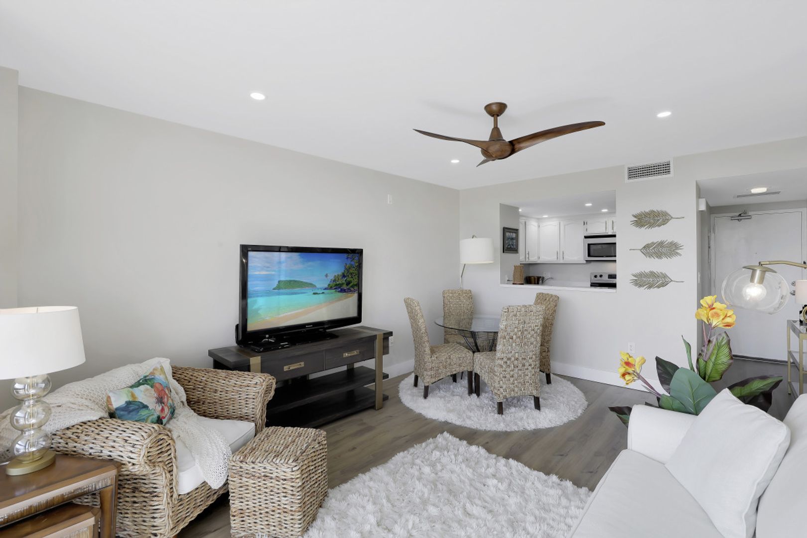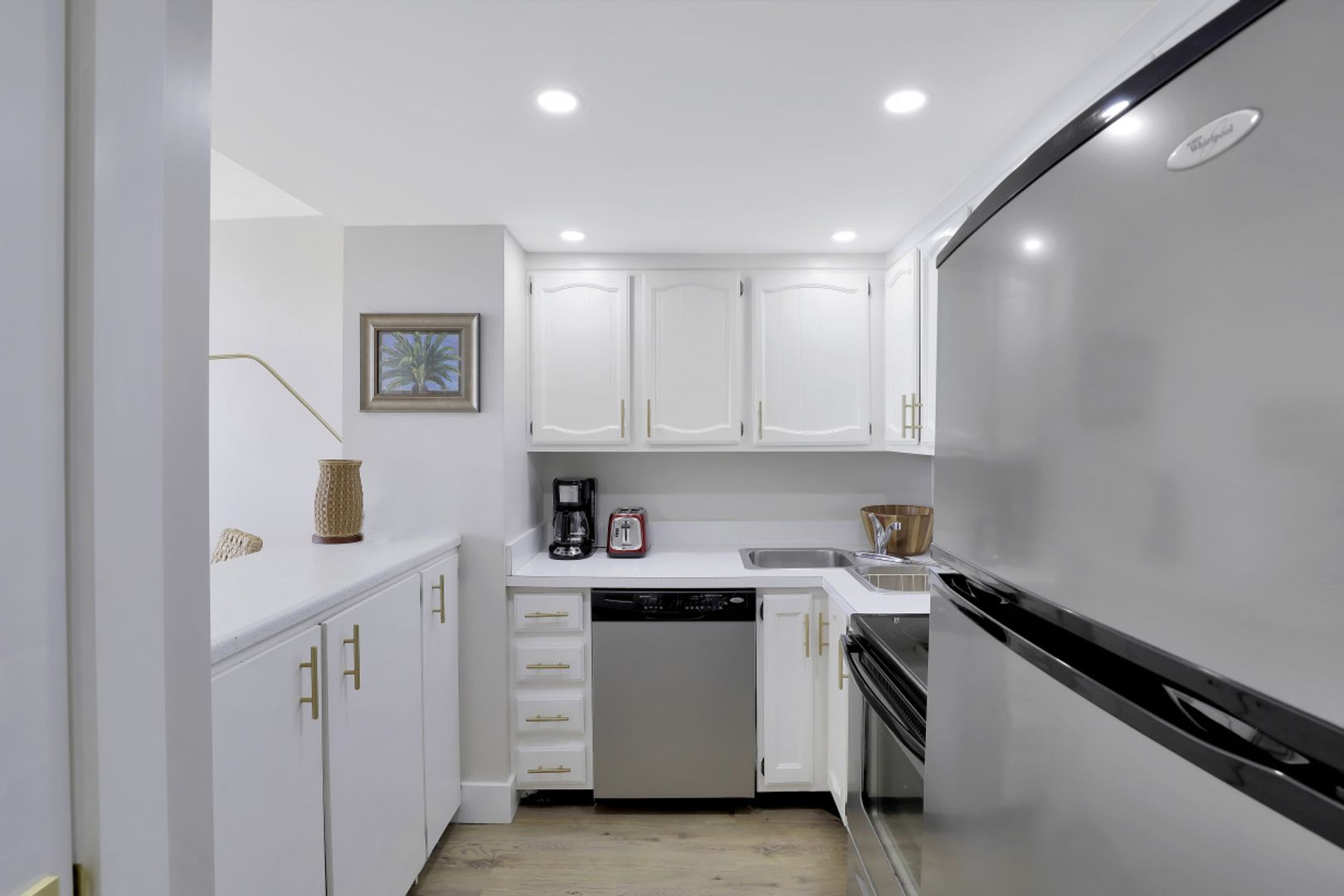 Beautifully updated light and bright nicely furnished beachfront condo offering Island and partial Gulf views from your private balcony. Kitchen comes with stainless appliances, plenty of cabinets and pantry. Gorgeous stone composite wood-like flooring throughout for easy maintenance. Electric updated in 2019. Spacious walk-in closet in master bedroom. Additional storage locker, trash chute, and common laundry facilities on every floor. Assigned covered carport space with extra storage. Amenities include a Social Room with Kitchen, Large heated Pool with grill area, Vehicle wash, Tiki Huts, and private beach access. Tradewinds is a low density updated building with secured lobby and on-site manager. Surrounded by lush tropical landscaping. Impact glass windows and doors installed November 2020 and assessment paid in full by owner. Close to restaurants and shops. Great investment property. This unit is a must see. Start living the island life-style you’ve been waiting for.