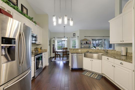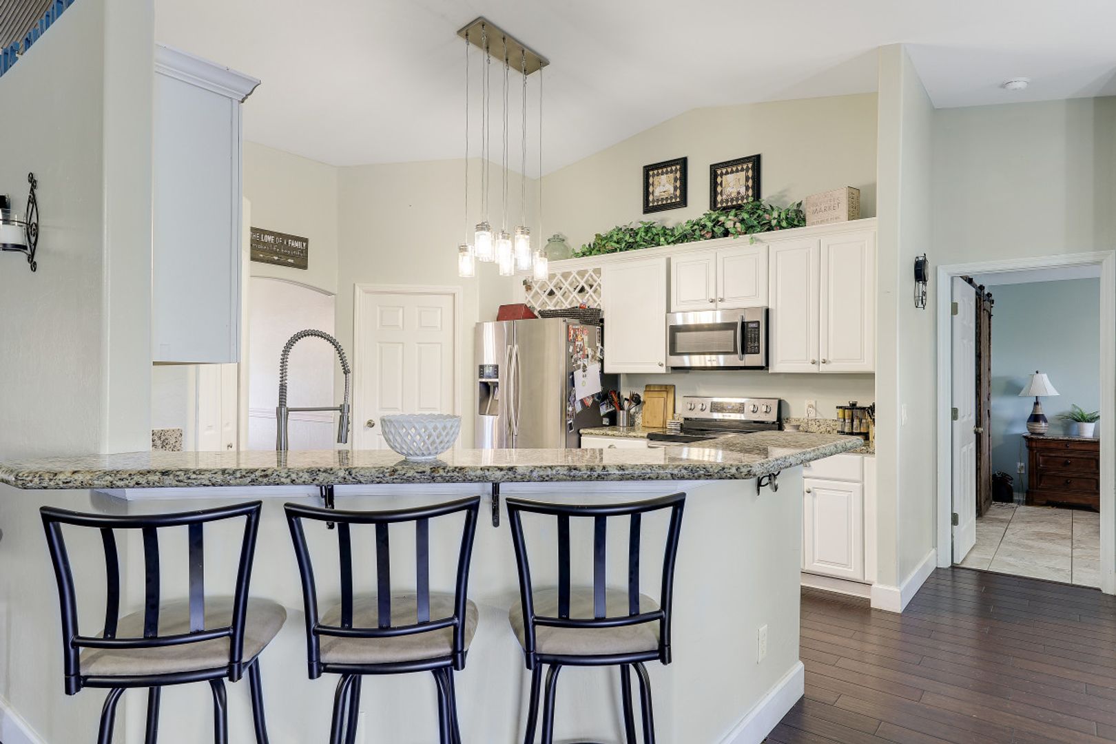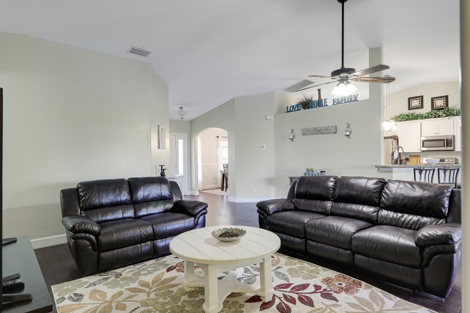 Updated Home on Freshwater Canal in SW Cape! Great Location w/large fenced in yard for kids and furry friends, decorative curbing, and a variety of colorful shrubs. New look with a FRESH COAT OF PAINT inside & out! Your entry door welcomes you to your formal living and dining room w/hardwood flooring throughout main living area w/vaulted ceilings and sliding glass doors where you get your first taste of the AMAZING water views! Beautiful raised panel kitchen cabinets w/granite counter tops, large stainless steel farm sink & appliances with gorgeous pendant lighting. Your newer kitchen over looks the family room and living room for the best family and friends entertainment. Lots of space w/over 2200 sq ft of living area, 4 BR, 2 Baths and 2 car garage. Outdoor living environment was made for enjoyment from your screened in lanai canal views. Finally, this home is nestled in a mature family community w/quick access to shopping, dining, hospital, schools, I-75, midpoint bridge to white sandy beaches and beyond. This would be perfect for a growing family, 2nd home away from brutal winters and vacationers alike! 2019 NEW A/C-10 YEAR TRANSFERABLE WARRANTY!