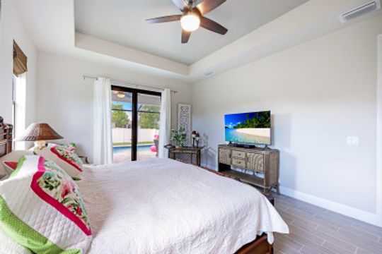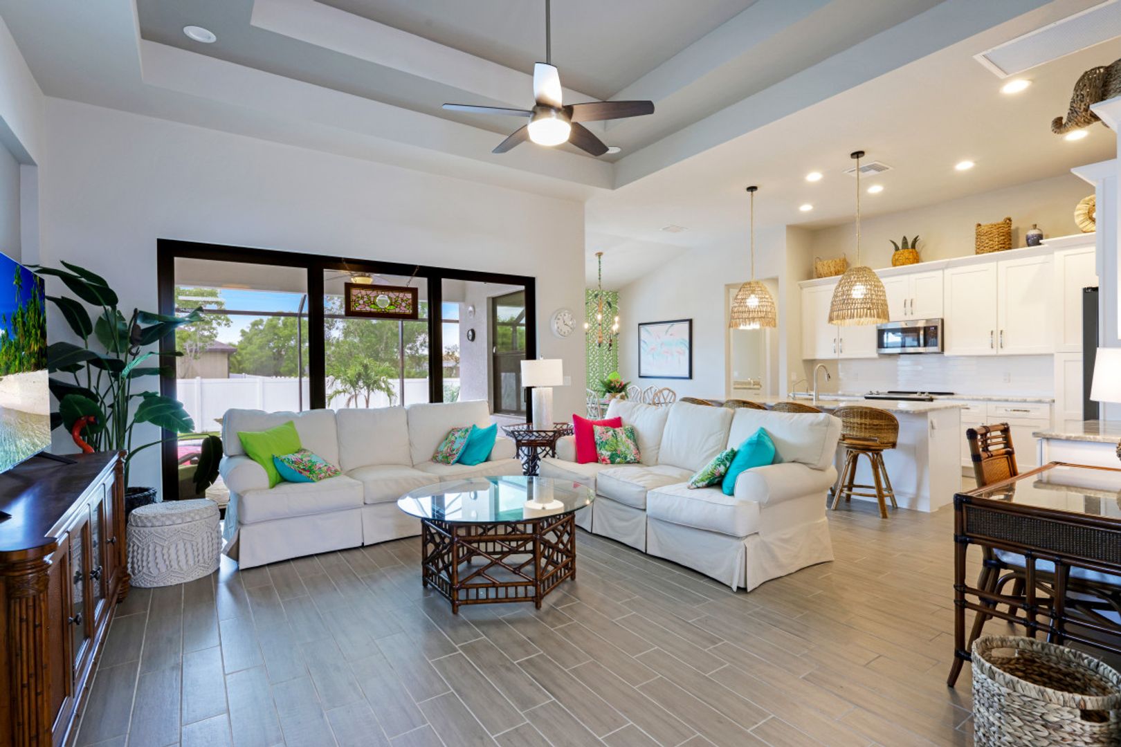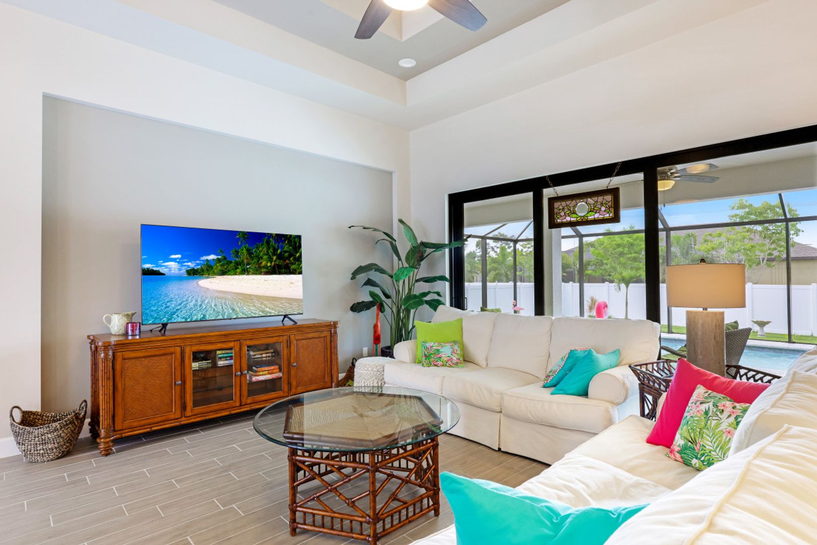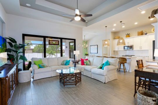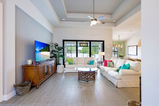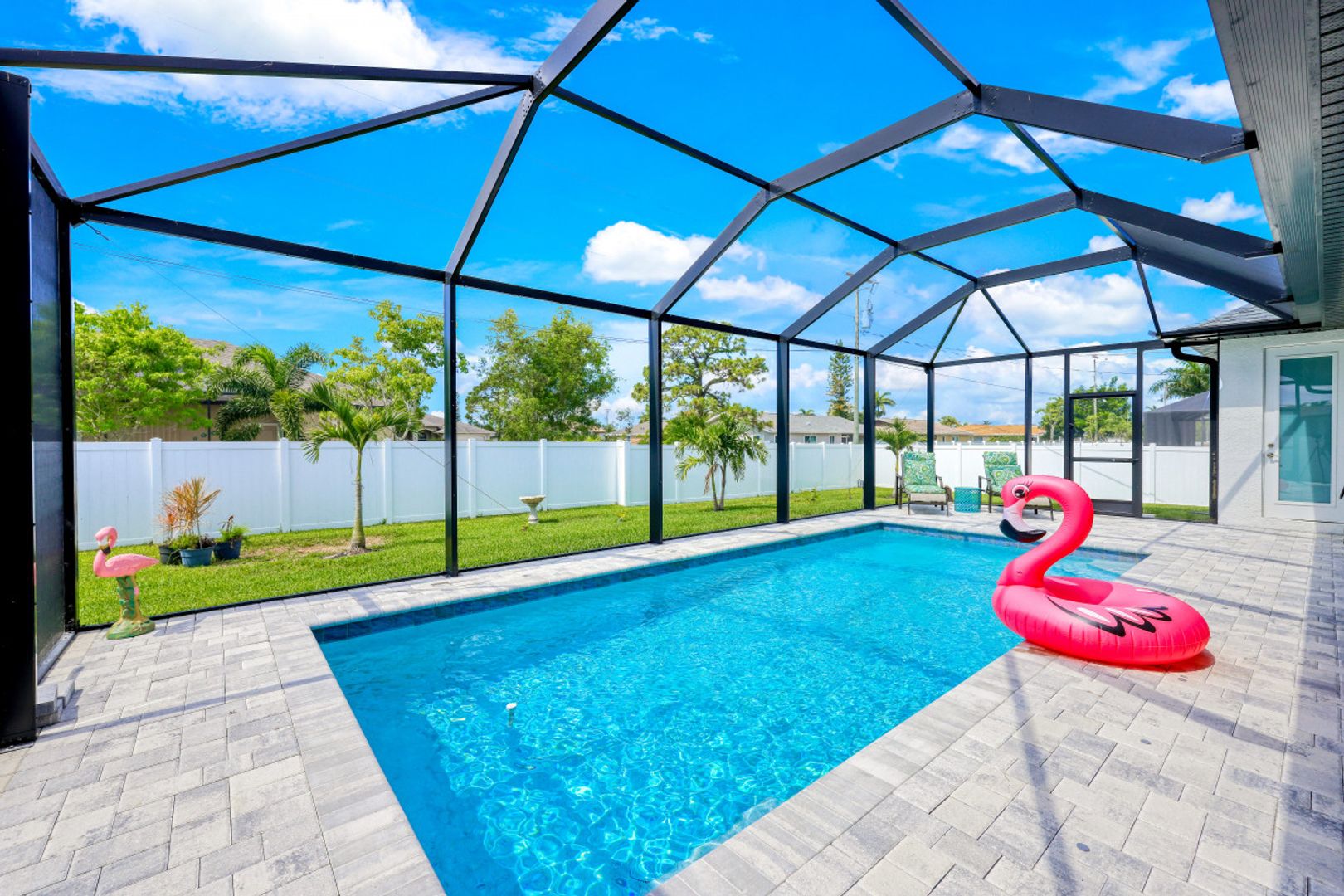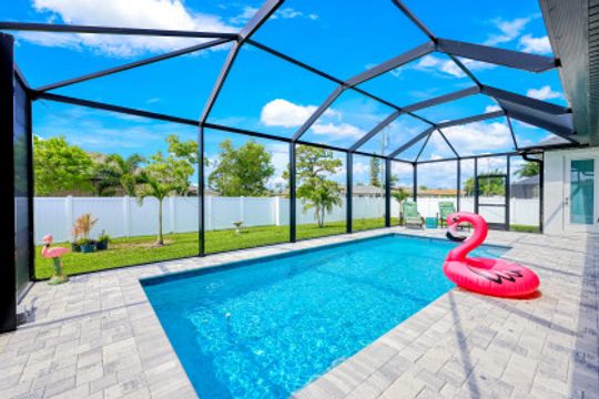 Welcome to your tropical oasis! This 2021 built 4 bedroom, 2 baths and 3 car garage southern exposure pool home is everything you are looking for and more! Open floor plan with triple sliders leading you out to the extended covered lanai area allows you to host the best pool parties all year around. Beautiful white 42” cabinets, soft close drawers, oversized island with seating options, granite countertops and stainless steel appliances is a gorgeous focal point. Large master bedroom features a luxurious master bathroom including oversized shower and his and hers everything. This perfect home offers privacy to both you and your guests with a split floor plan and the guest bath has pool entrance. Your outdoor area is what SWFL living is all about! Spacious pavered screened in lanai offers plenty of room for your summer kitchen, large dining area with room for your lounge seating. Backyard still has plenty of room for the fur babies and keeps them safe with a privacy fence. Don’t miss out of this perfect opportunity to live the dream!