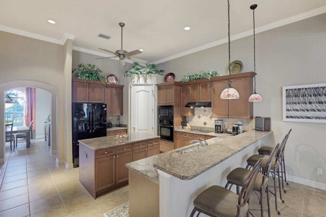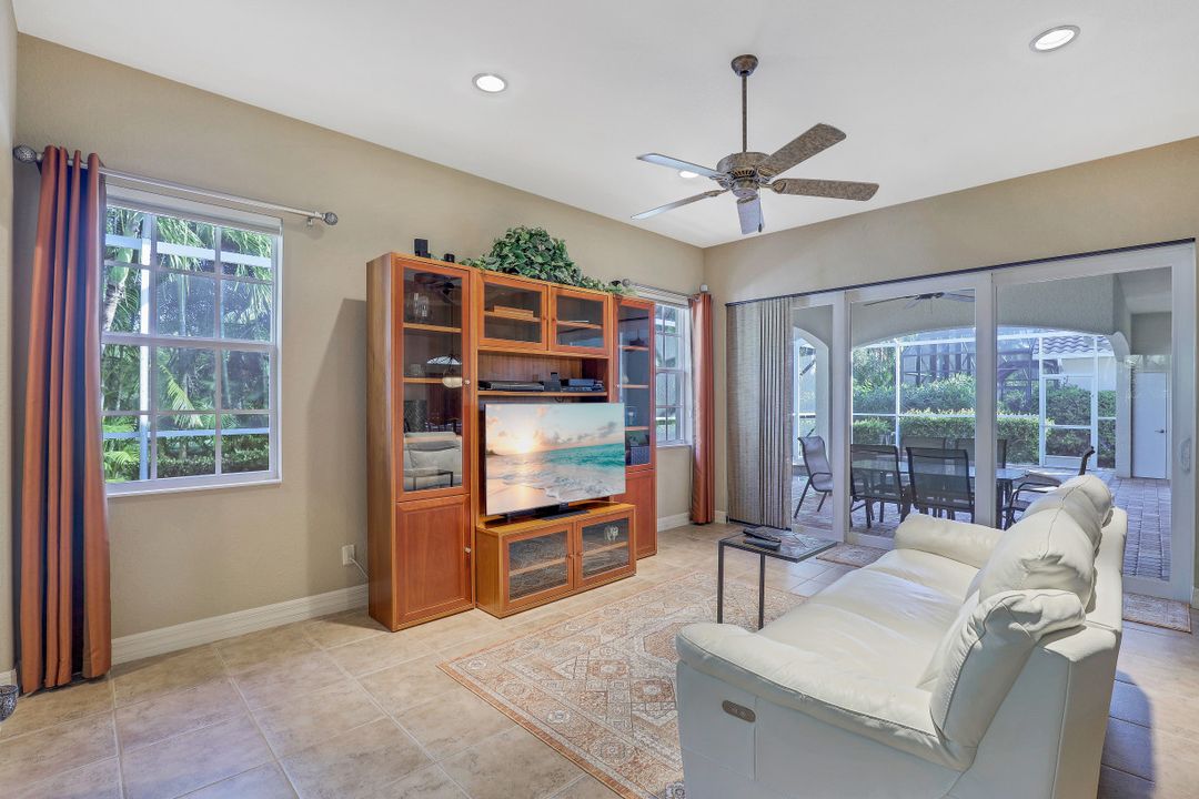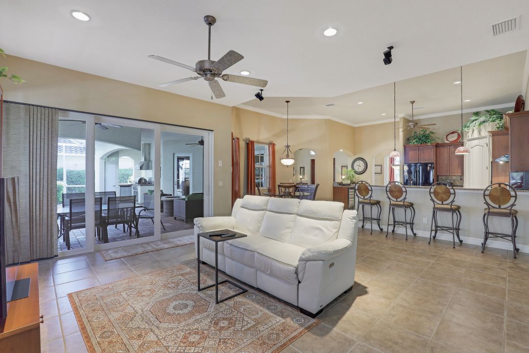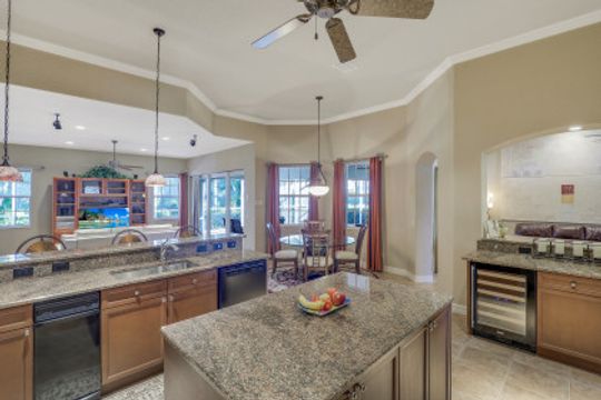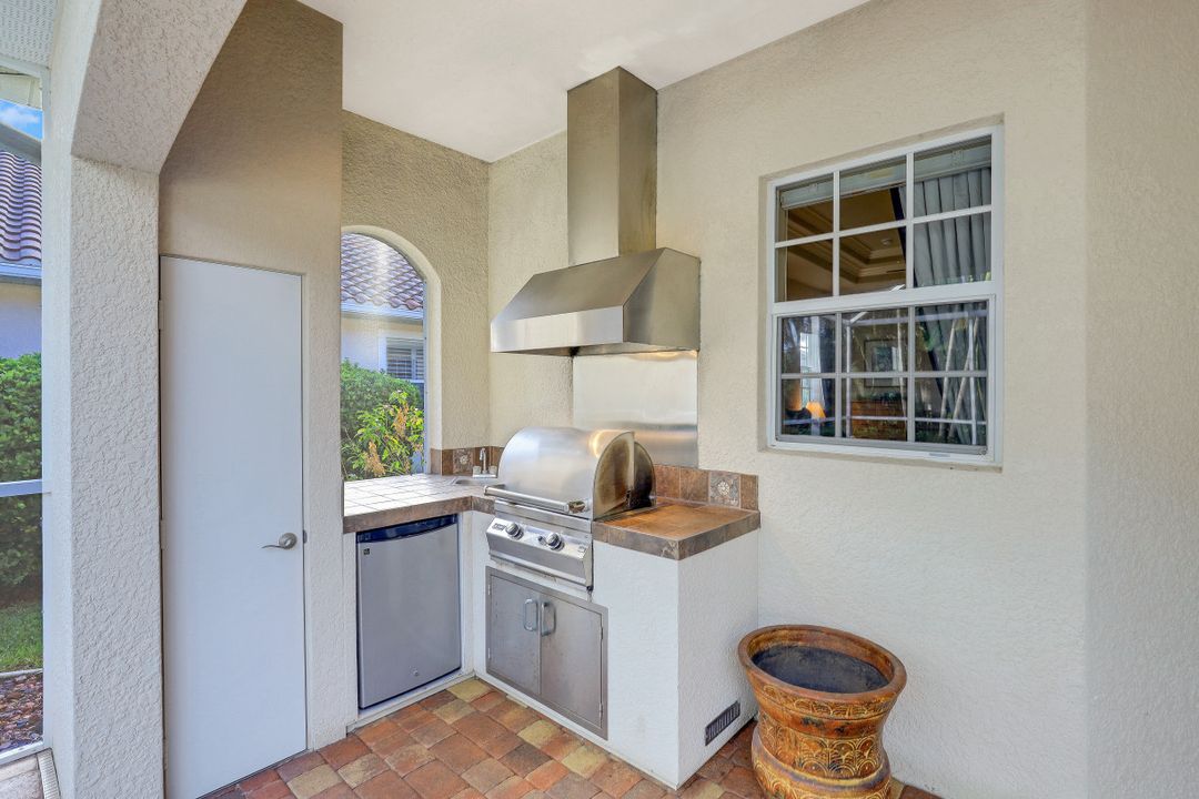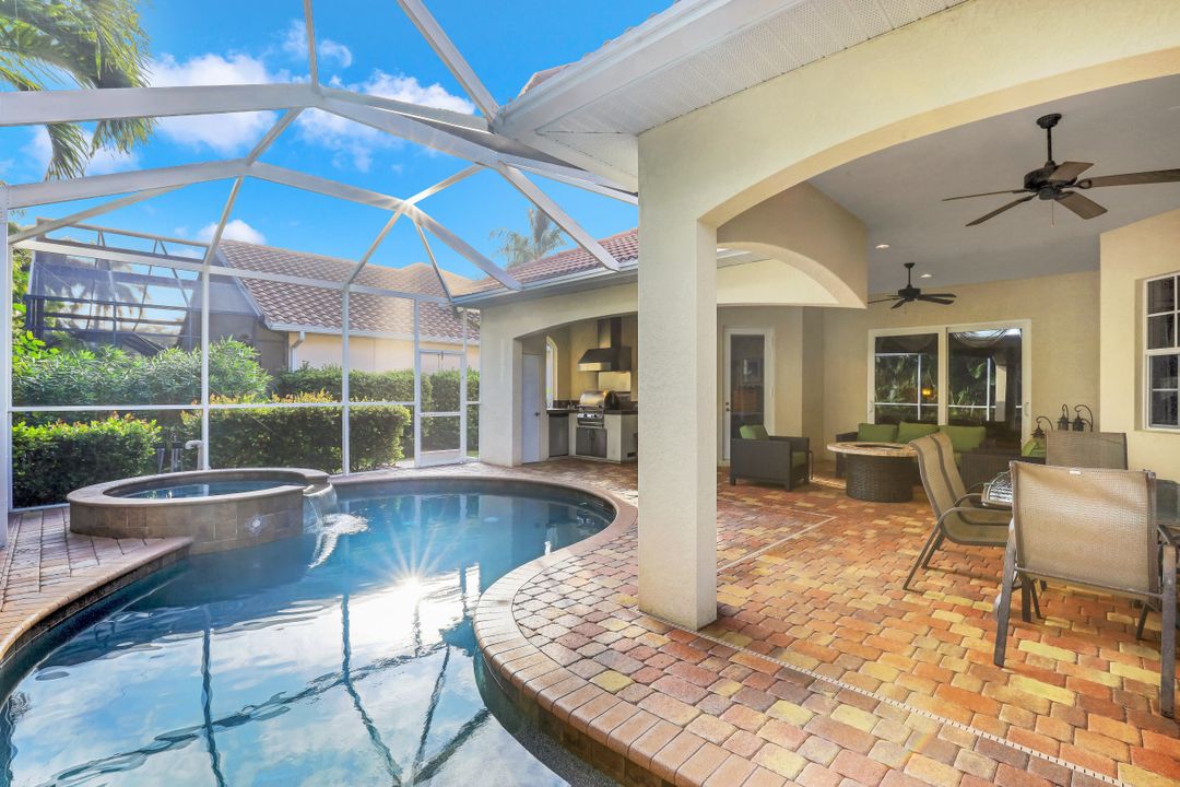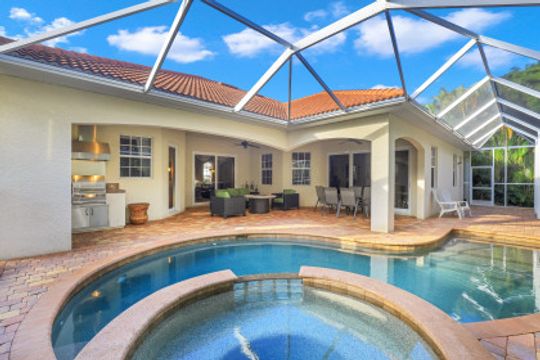 Cape Harbour - Located inside the gates of Cape Coral's premier waterfront neighborhood. This beautiful home features 3 large bedrooms plus a den, 3 full baths, island kitchen with breakfast room and formal living and dining rooms. Additionally, the spacious family room opens to the pool with its full-width cage and pavered deck, spa and outdoor kitchen all landscaped for privacy with lush tropical plantings. Other features include 12' ceilings, 8' doors, wine bar and circular driveway. This highly desirable community offers deep water boat slips, a dry storage marina, waterfront dining, shopping and entertainment.